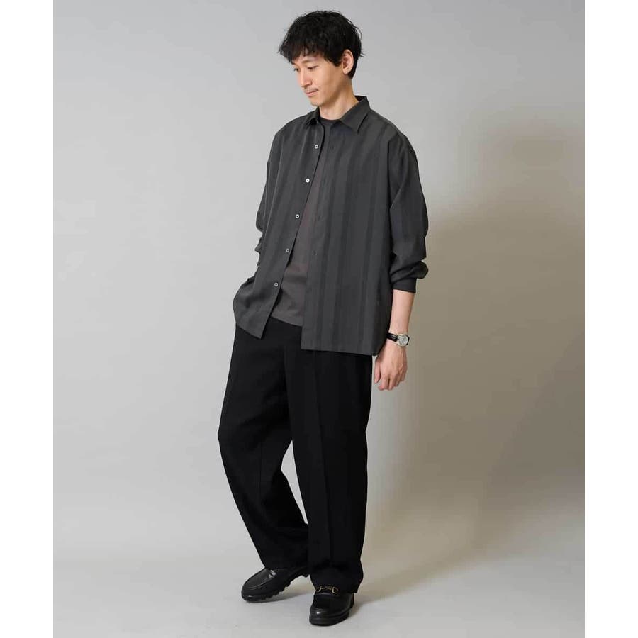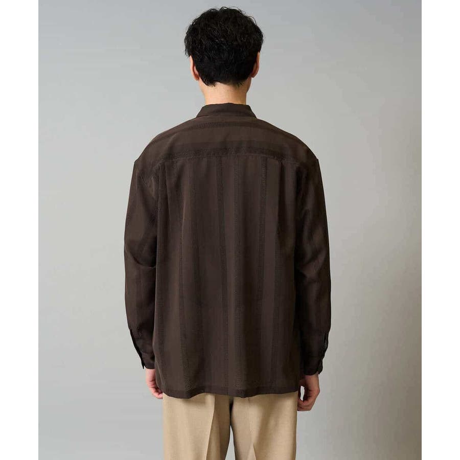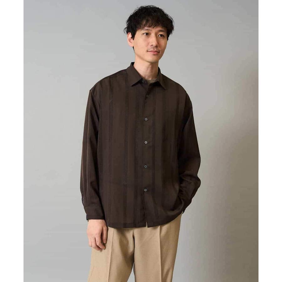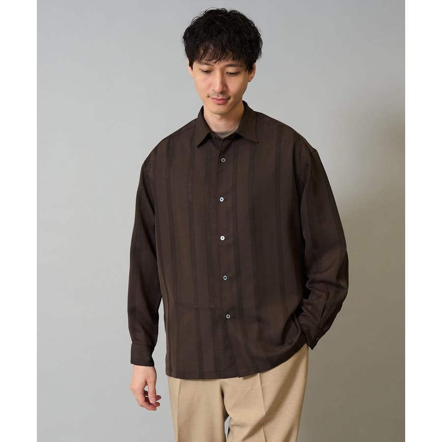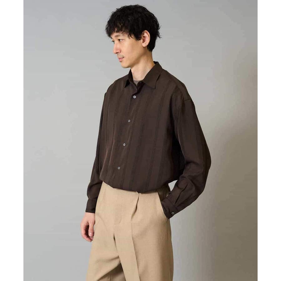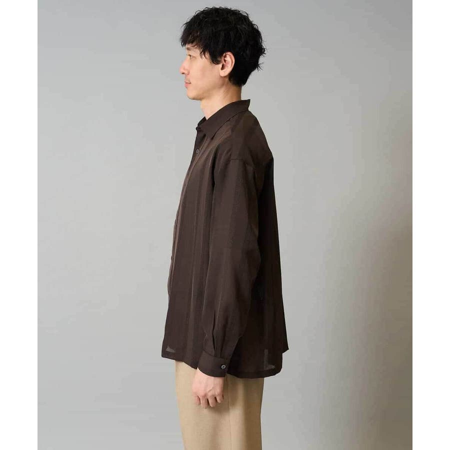 カラミ織り素材にランダムストライプを表現したワイドシルエットシャツ◆