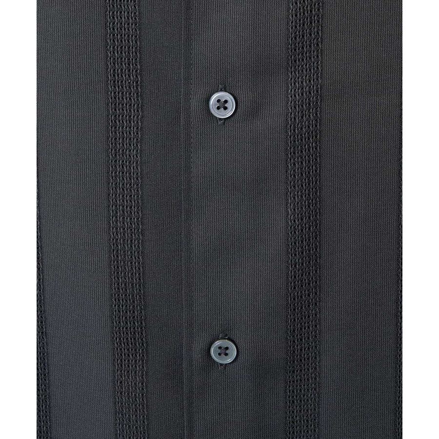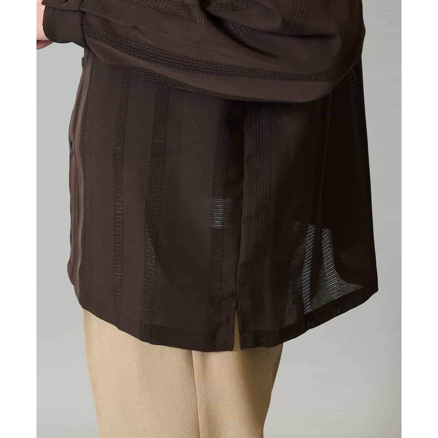 カラミ織りの”透ける”部分を効果的に利用して、ランダムストライプ柄を表現したレギュラーカラーシャツ。