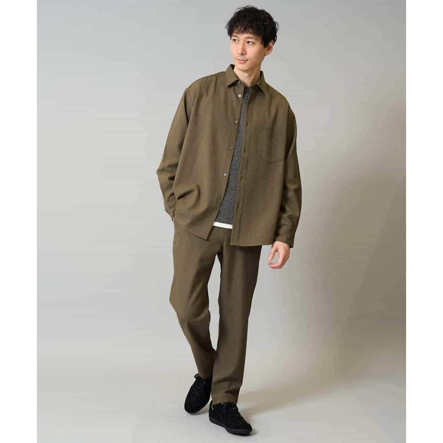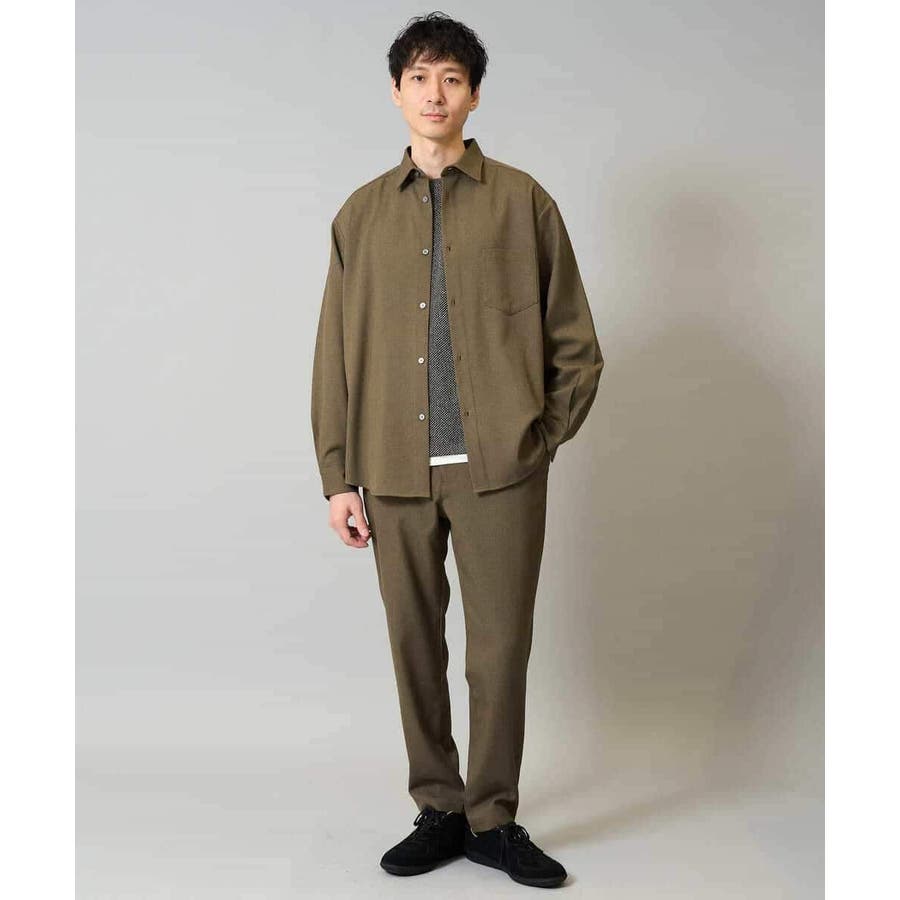 スラックス合わせできれいめな着こなしに、ゆとりのあるパンツとあわせるとカジュアルでバランスの良いスタイリングが完成します。