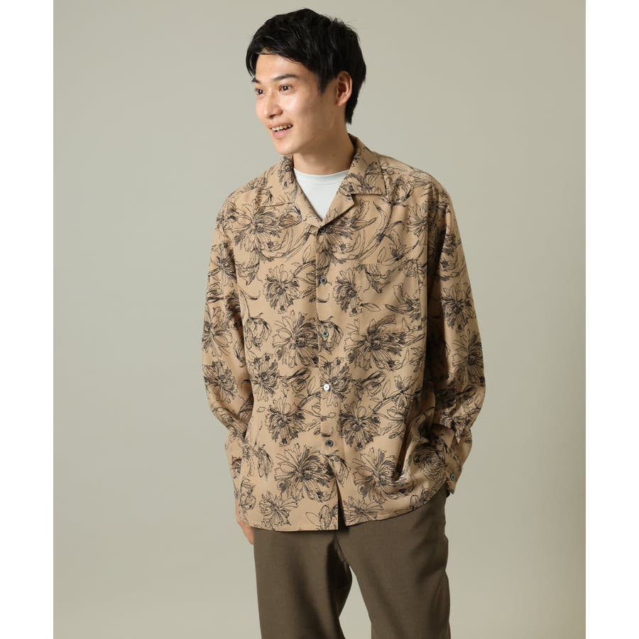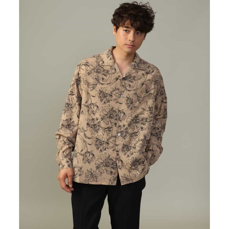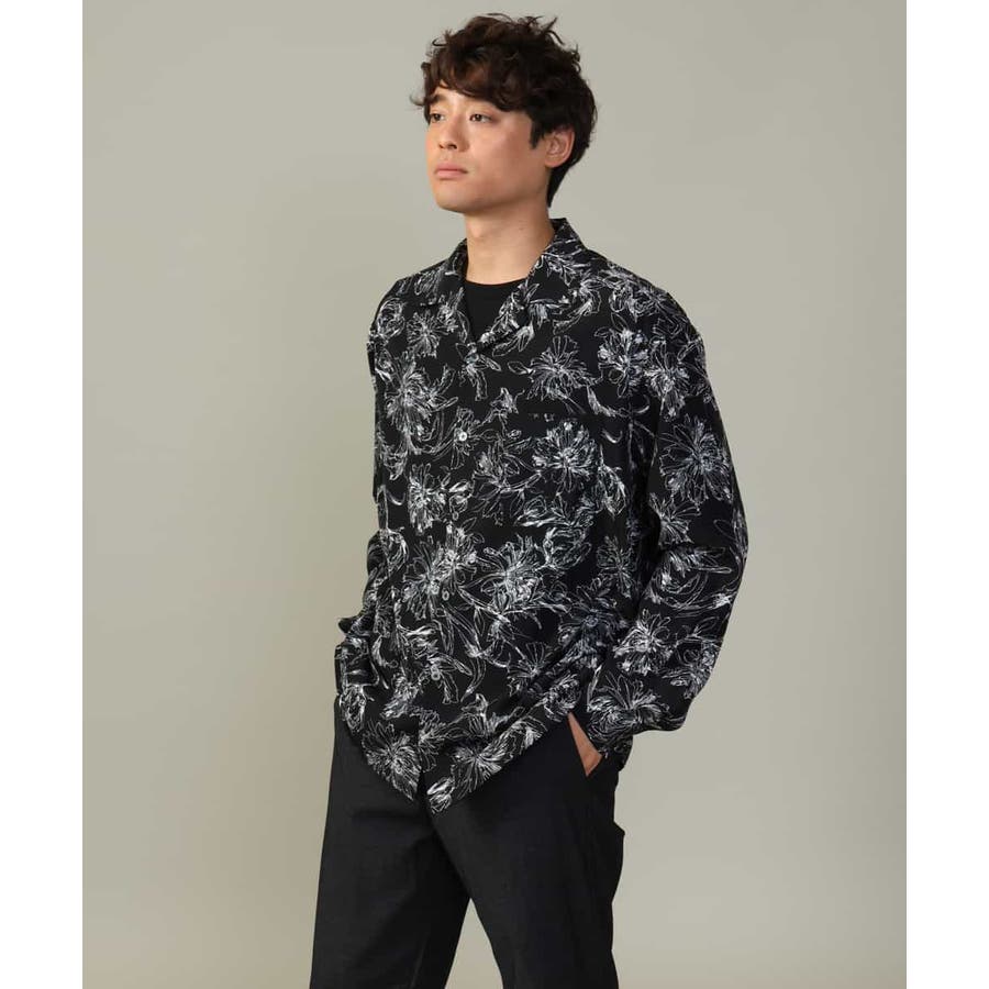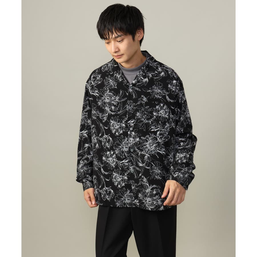 雰囲気のあるフラワー柄プリントを施したワイドシルエットオープンカラーシャツ◆