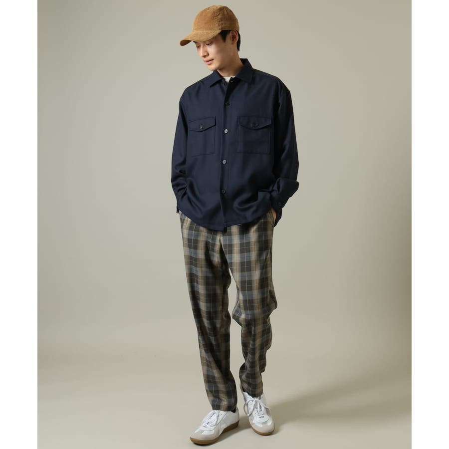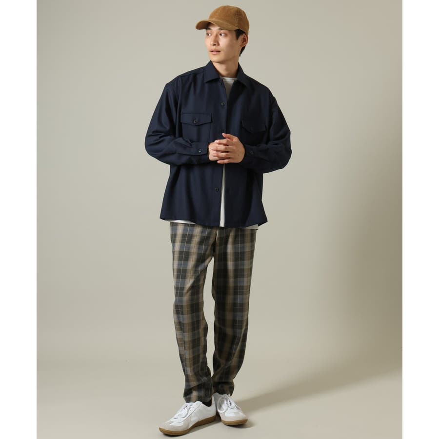 特長としてシワになりにくく、サラッとした肌触りの良さ、ストレッチ混で動きやすく、気軽にご自宅で洗濯機洗いができるイージーケア素材なためデイリーユースに快適に着用して頂けます。