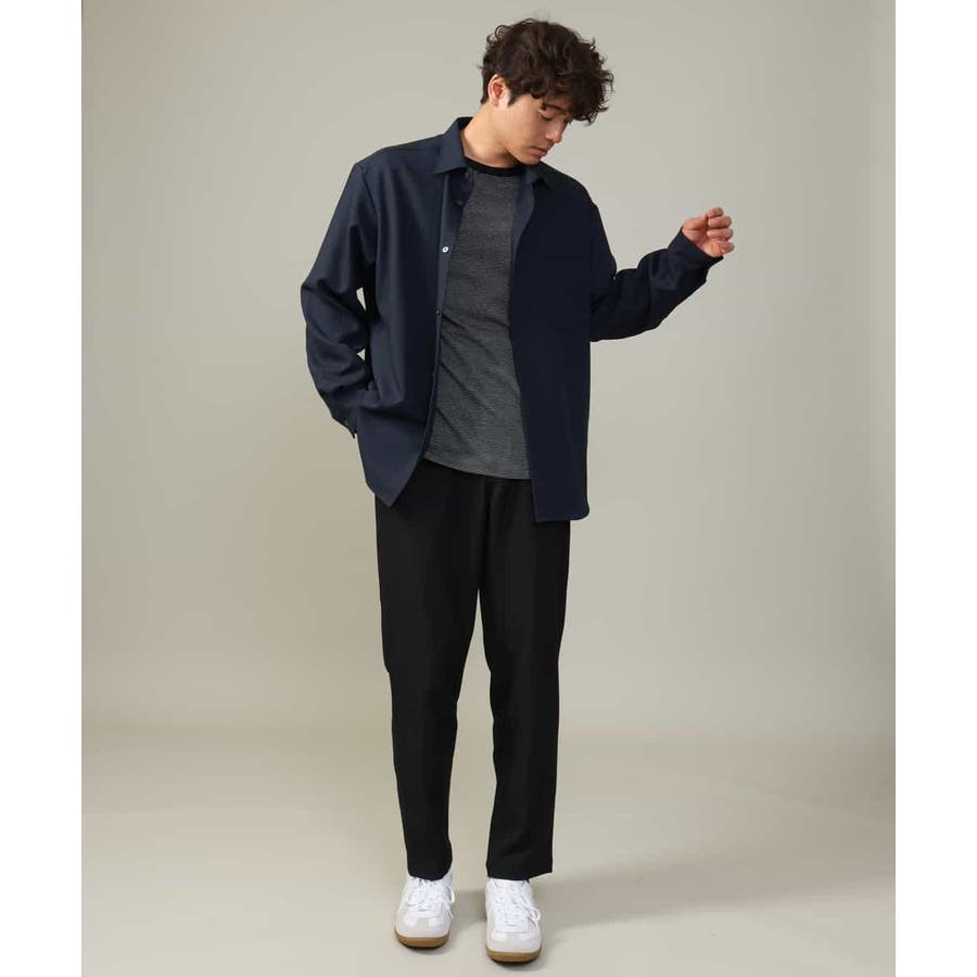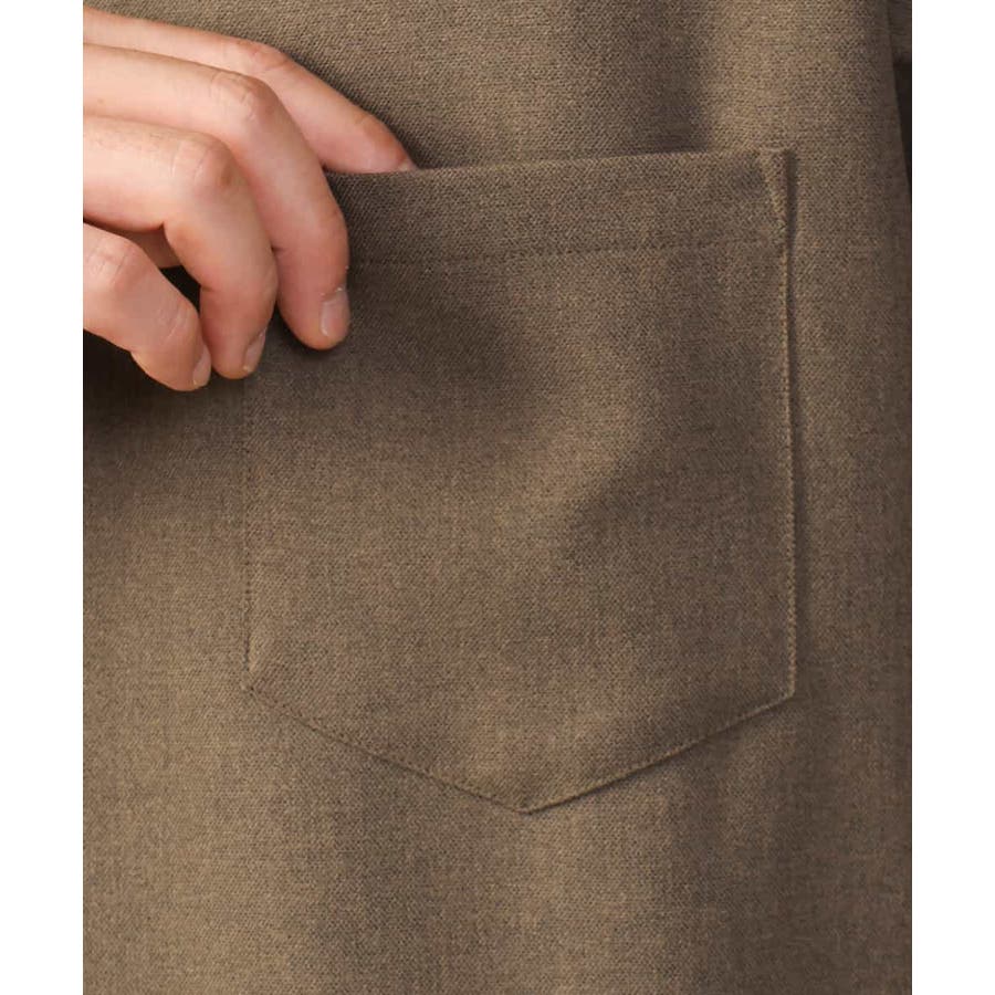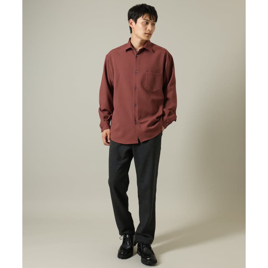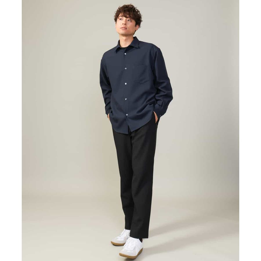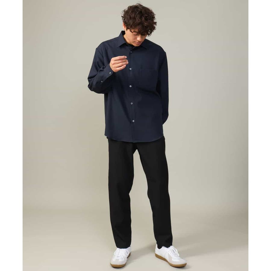 特長としてシワになりにくく、サラッとした肌触りの良さ、ストレッチ混で動きやすく、気軽にご自宅で洗濯機洗いができるイージーケア素材なためデイリーユースに快適に着用して頂けます。