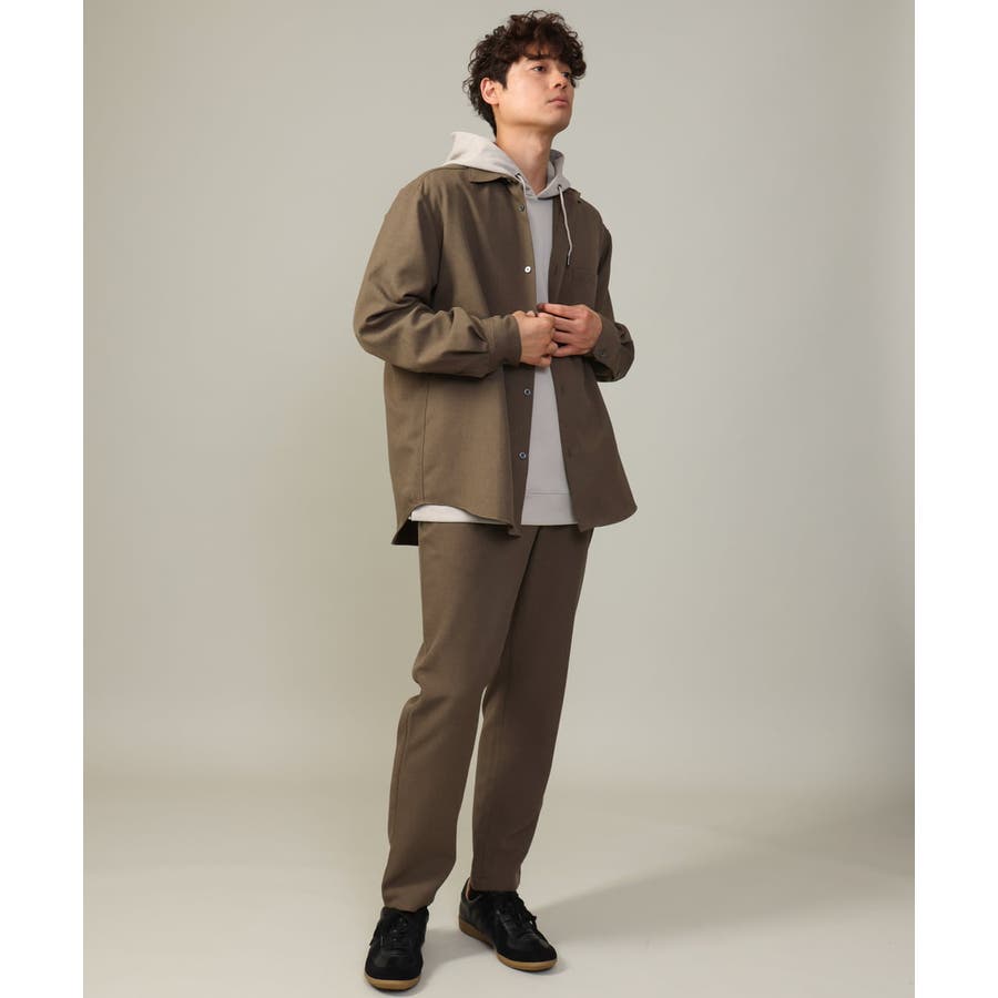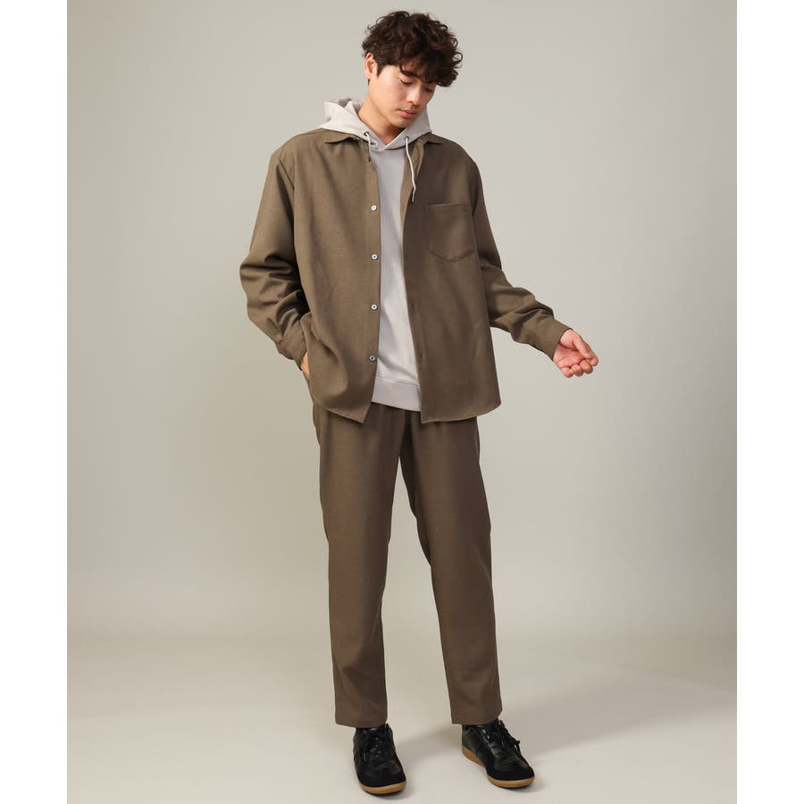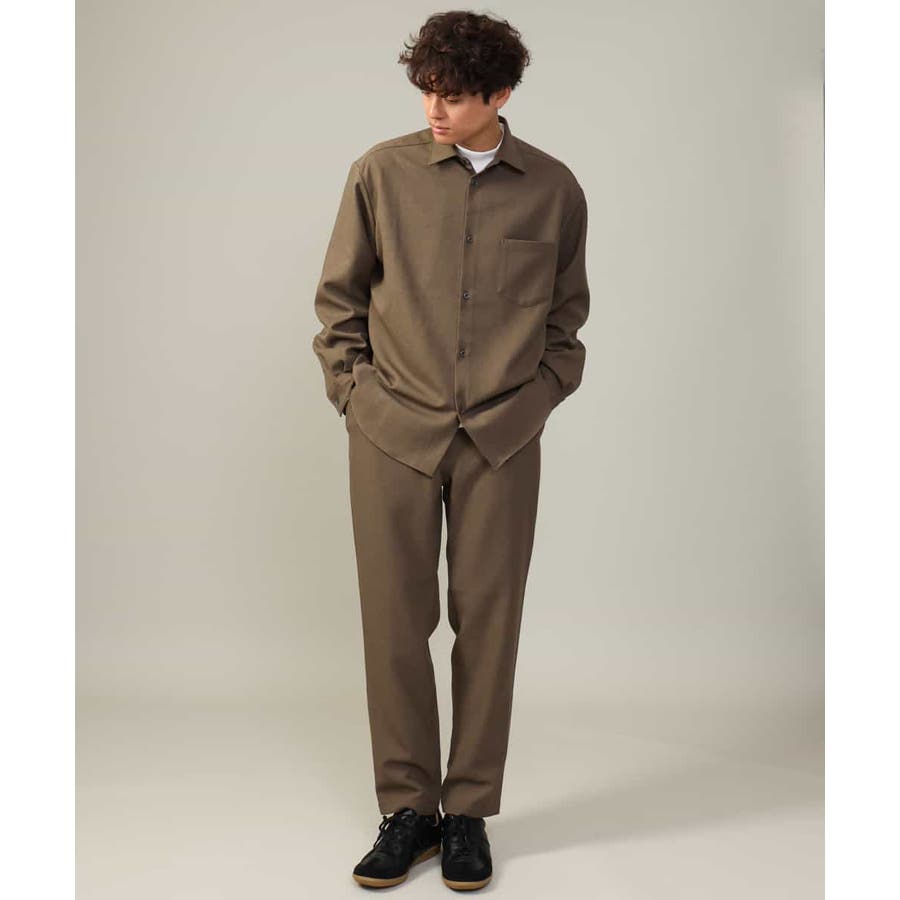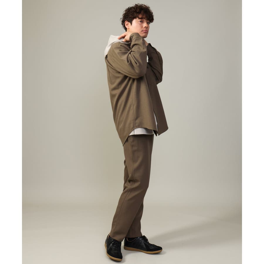 ボトムは同素材のセミルーズパンツ合わせで同色セットアップコーディネートがまとまりがありトレンド感が満載です。