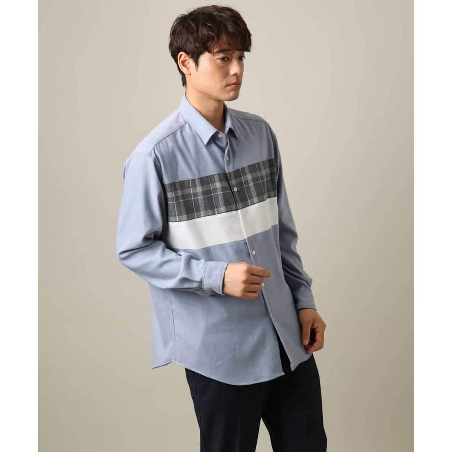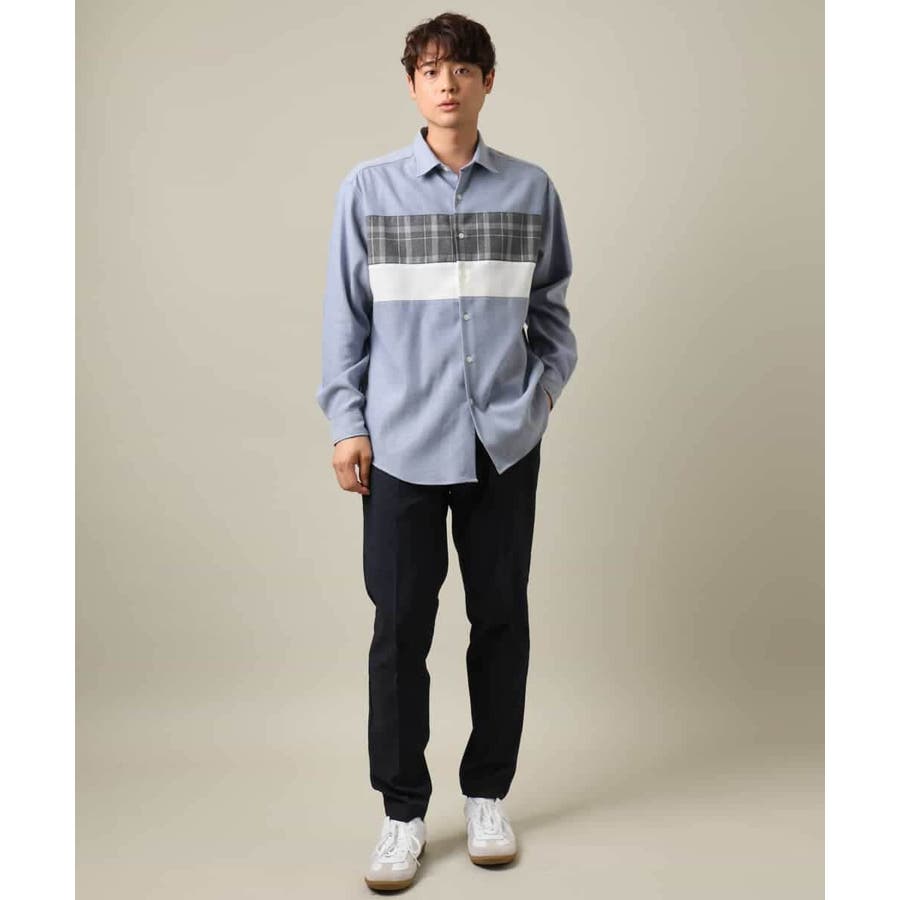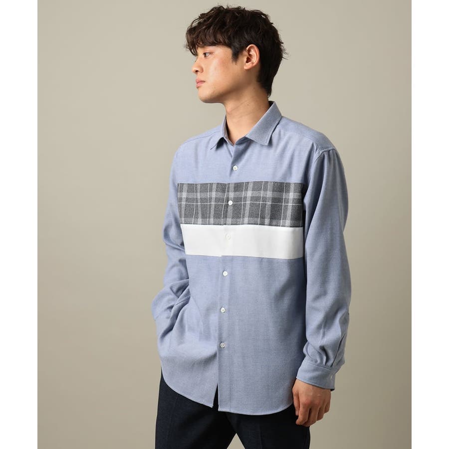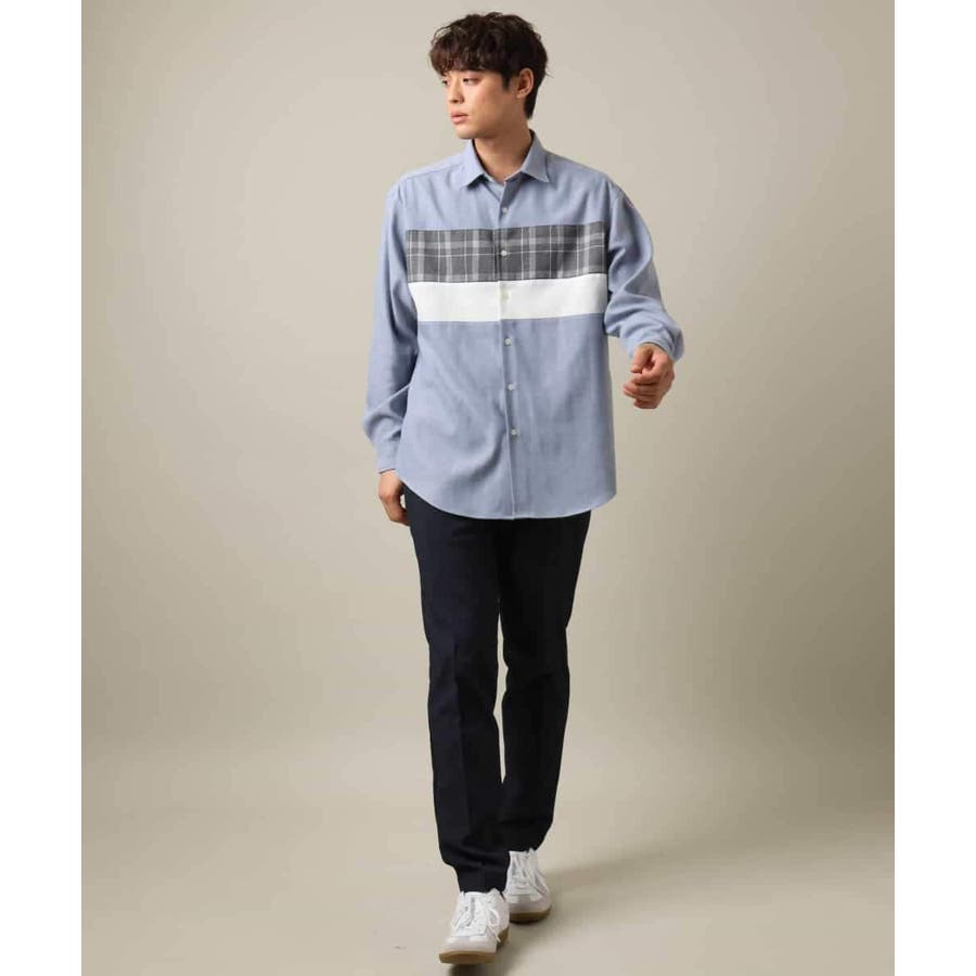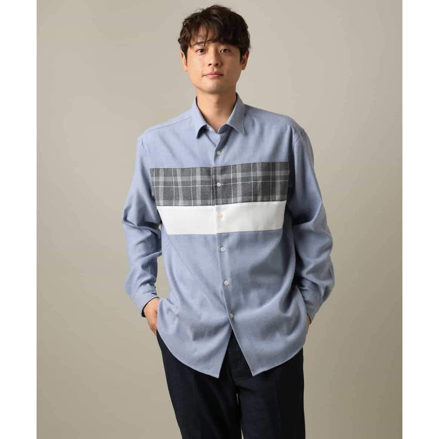 【こなれシャツ】パネル切替 起毛シャツ(デザテクシリーズ)