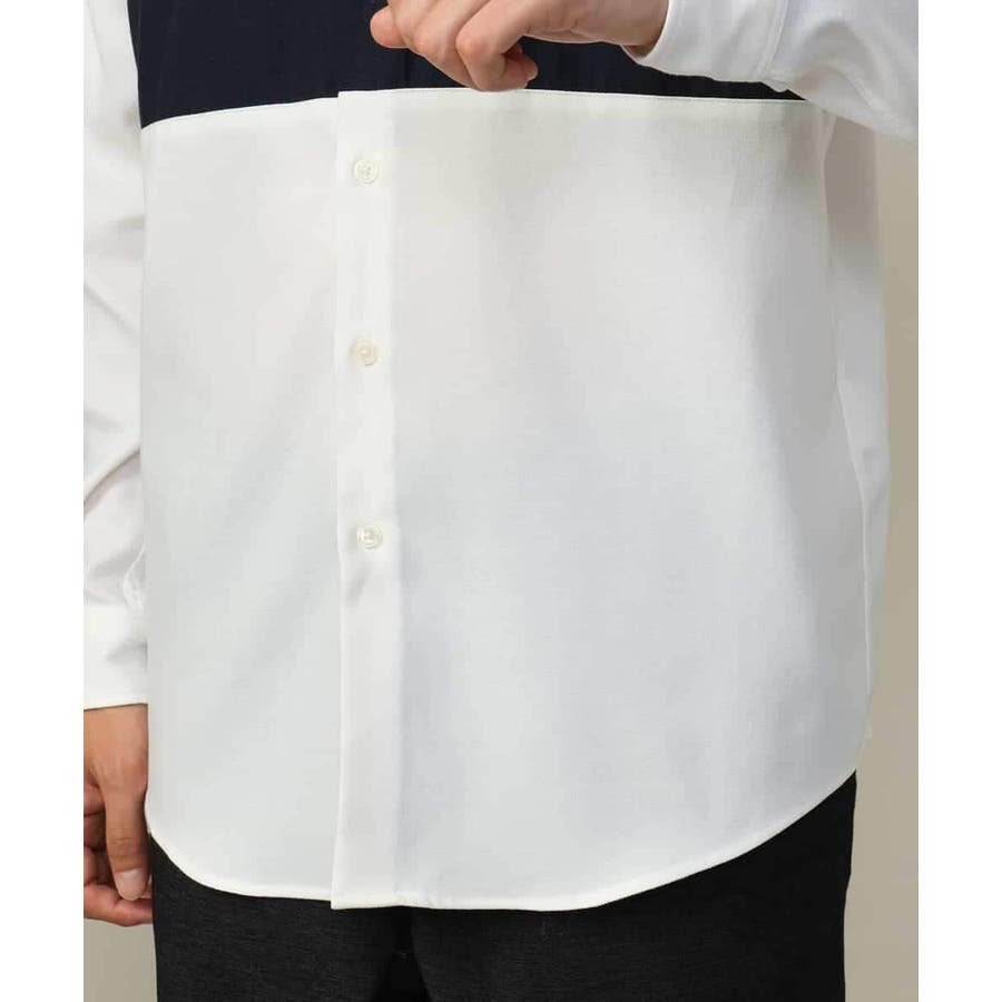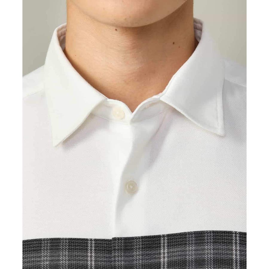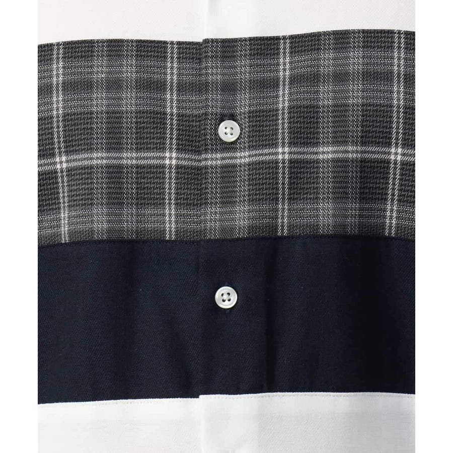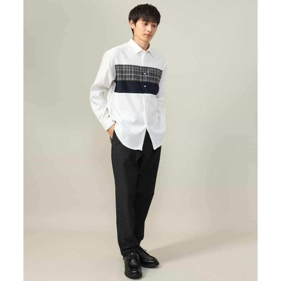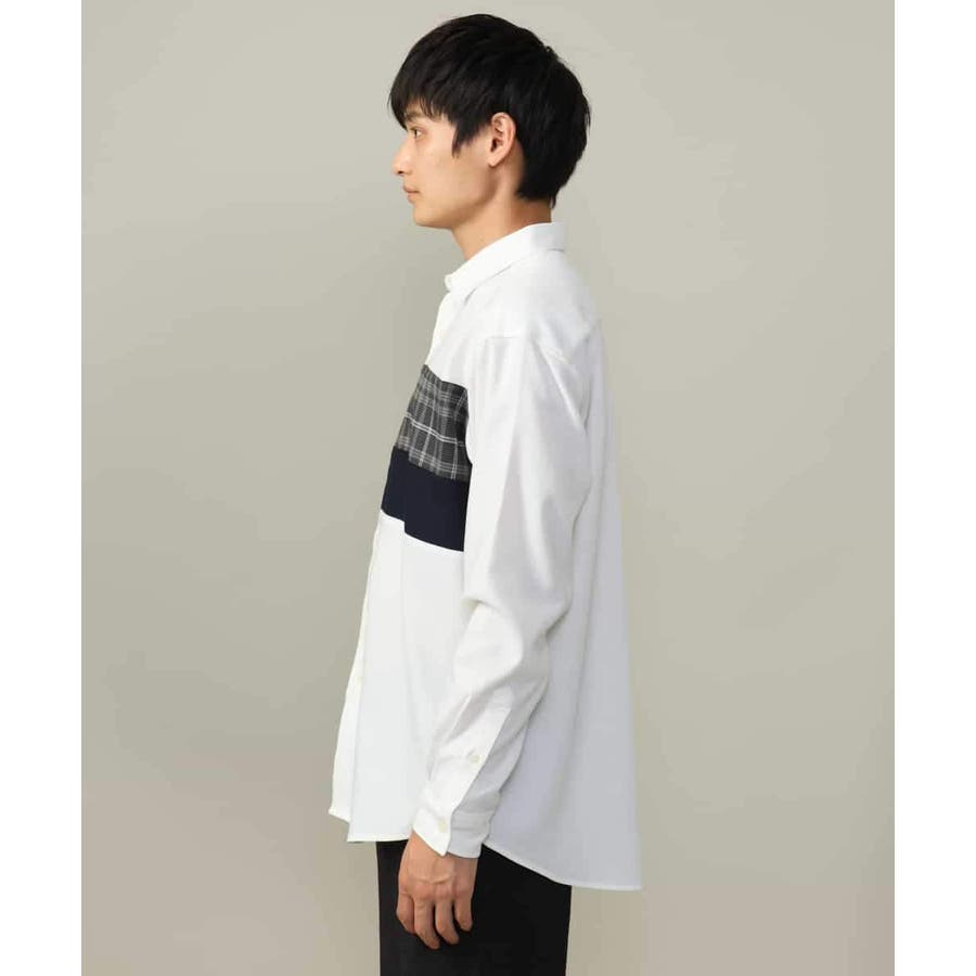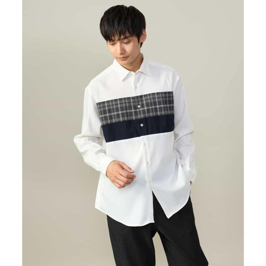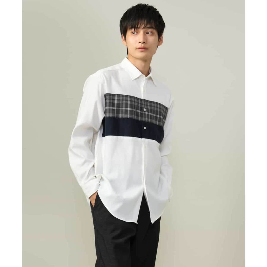 前身頃にトレンドの柄を取り入れた1ランク上の異素材ドッキングシャツ。