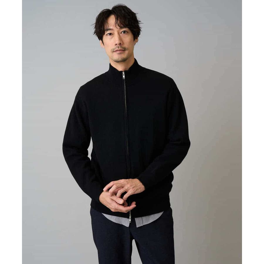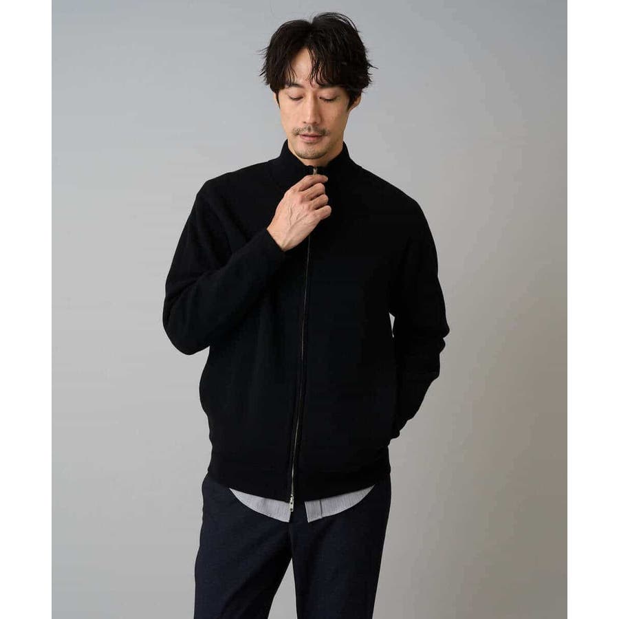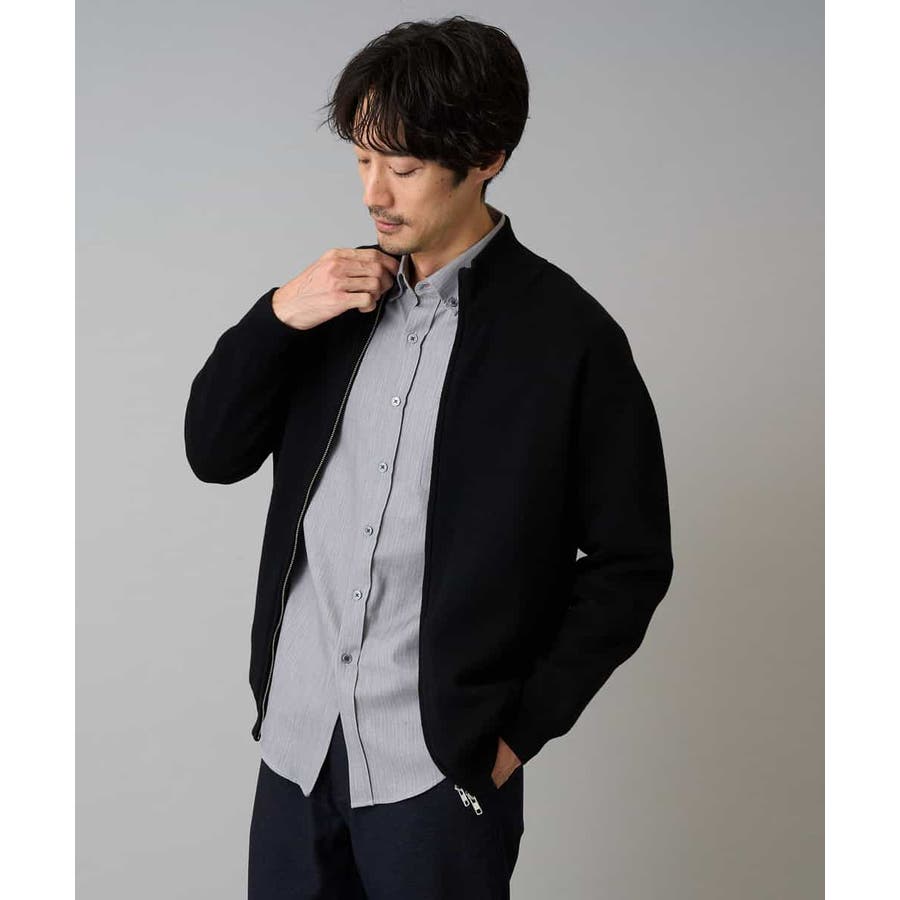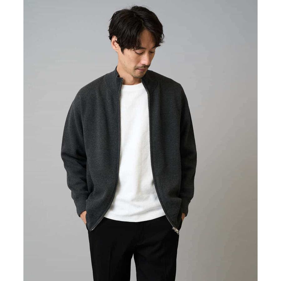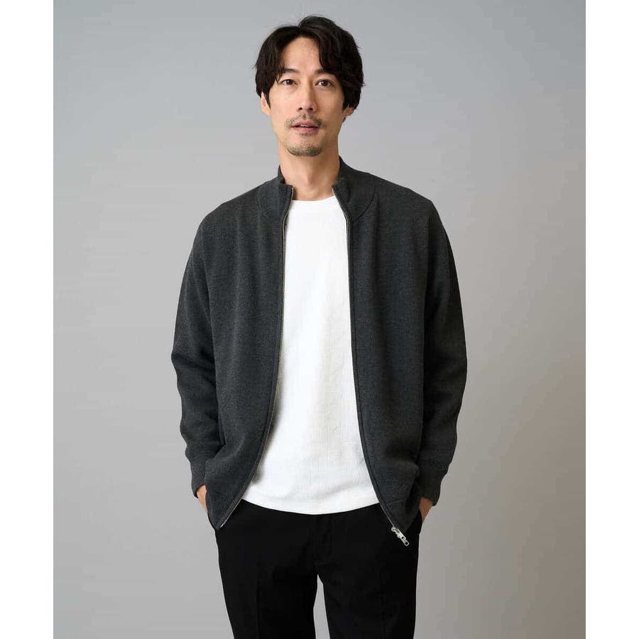 【洗濯機で洗える】ダブルフェイスニットスタンドジップカーディガン