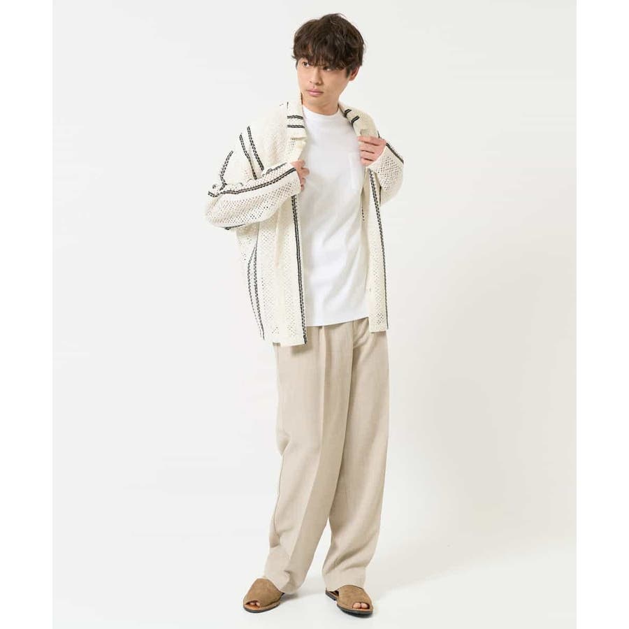 ボトムはきれい目スタイルにはスラックス合わせ、カジュアルスタイルにはゆとりのあるパンツとあわせると