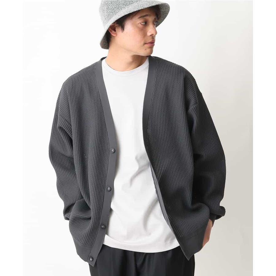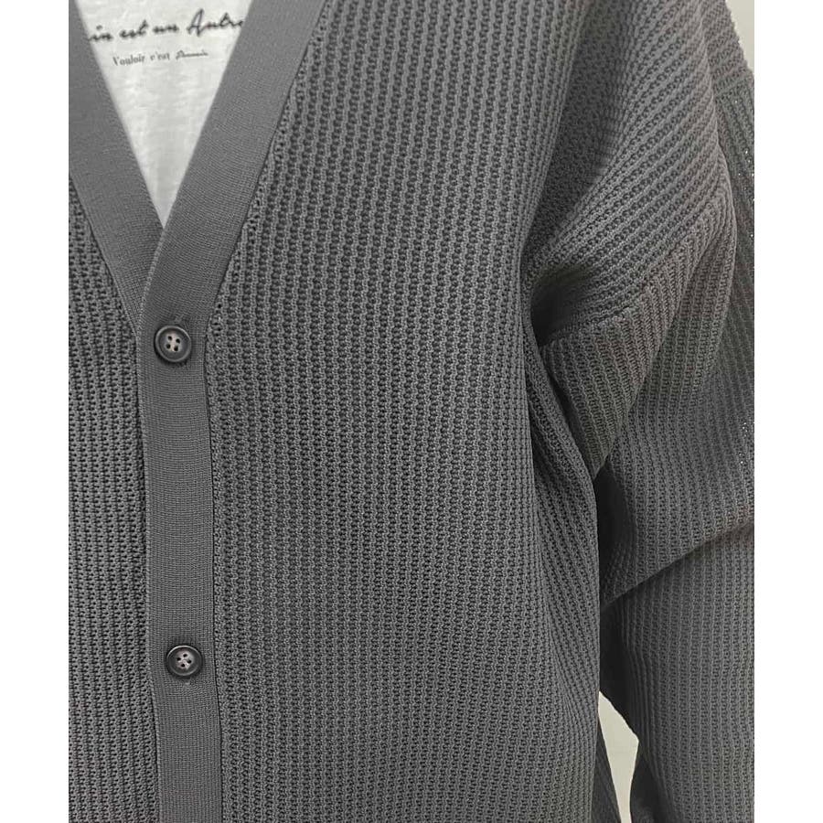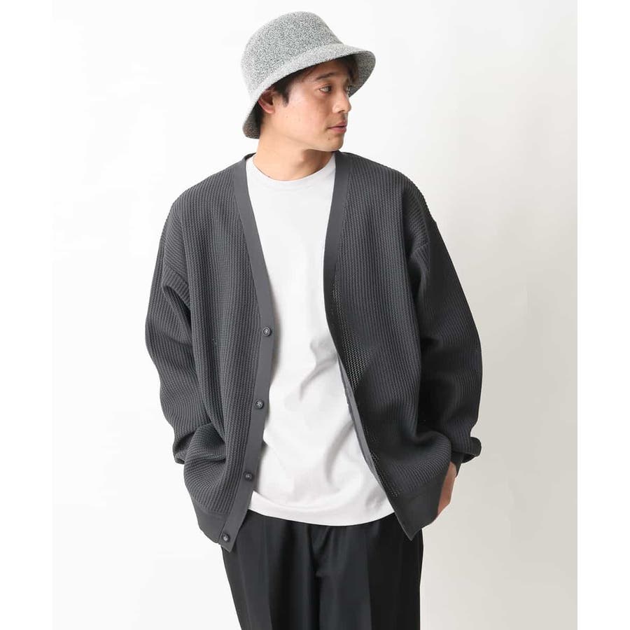 ◆【洗濯機で洗える】ポリエステル素材を使用した軽さのあるワイドシルエットメッシュ編みカーディガン◆