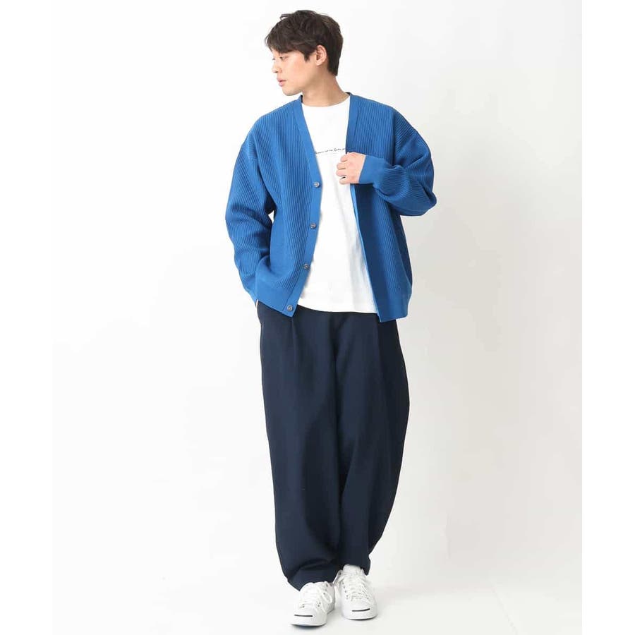 ボトムはきれい目スタイルであればスラックス合わせ、カジュアルスタイルであればゆとりのあるワイドパンツとあわせるとバランスが良いコーディネートができます。