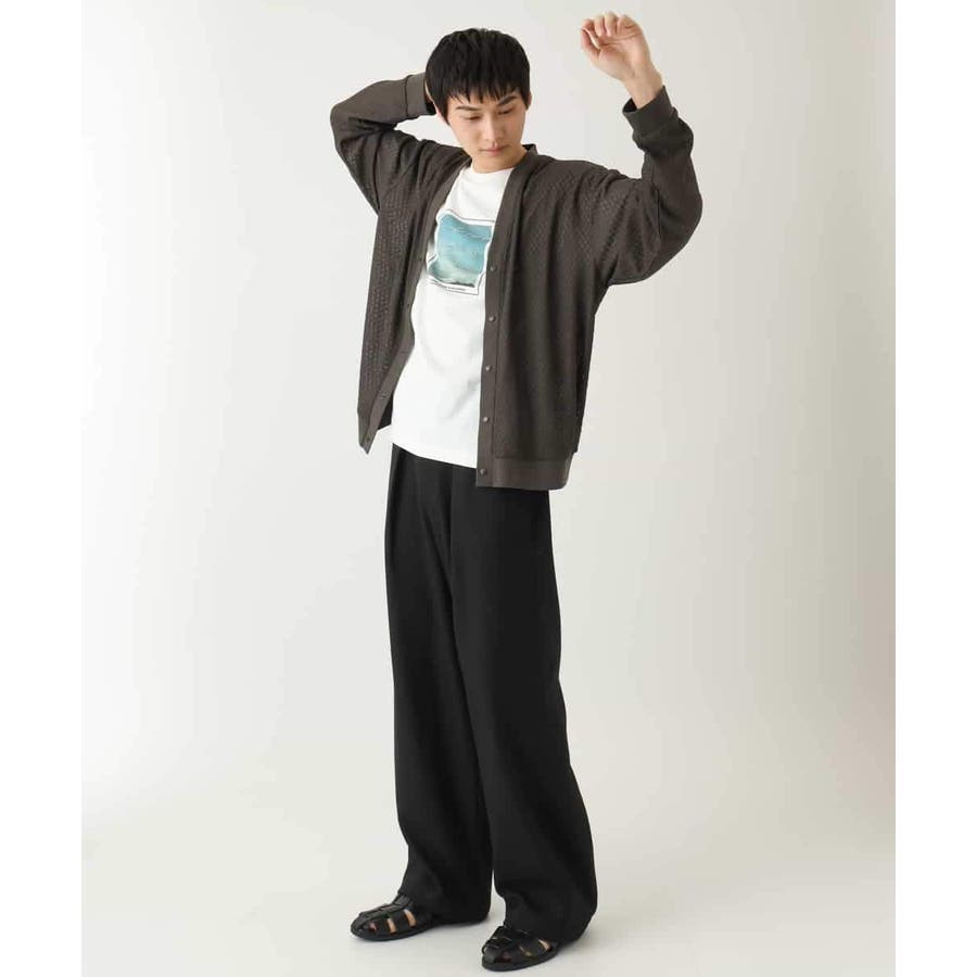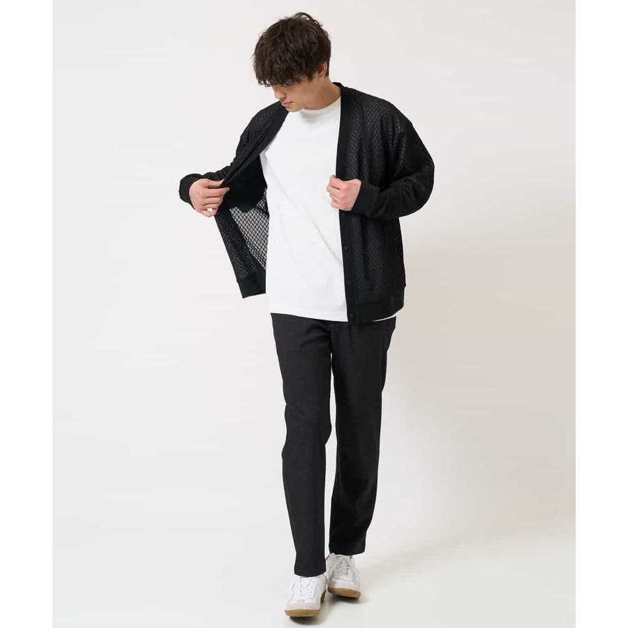 ボトムはきれい目スタイルにはスラックス合わせ、カジュアルスタイルにはゆとりのあるパンツとあわせると