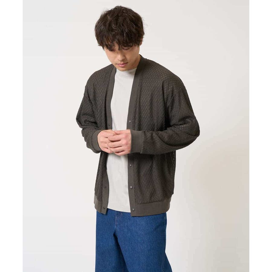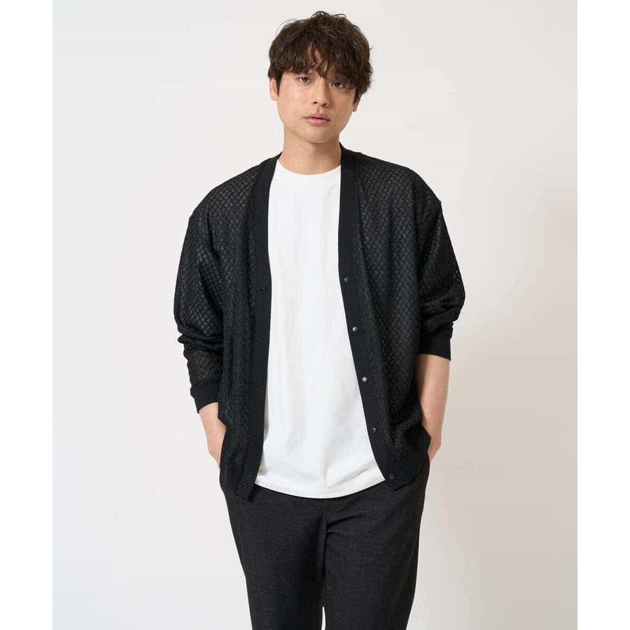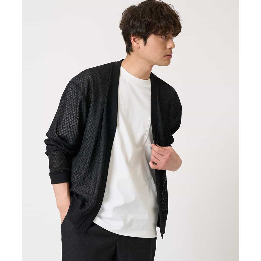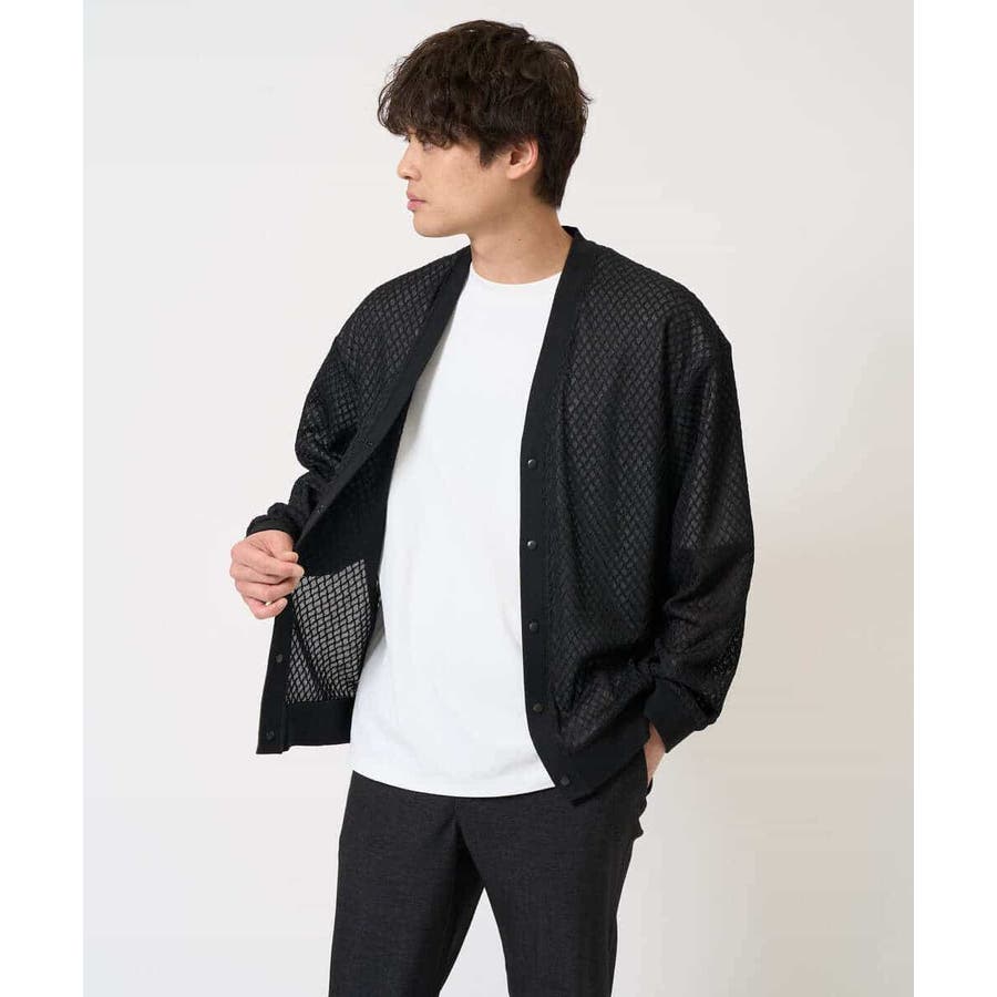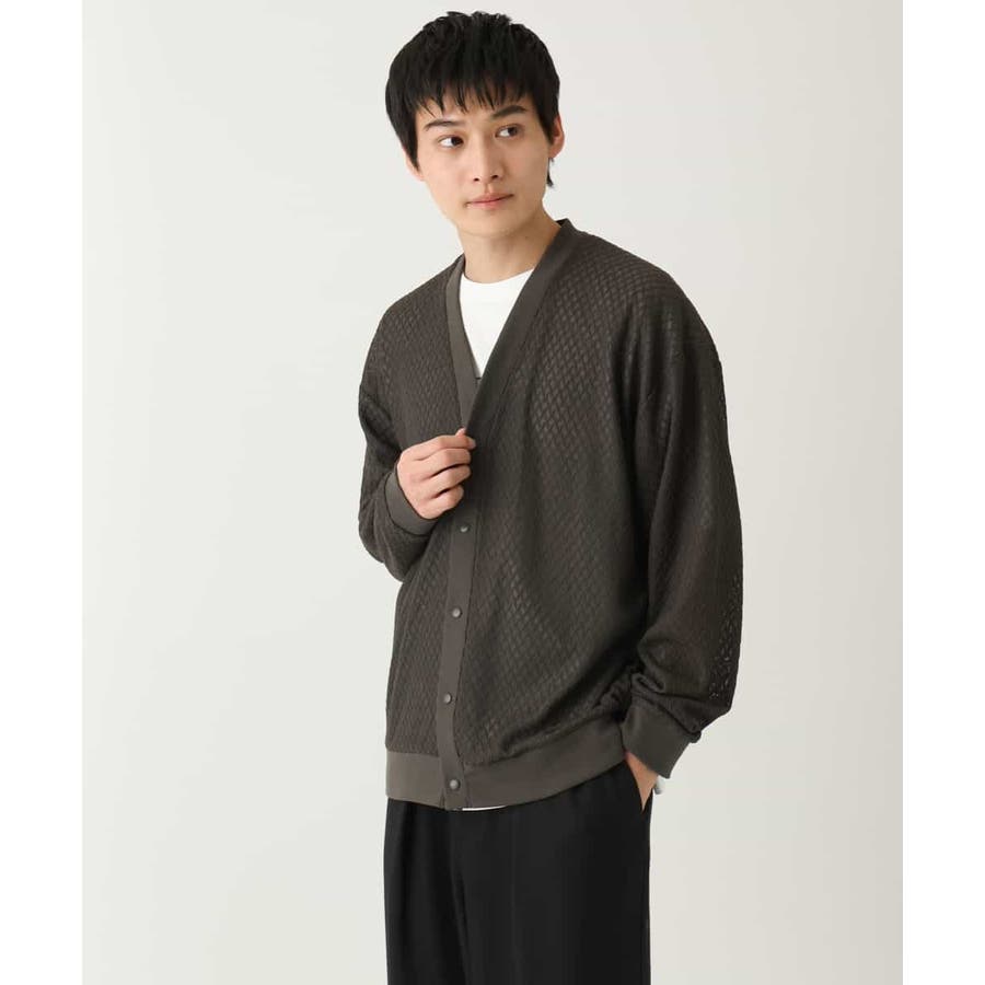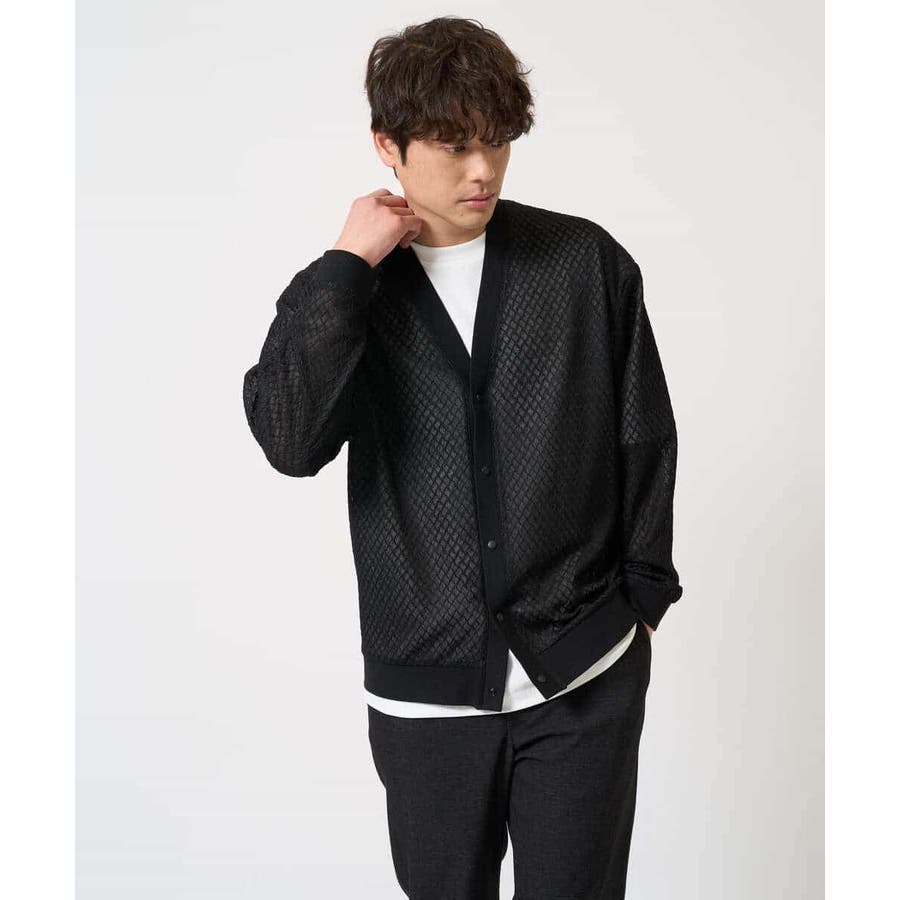 トレンドのダイヤ柄シアー素材を使用したライトなカーディガン。