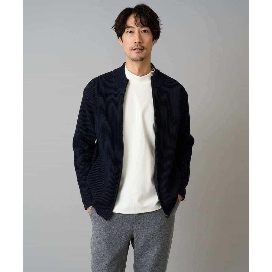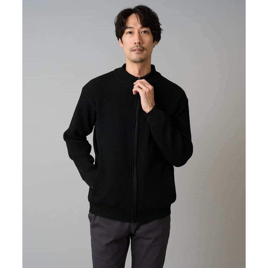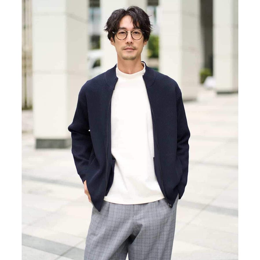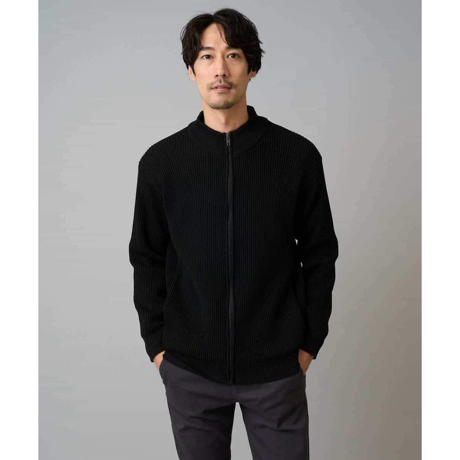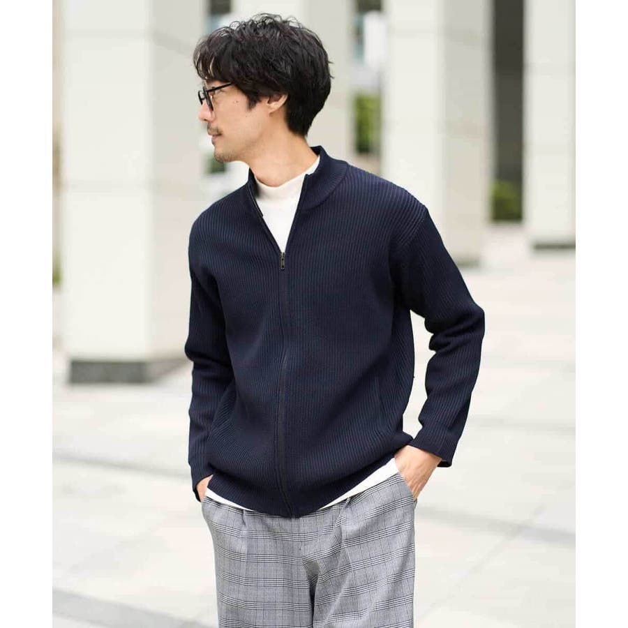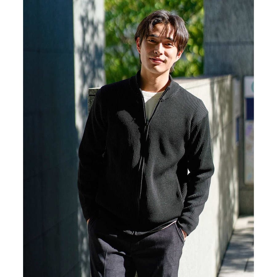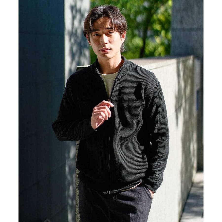 細かいリブ編みで表面感を出してシンプルながら存在感のあるきれいめ見えするジップアップカーディガン。