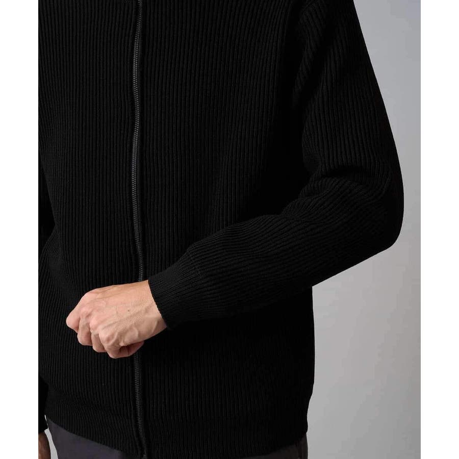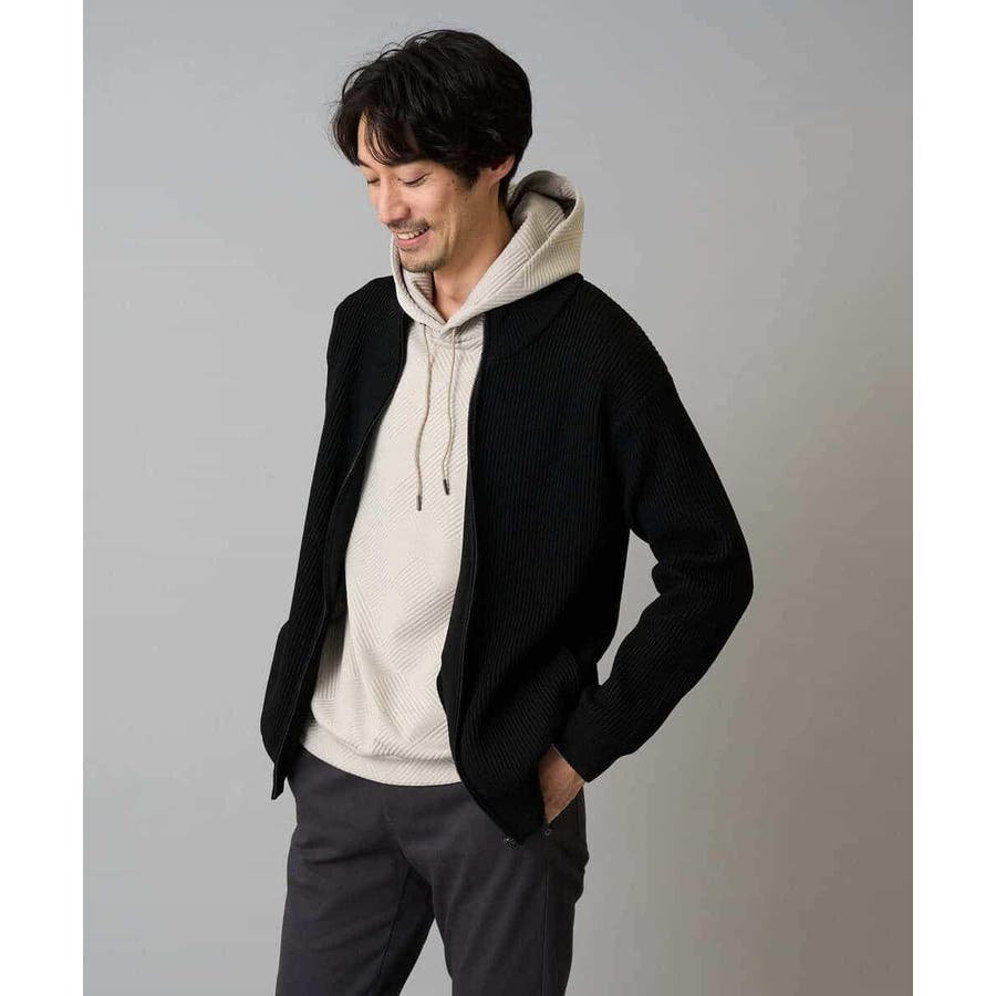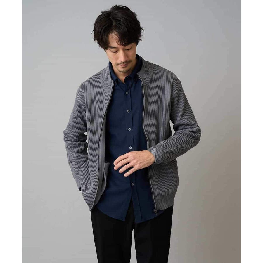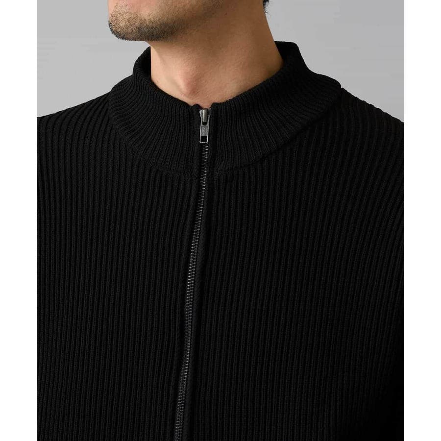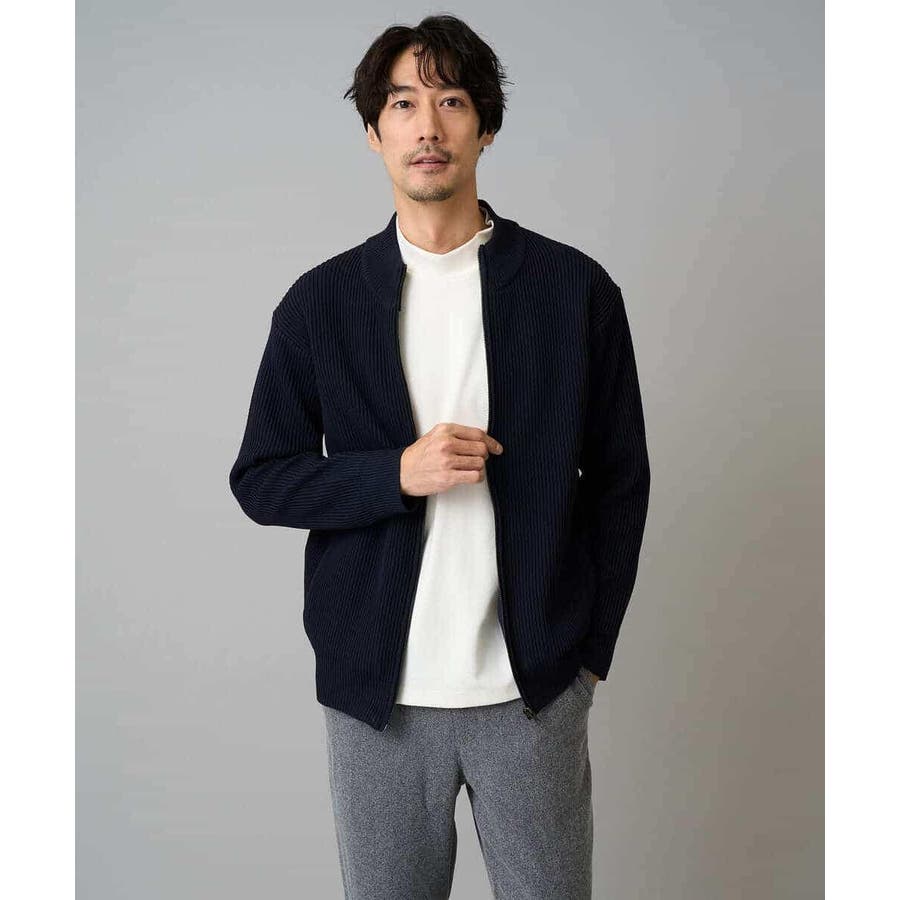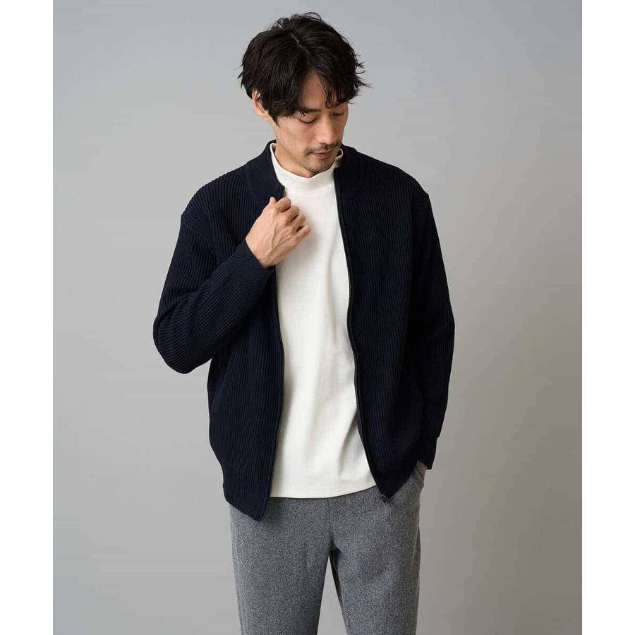 細かいリブ編みで表面感を出してシンプルながら存在感のあるきれいめ見えするジップアップカーディガン。