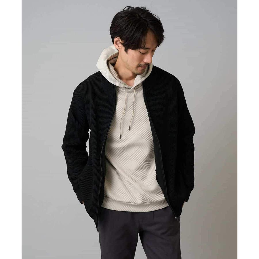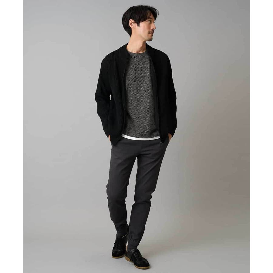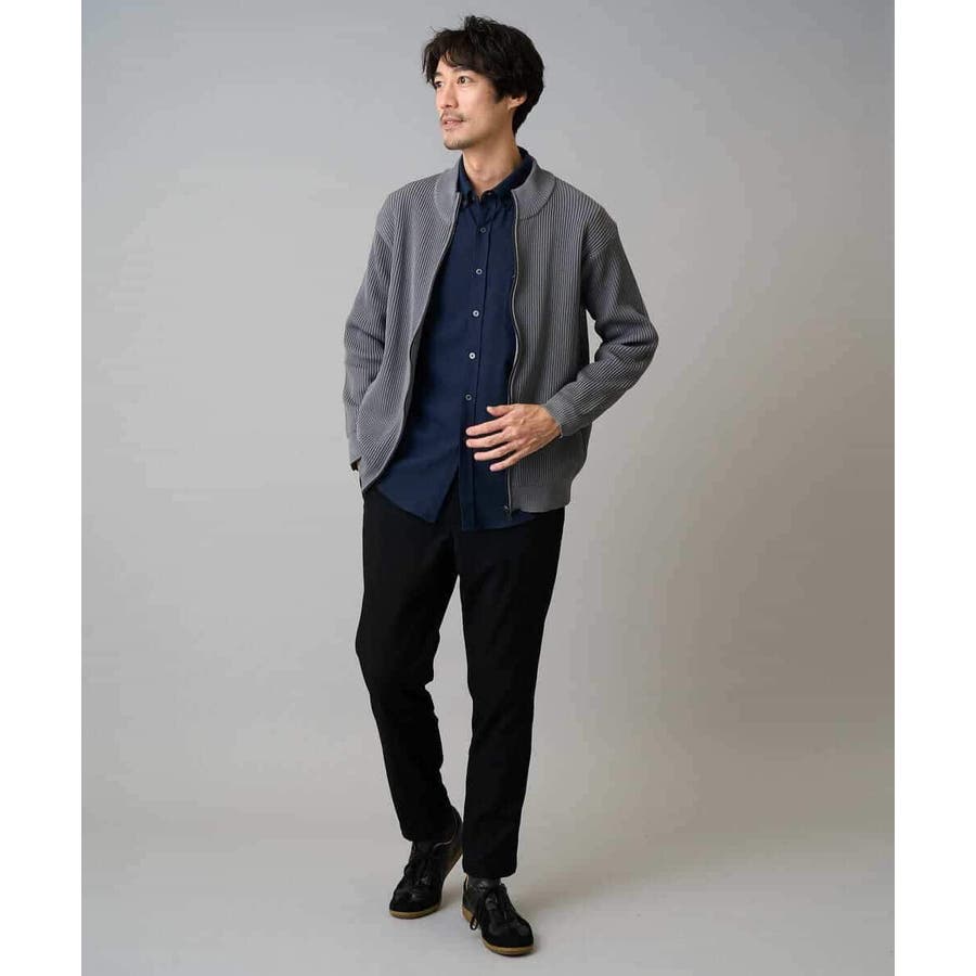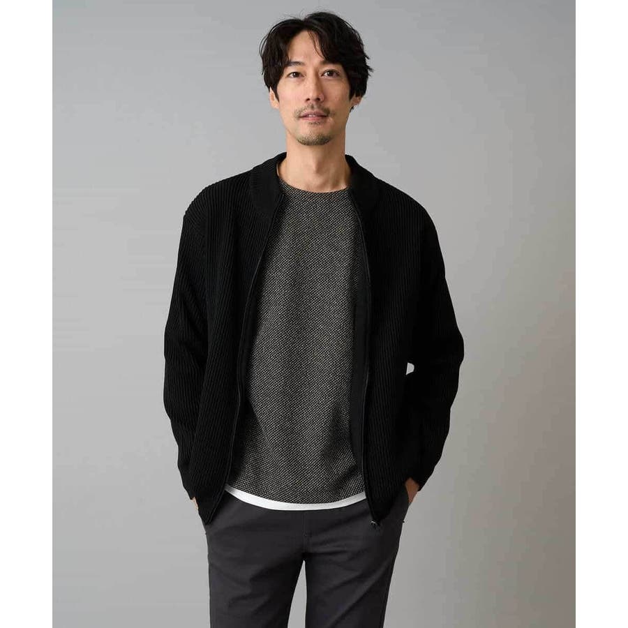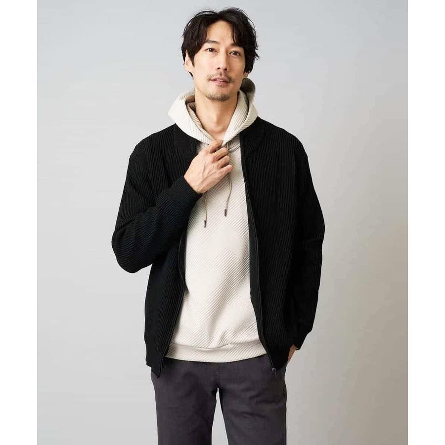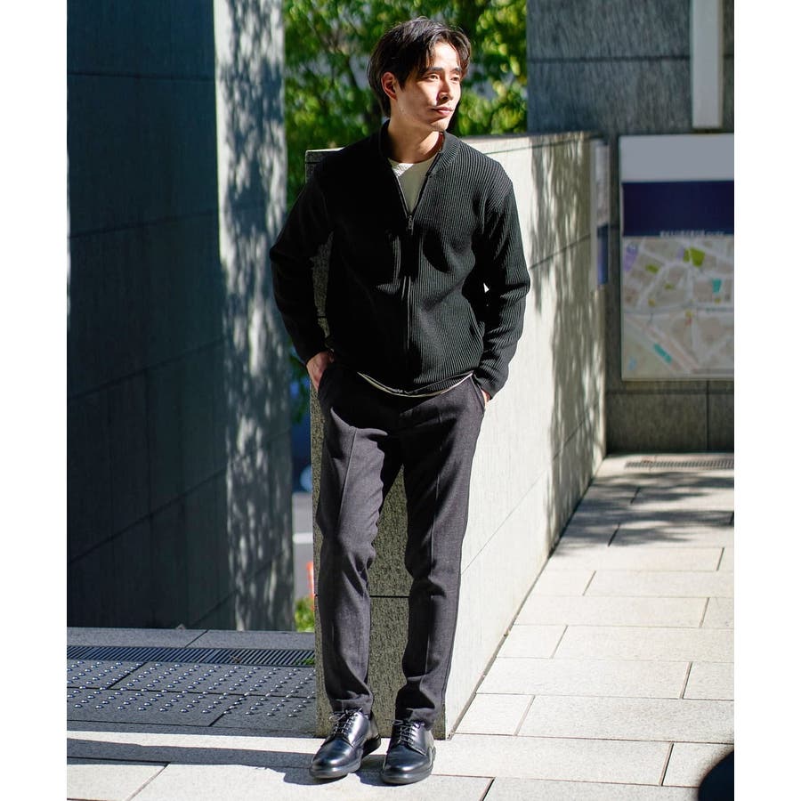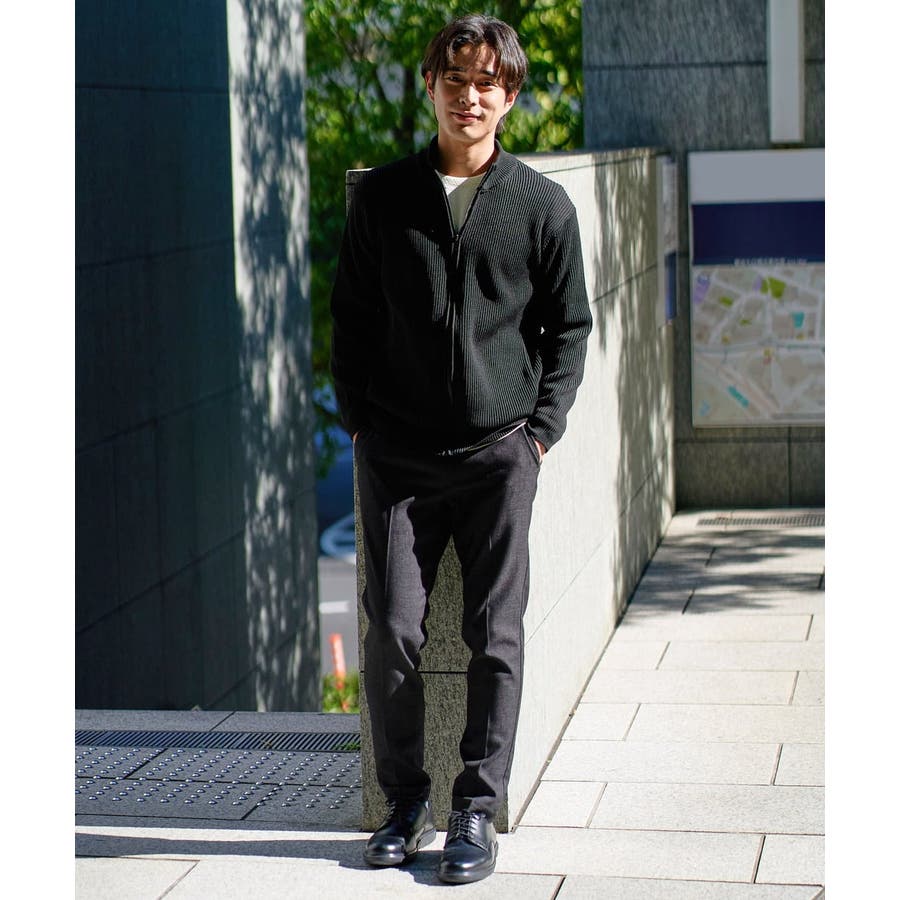 細かいリブ編みで表面感を出してシンプルながら存在感のあるきれいめ見えするジップアップカーディガン。
