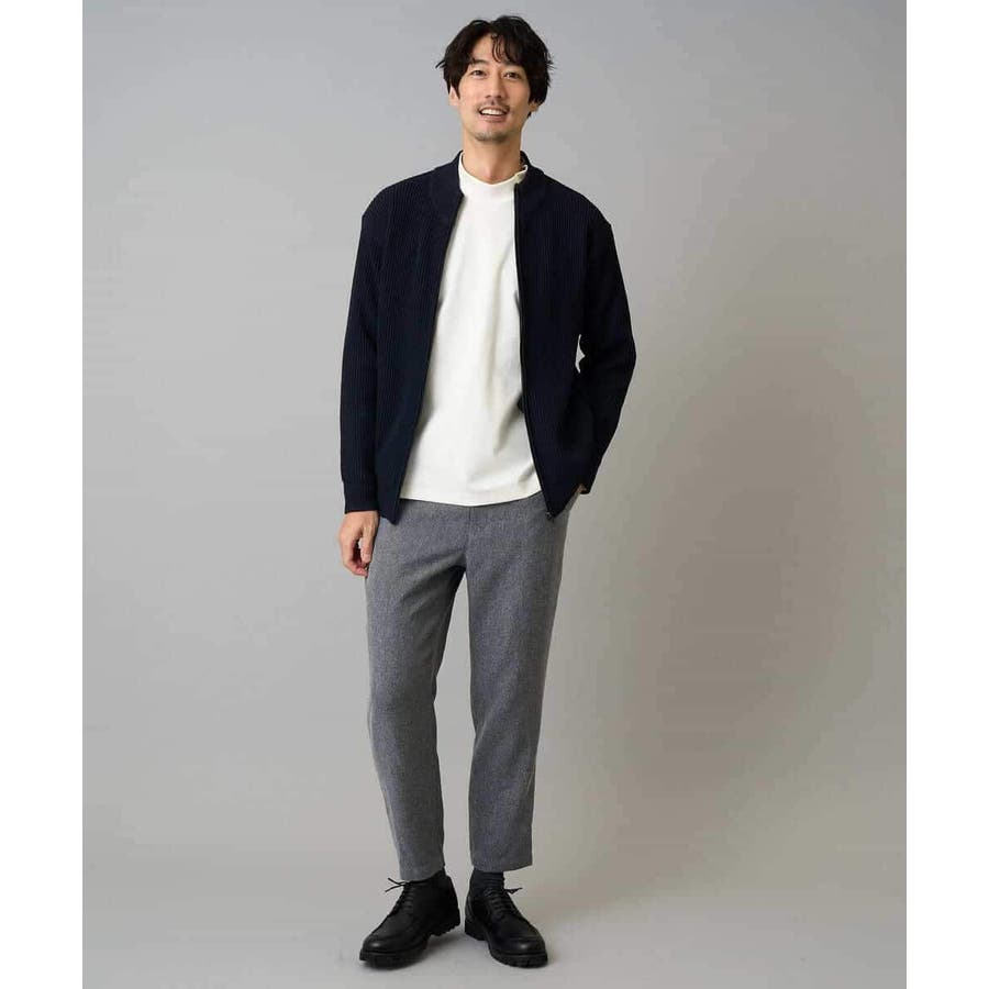 ボトムはきれい目スタイルであればスラックス合わせ、カジュアルスタイルであればゆとりのあるパンツとあわせるとバランスが良いコーディネートの完成です。