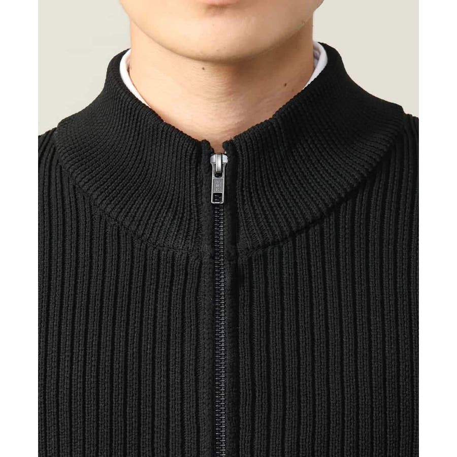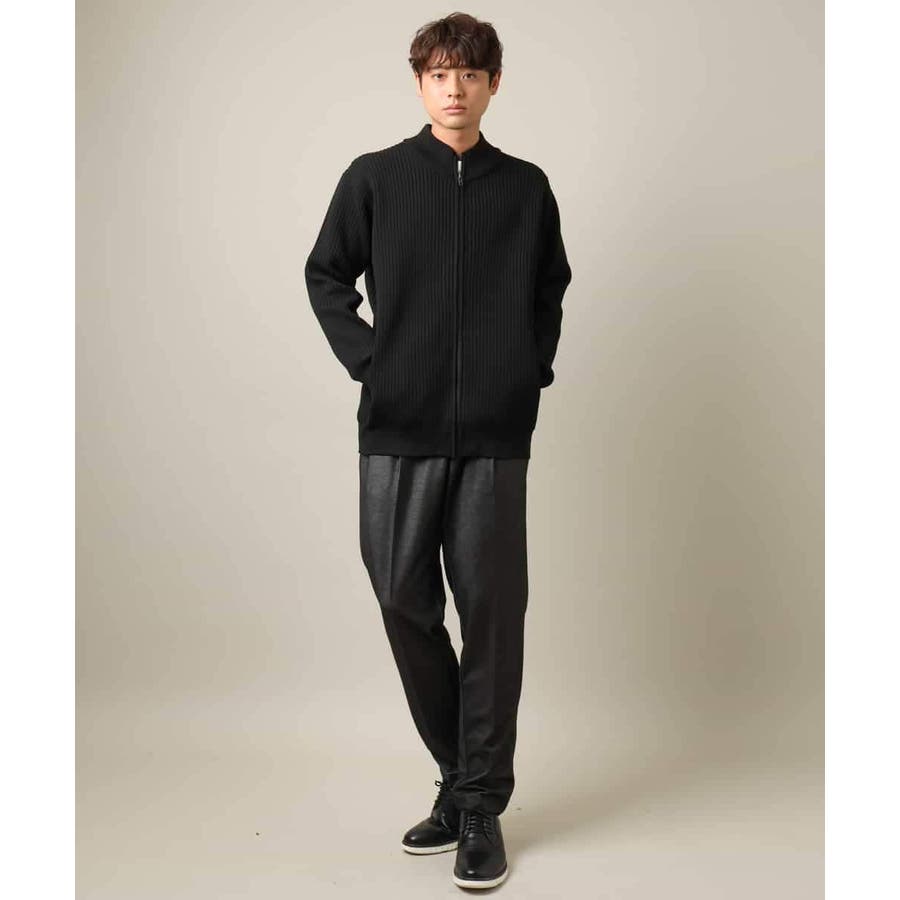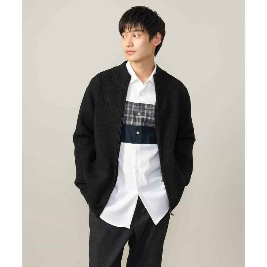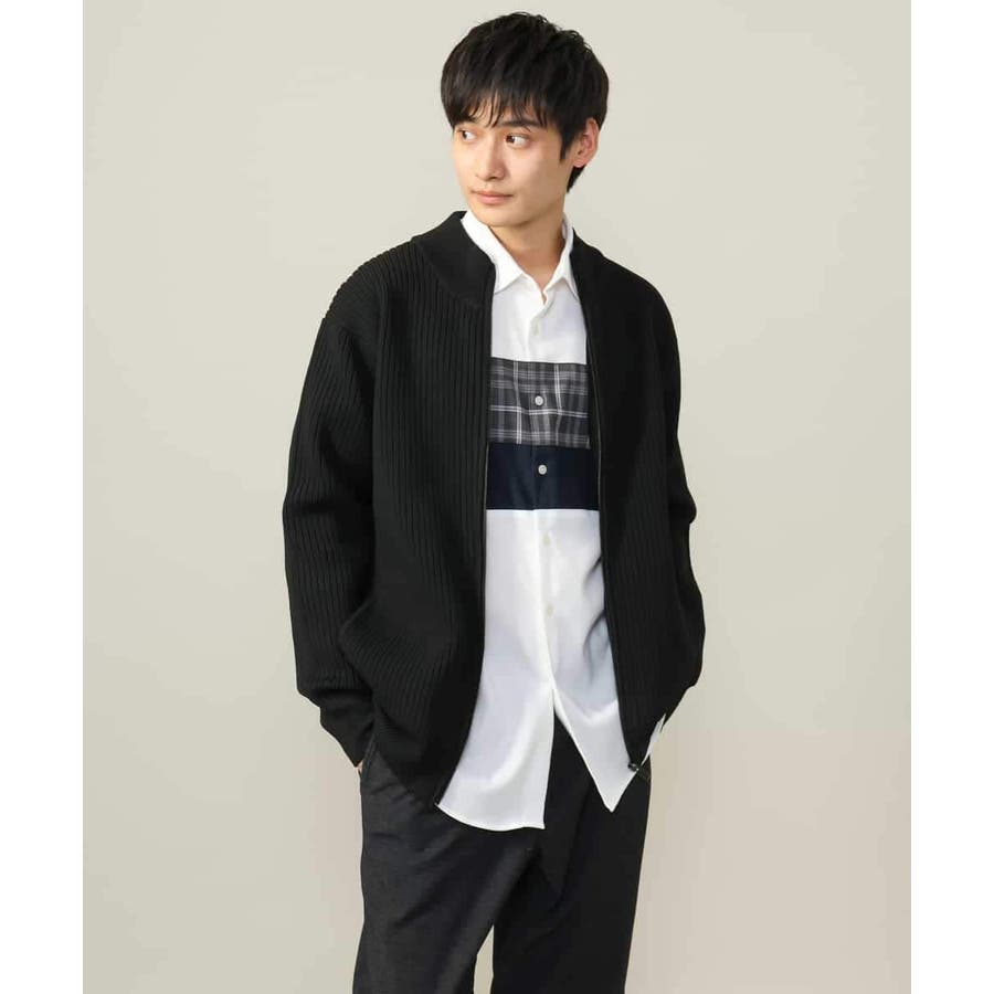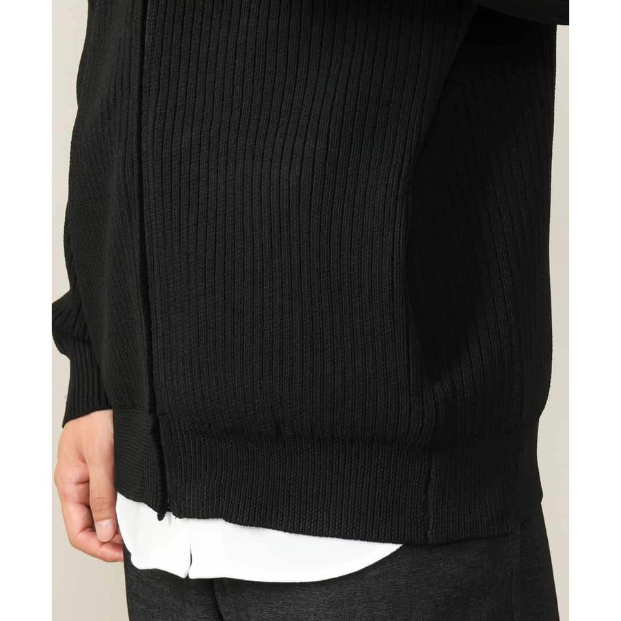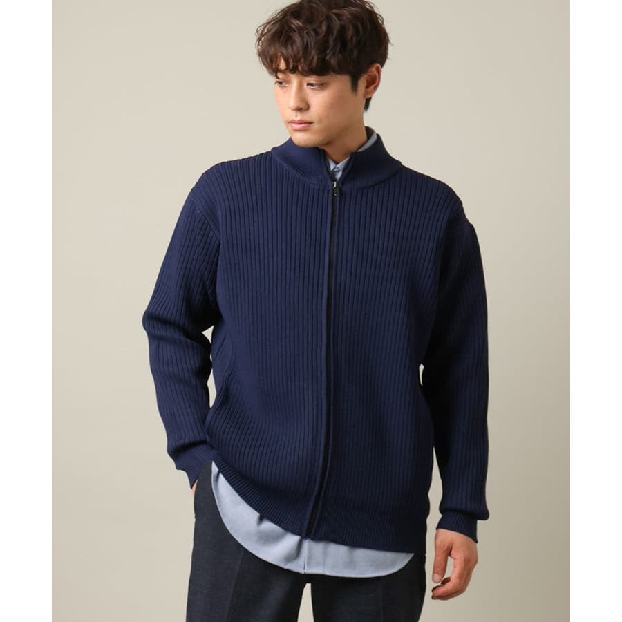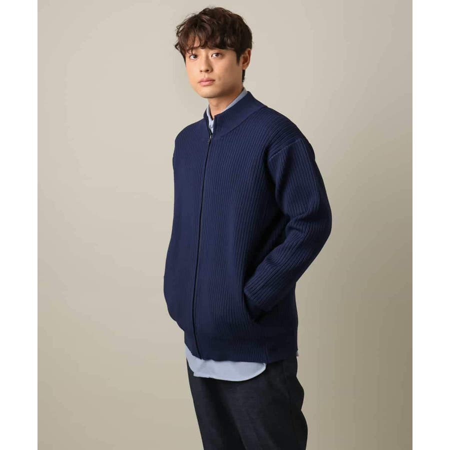 リブ編みで表面感を出してシンプルながら存在感のあるきれいめ見えするジップアップブルゾン型カーディガン。
