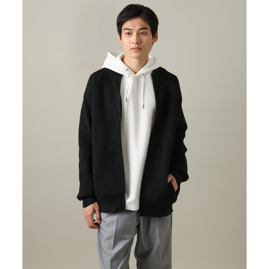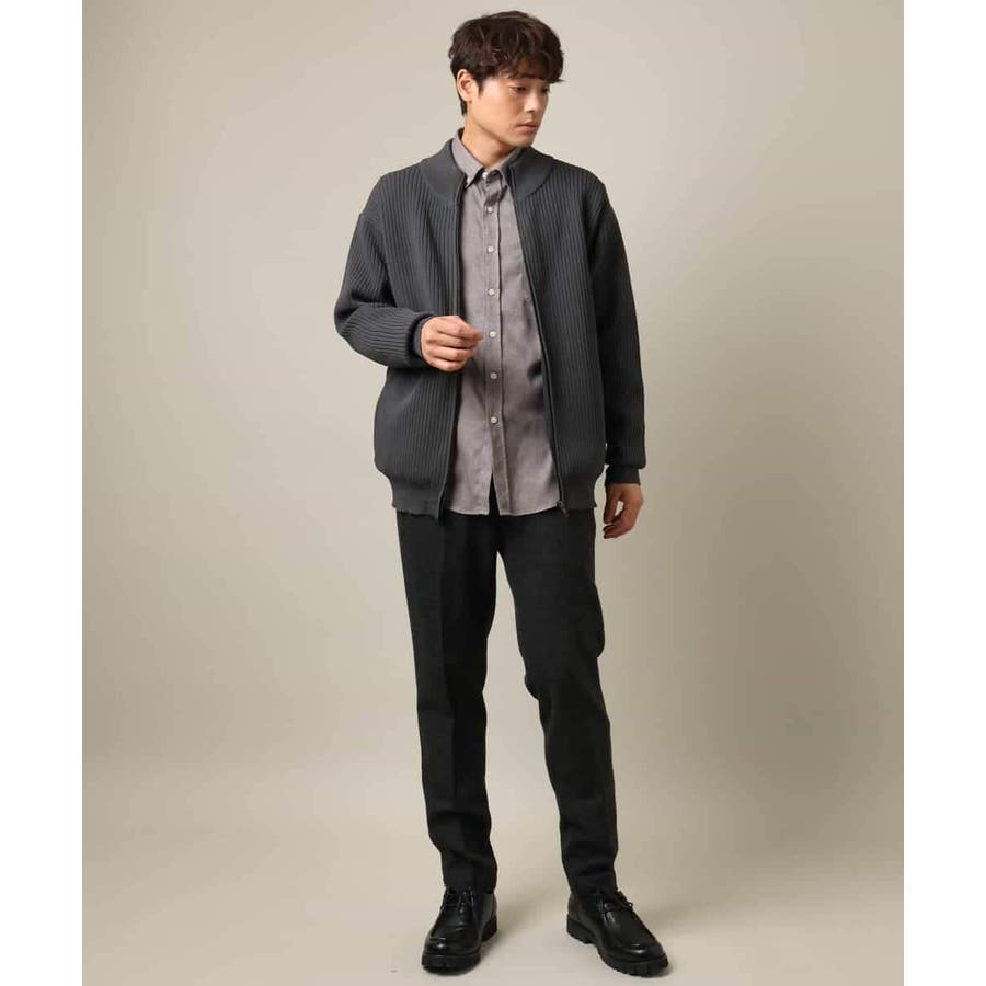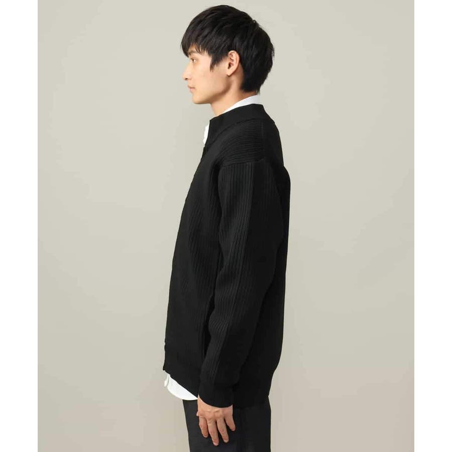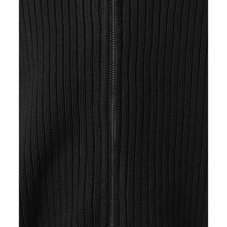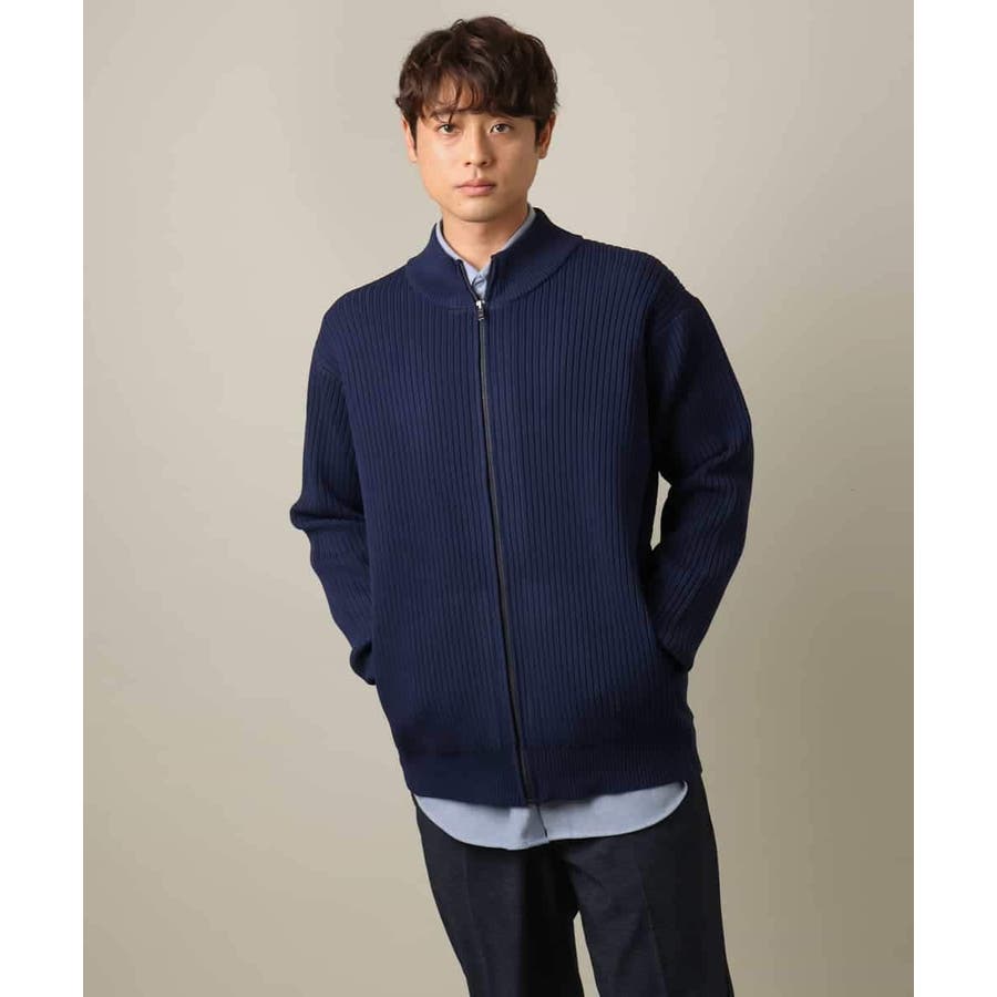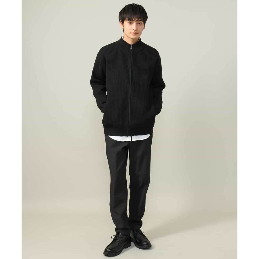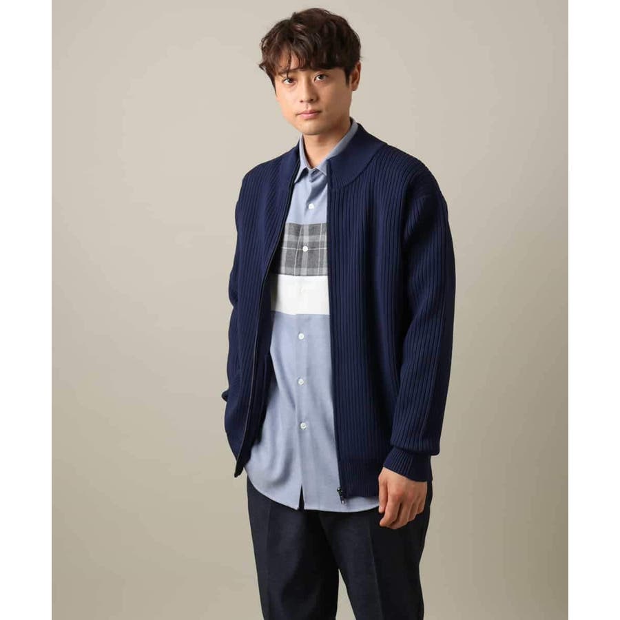 リブ編みで表面感を出してシンプルながら存在感のあるきれいめ見えするジップアップブルゾン型カーディガン。