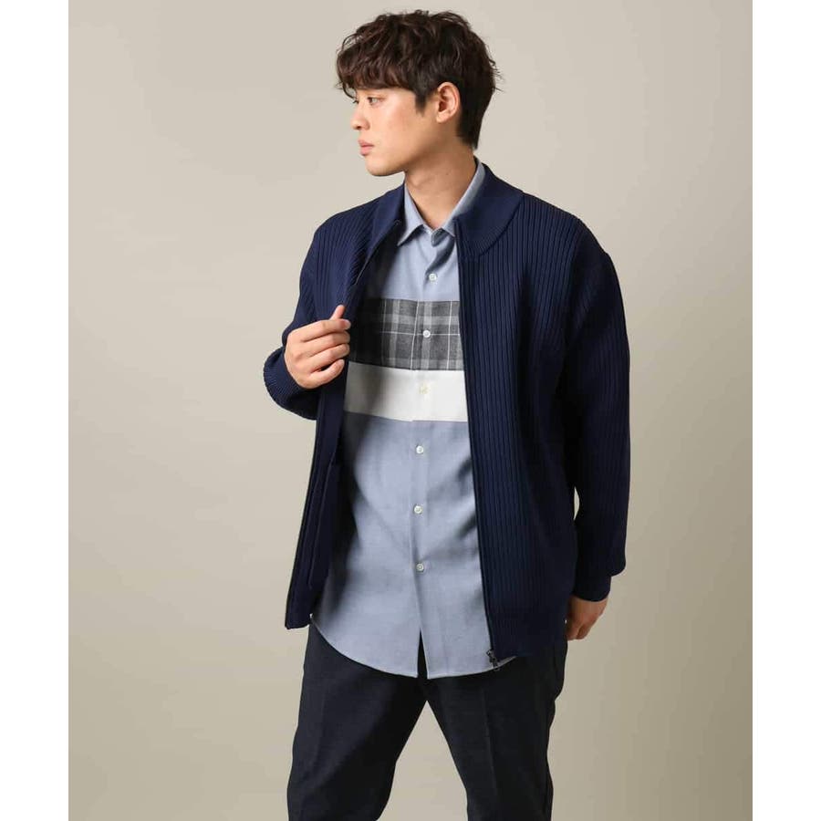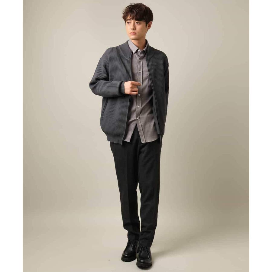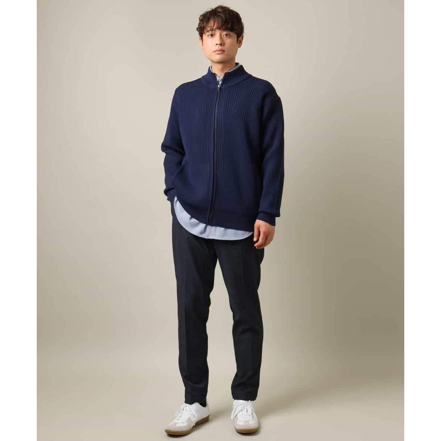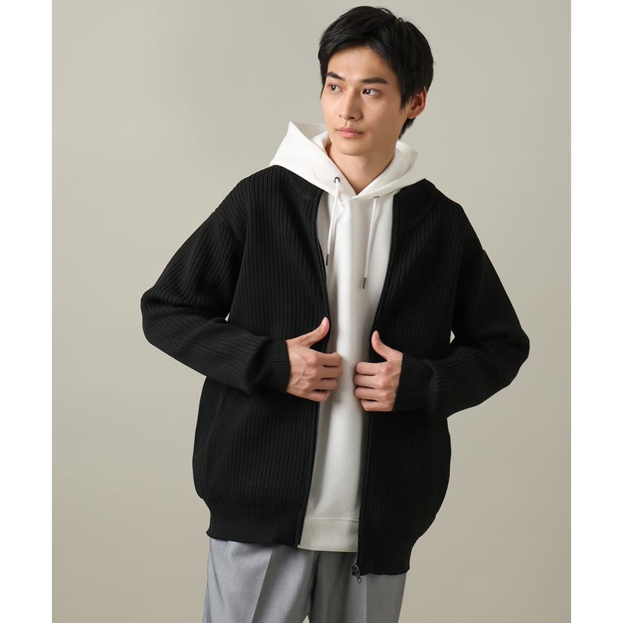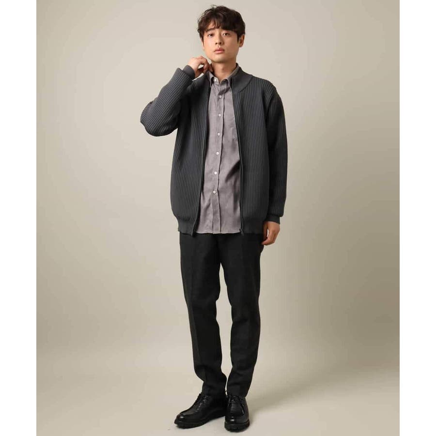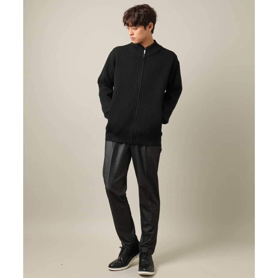 リブ編みで表面感を出してシンプルながら存在感のあるきれいめ見えするジップアップブルゾン型カーディガン。