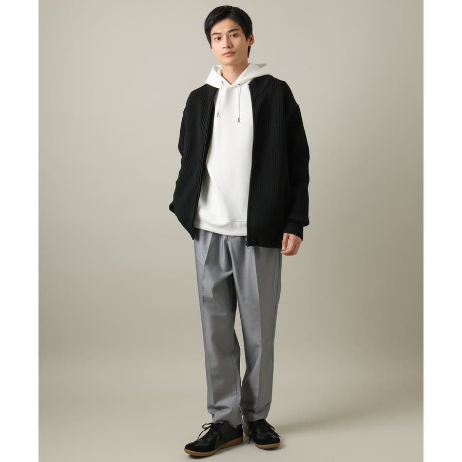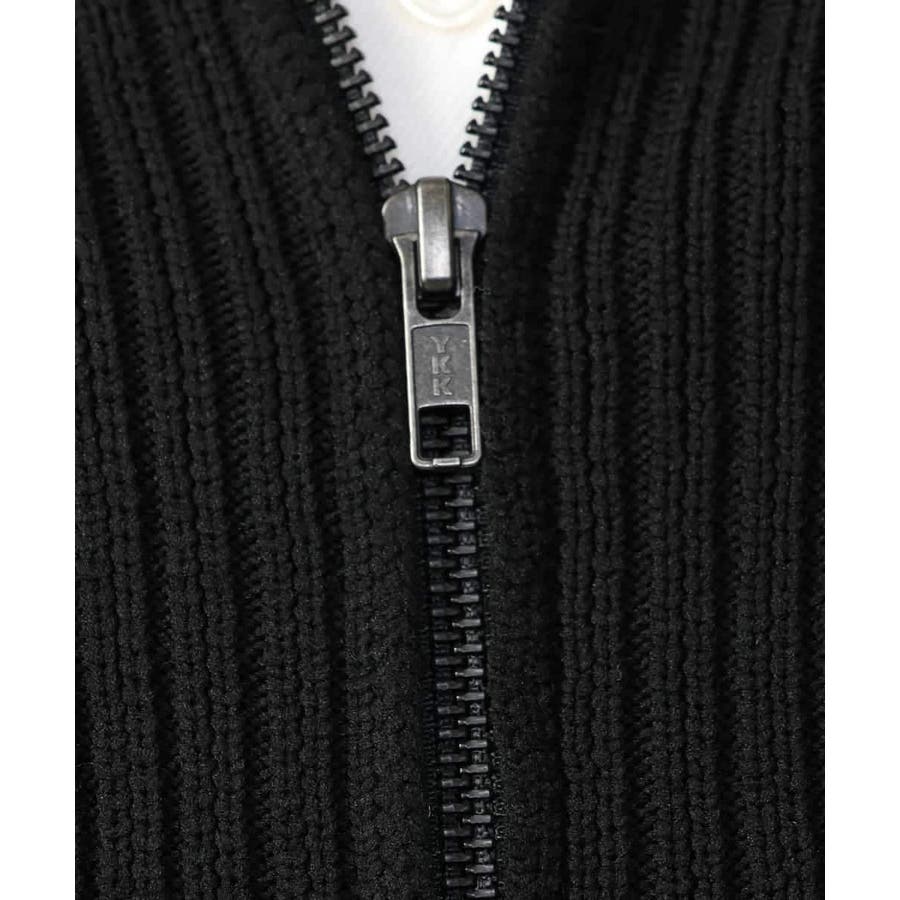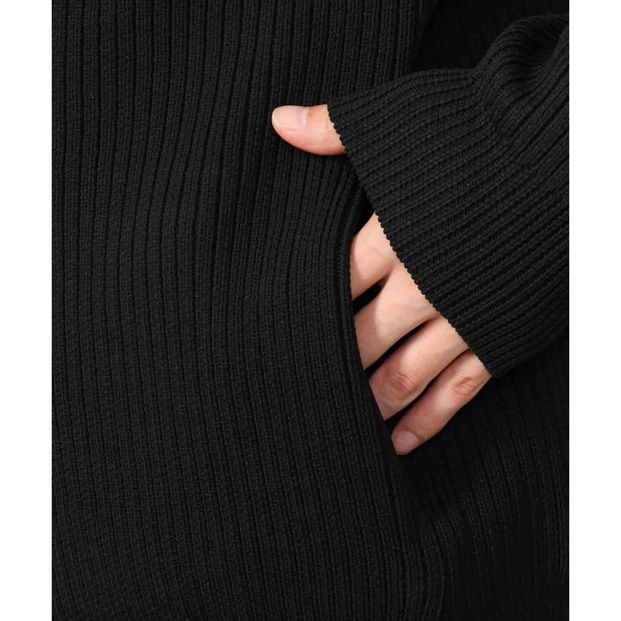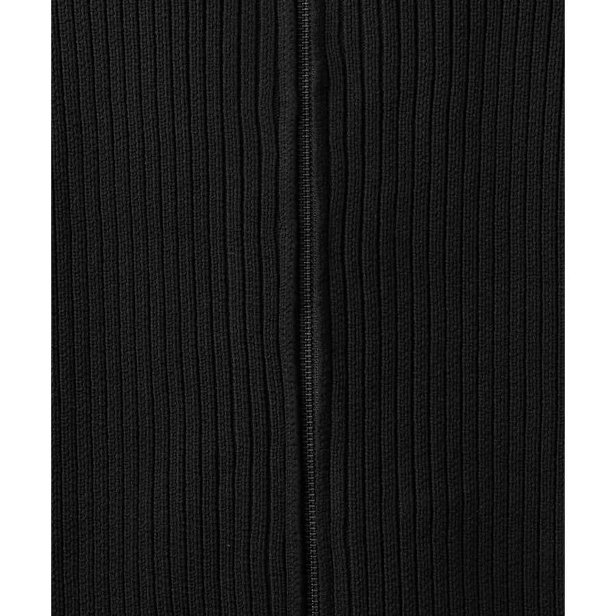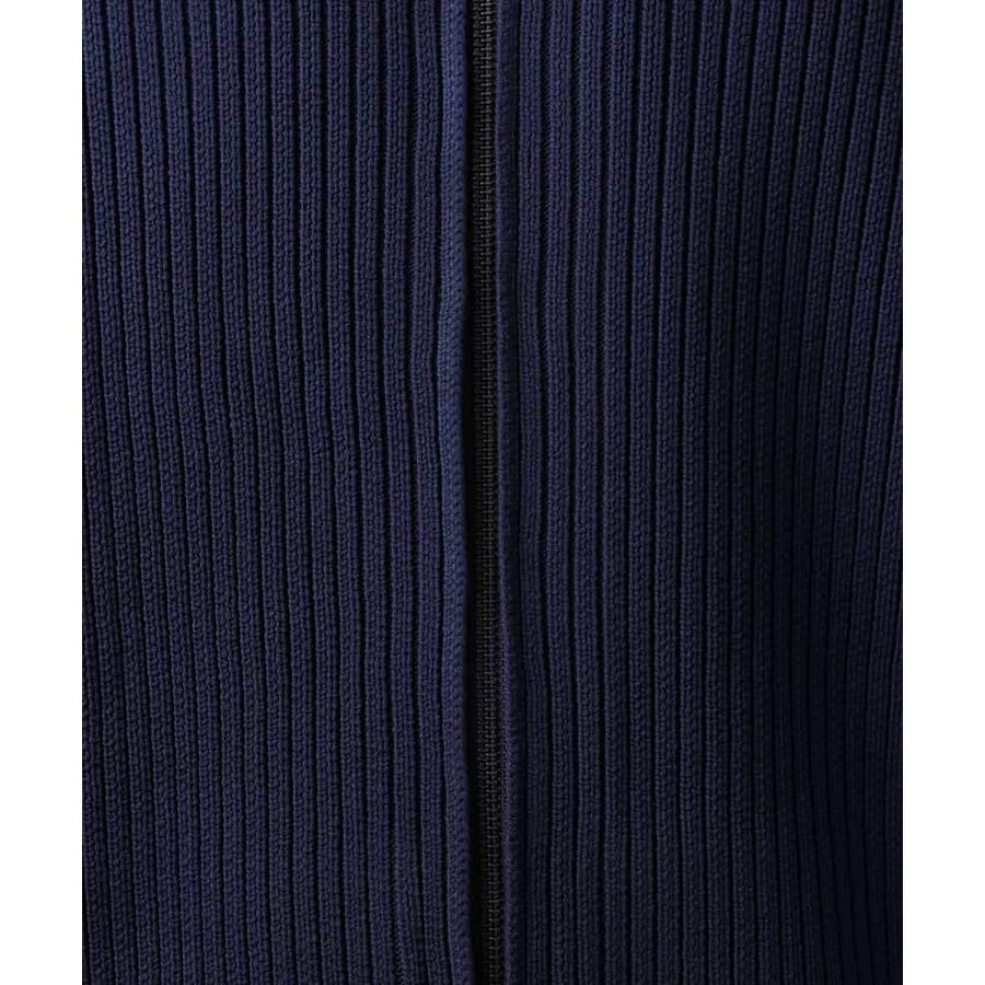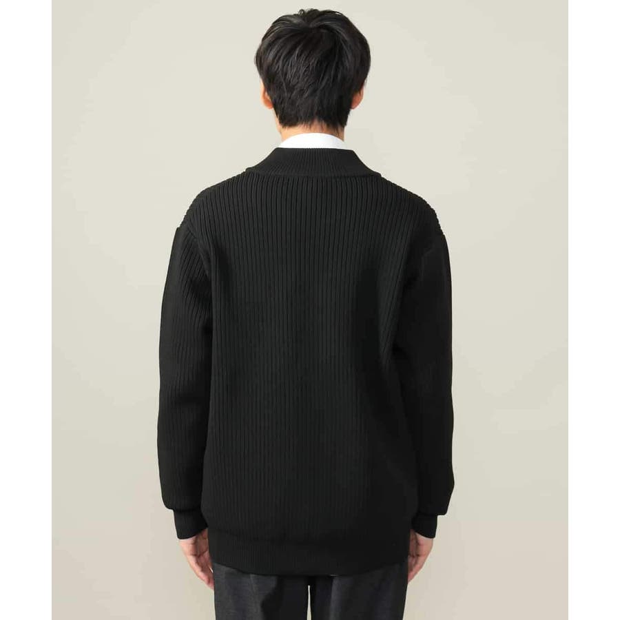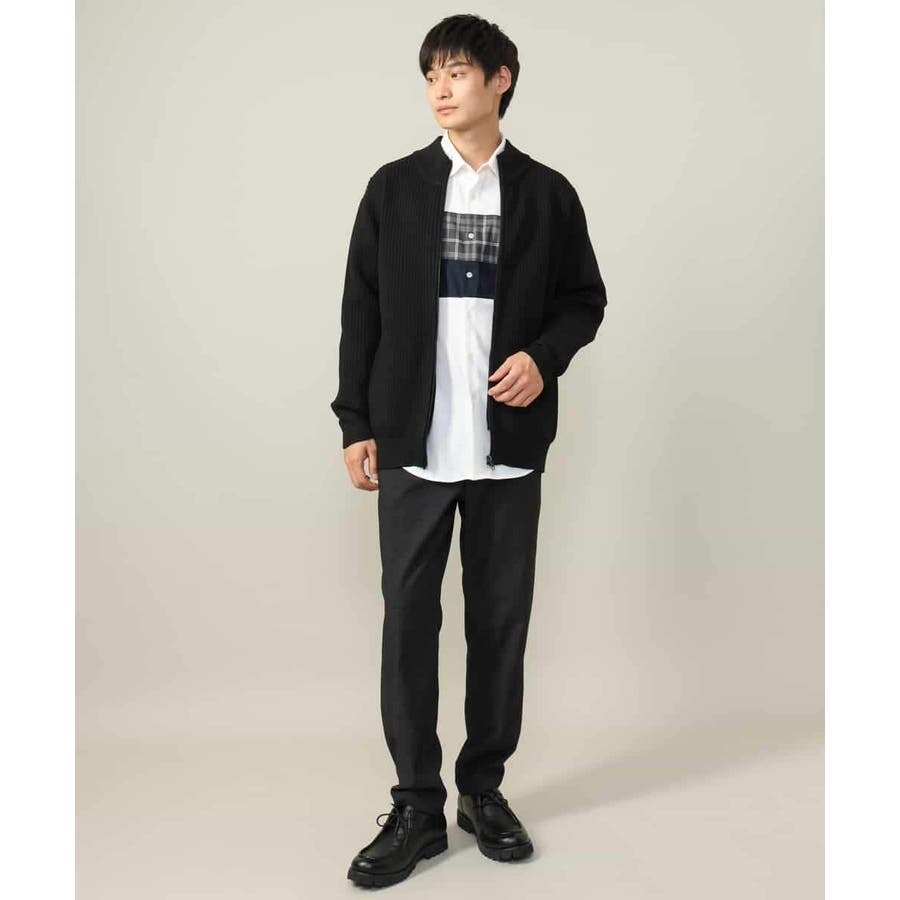 リブ編みで表面感を出してシンプルながら存在感のあるきれいめ見えするジップアップブルゾン型カーディガン。