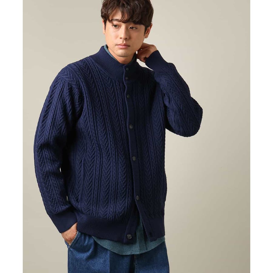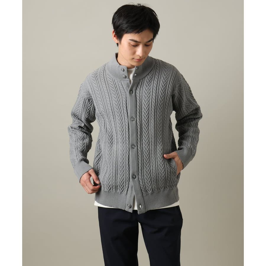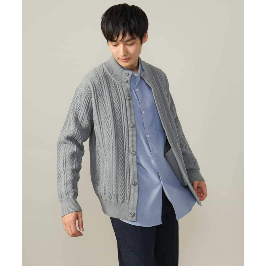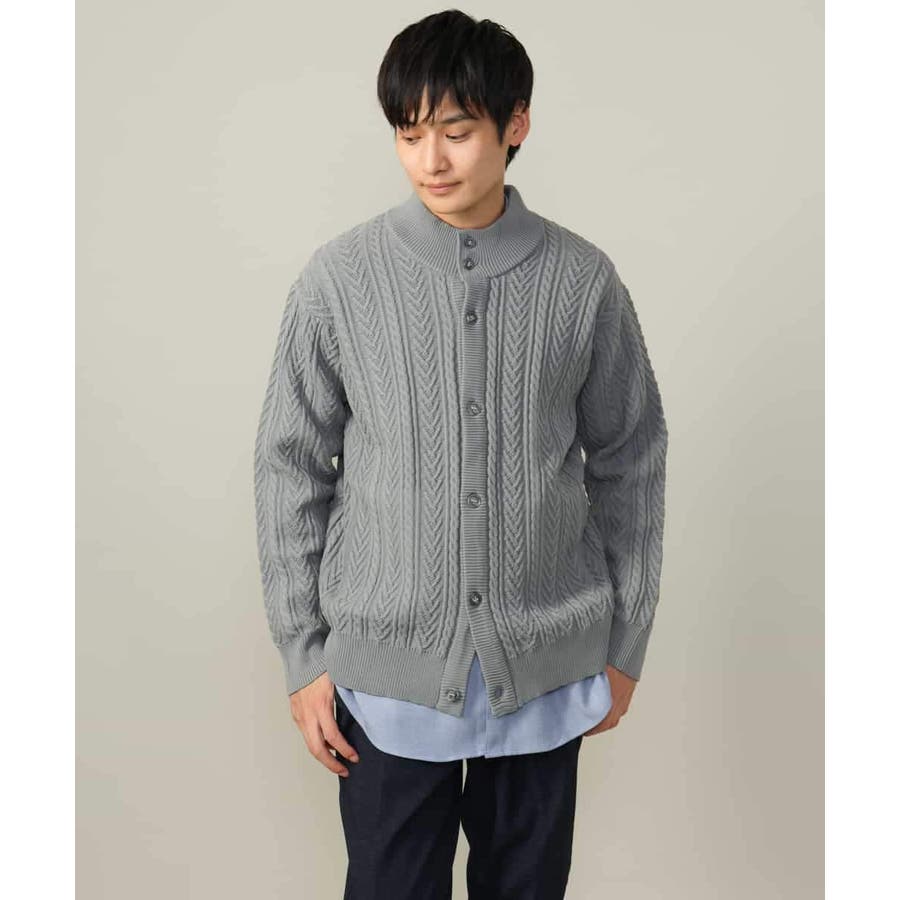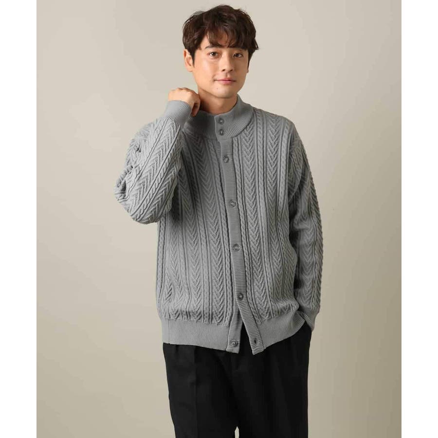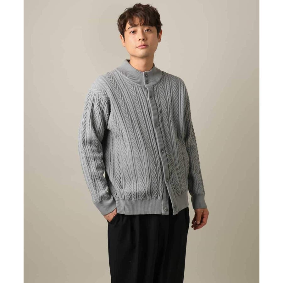 【春先まで使える】ケーブル柄スタンドカラーカーディガン
