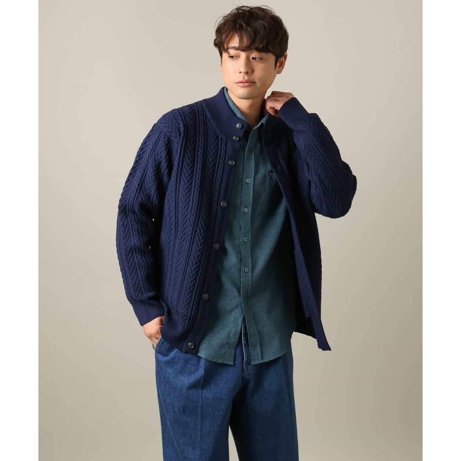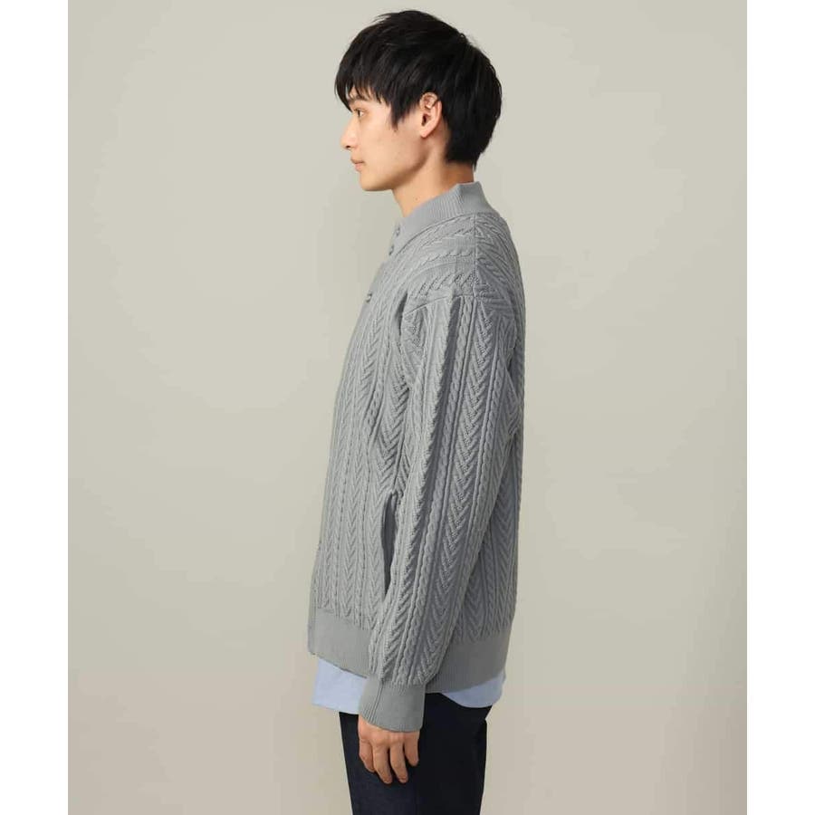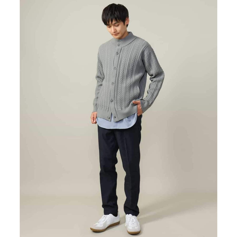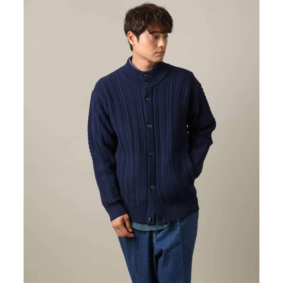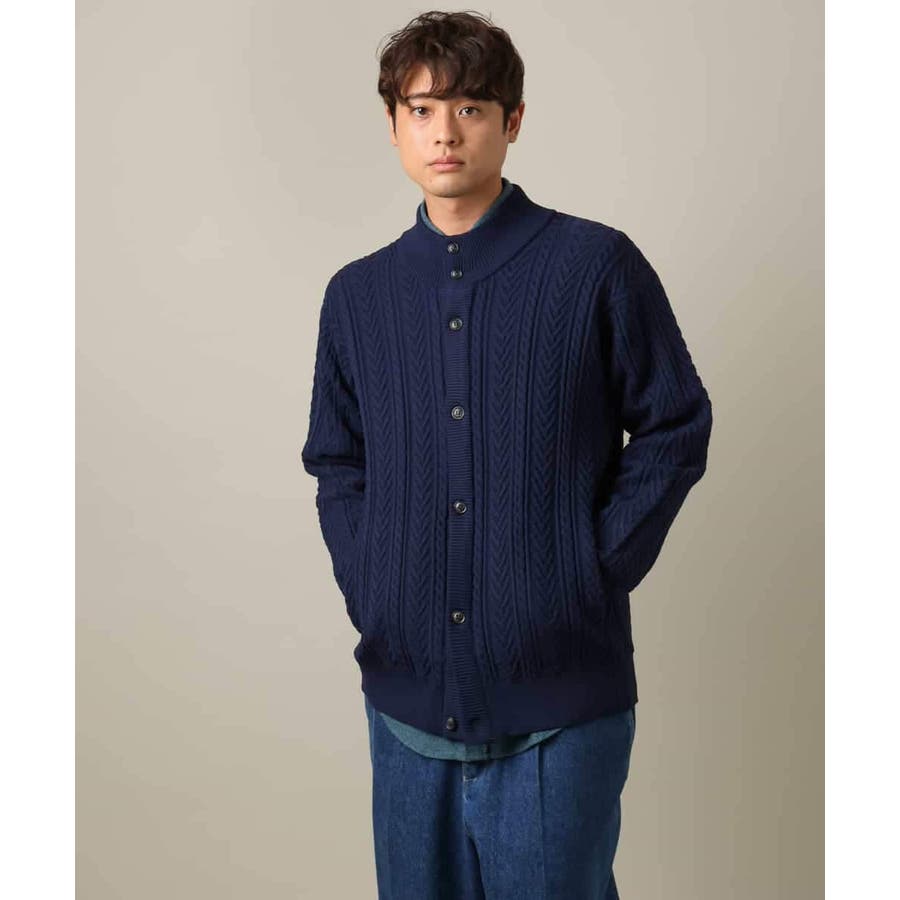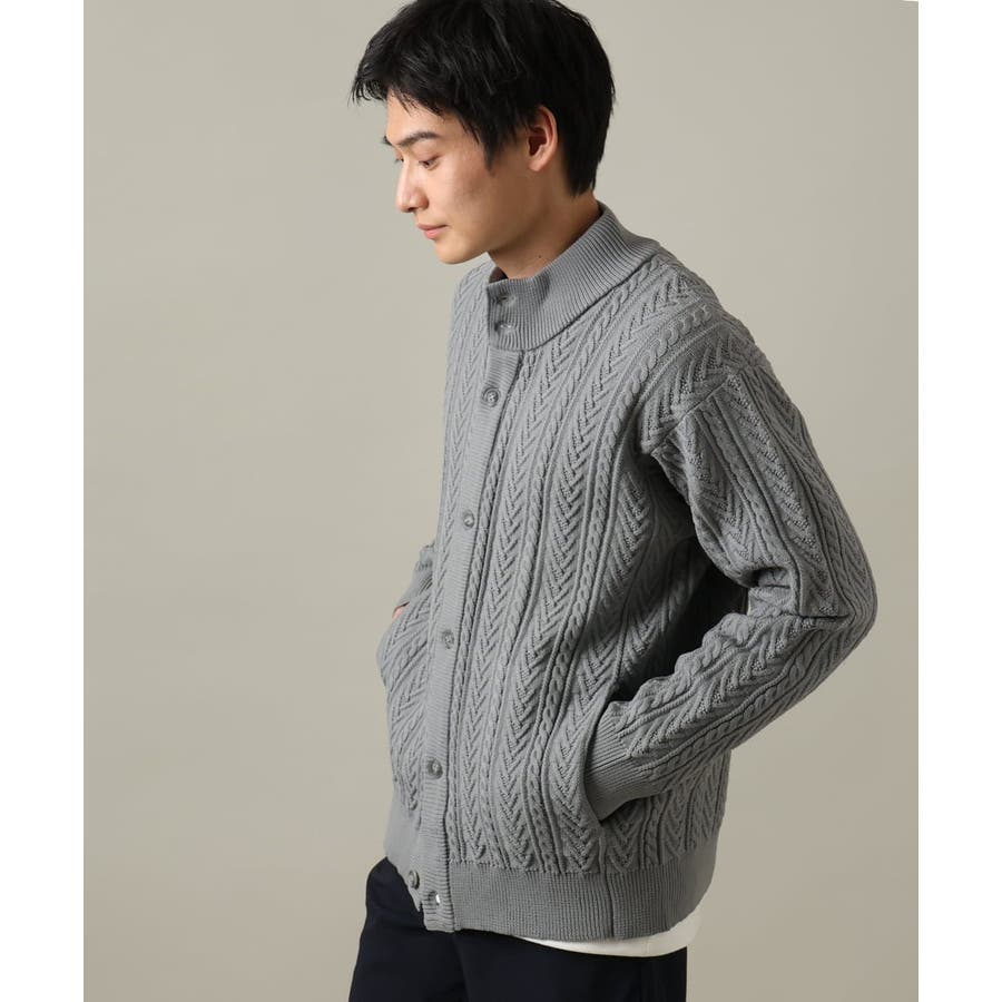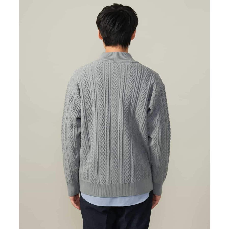 【春先まで使える】ケーブル柄スタンドカラーカーディガン