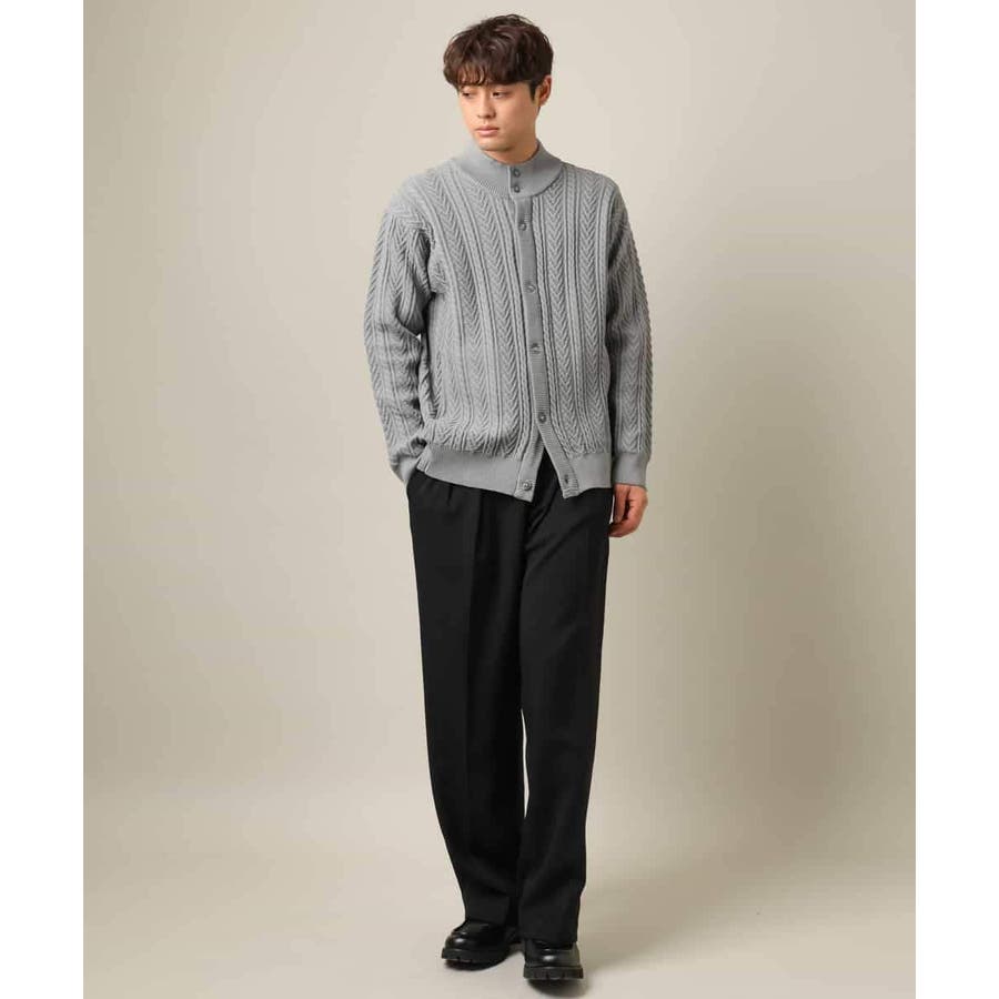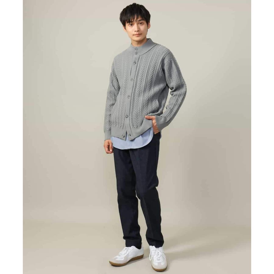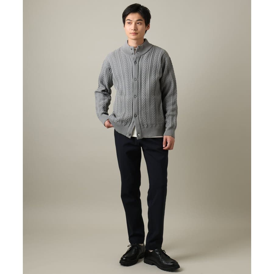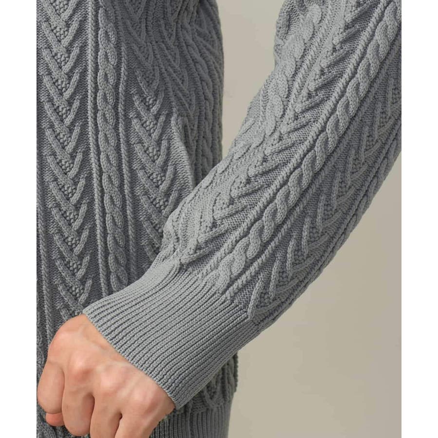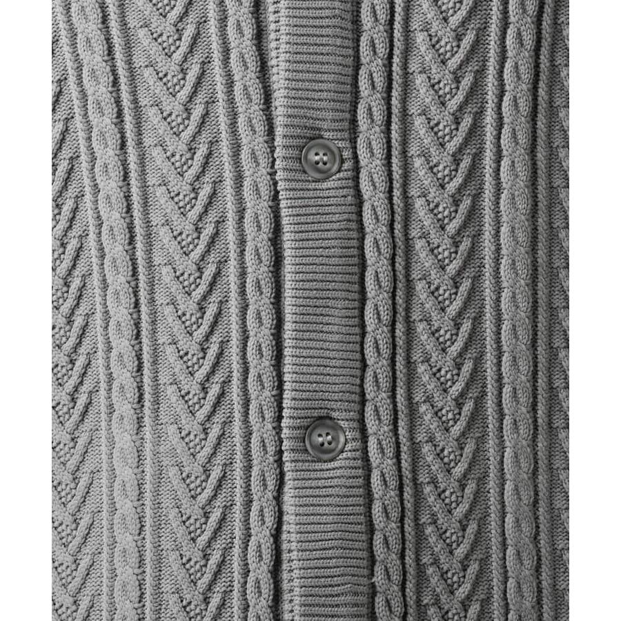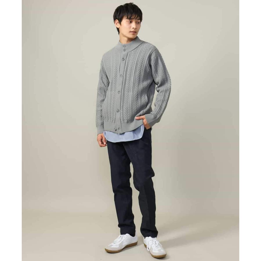 【春先まで使える】ケーブル柄スタンドカラーカーディガン
