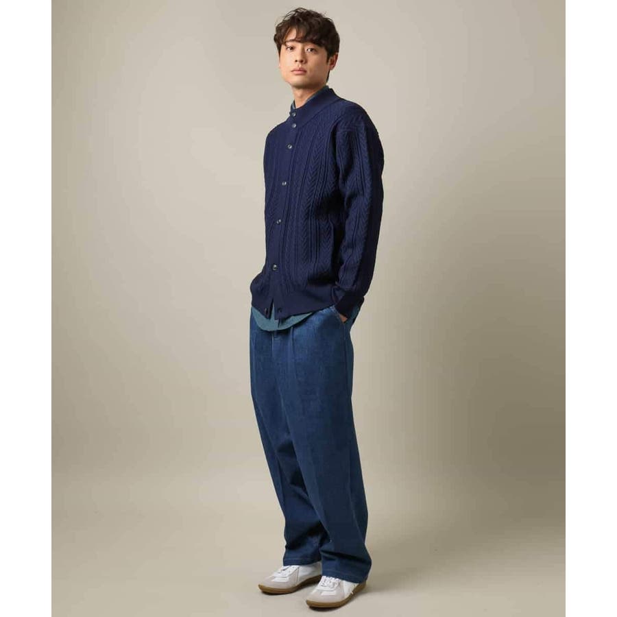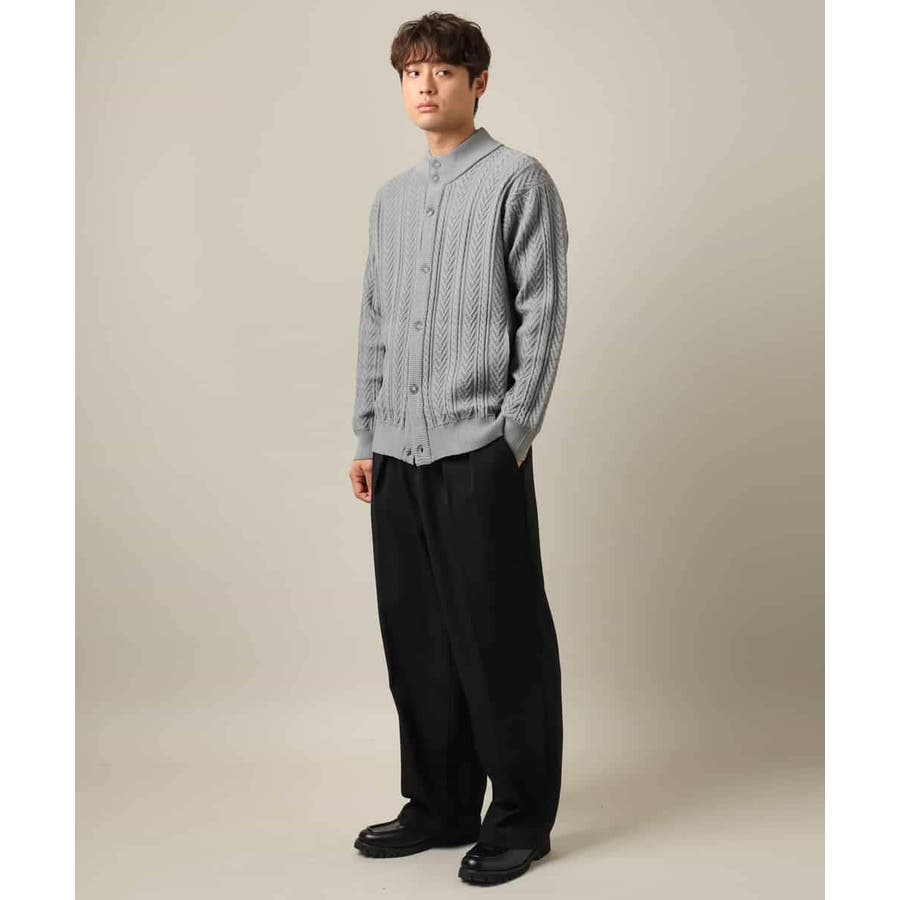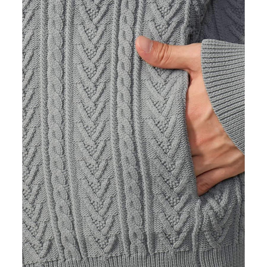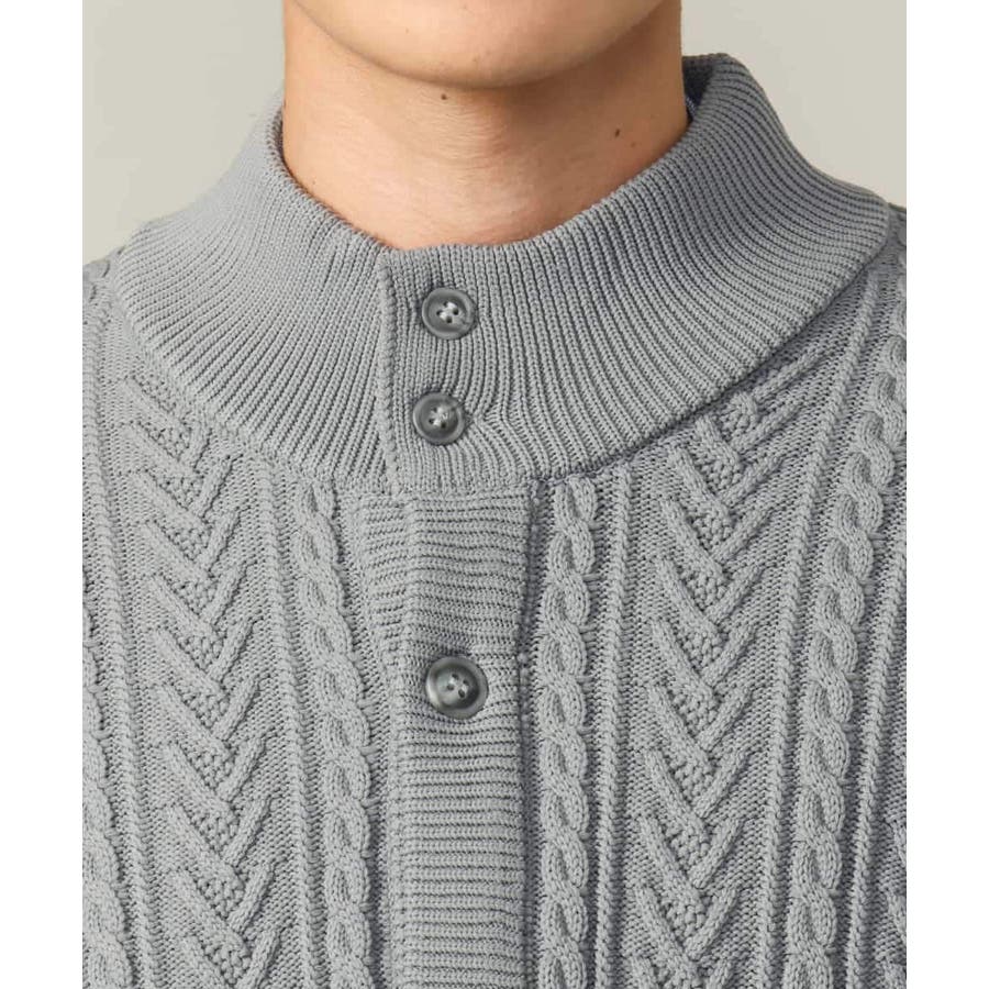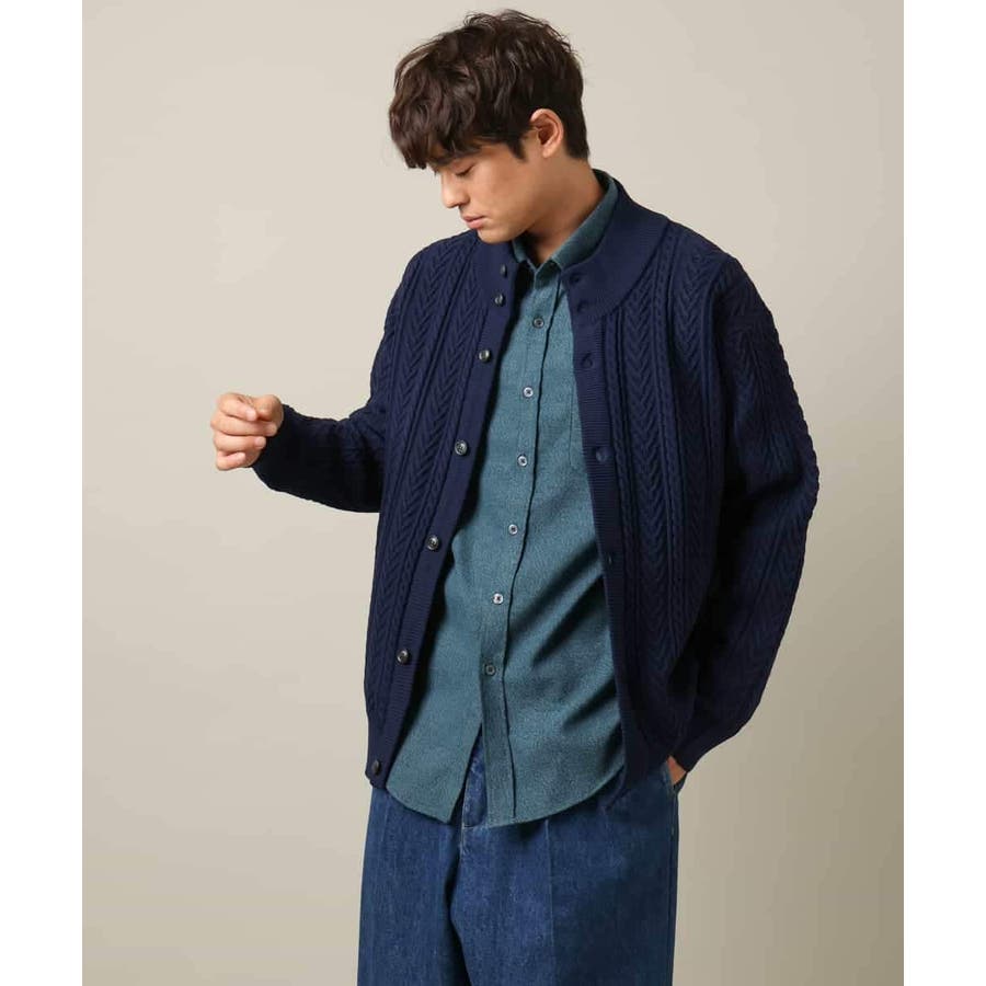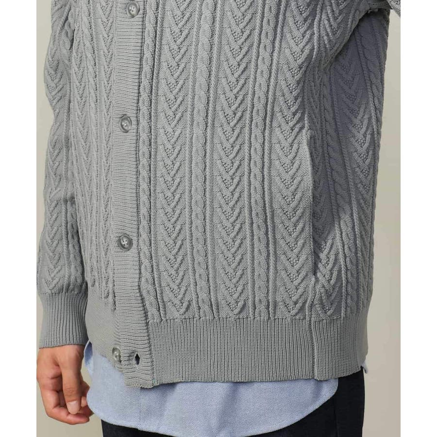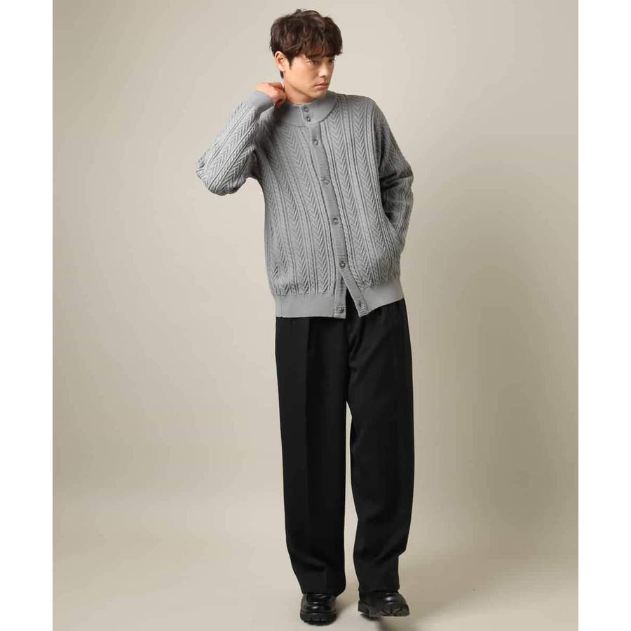 【春先まで使える】ケーブル柄スタンドカラーカーディガン