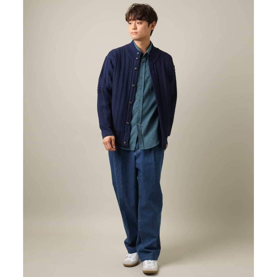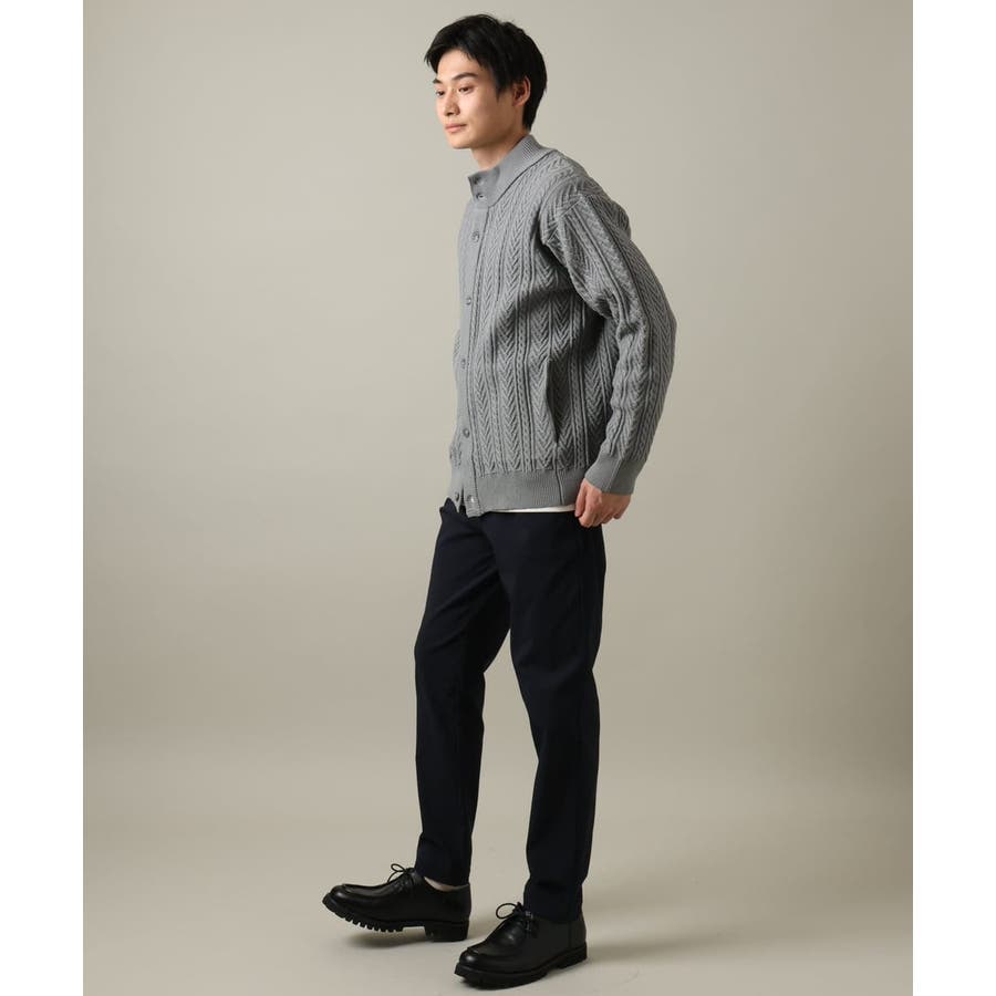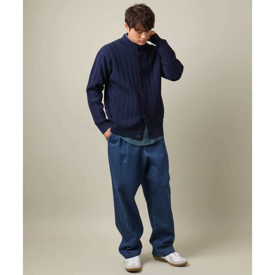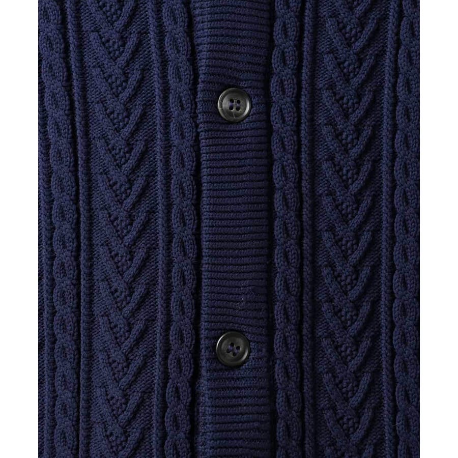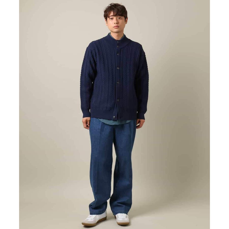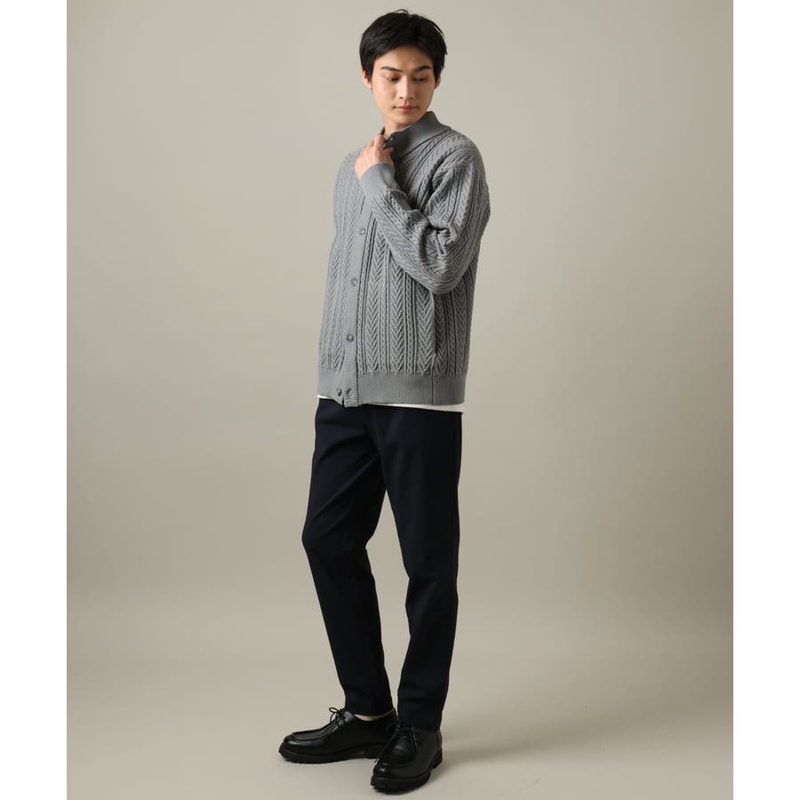 【春先まで使える】ケーブル柄スタンドカラーカーディガン