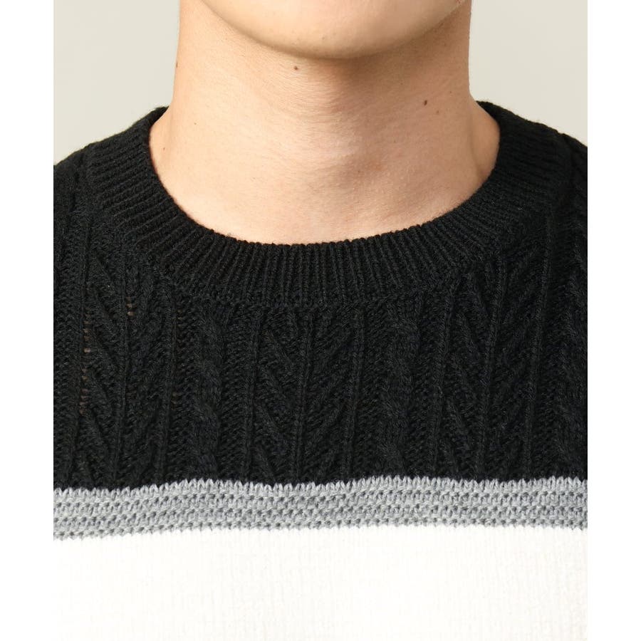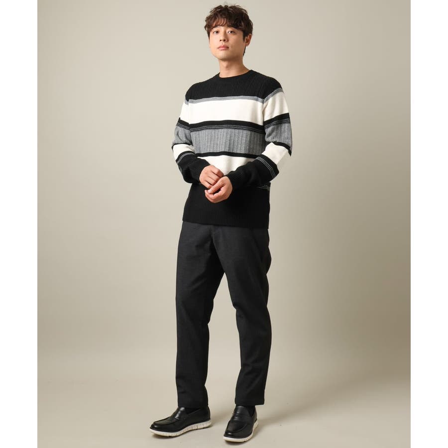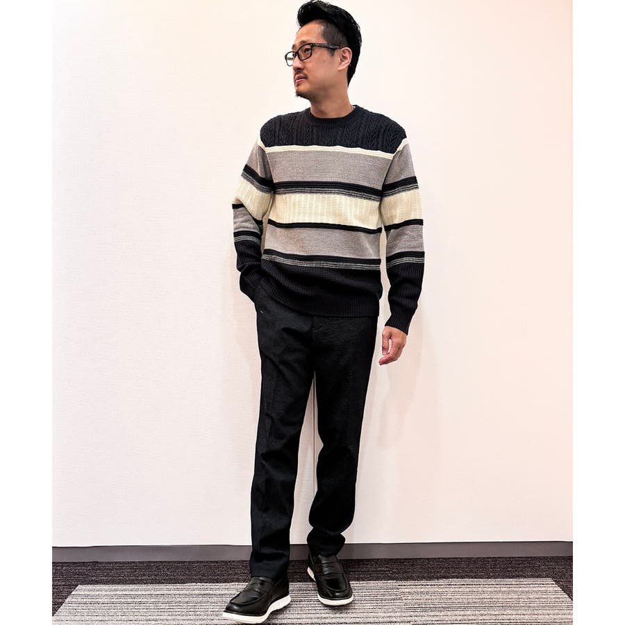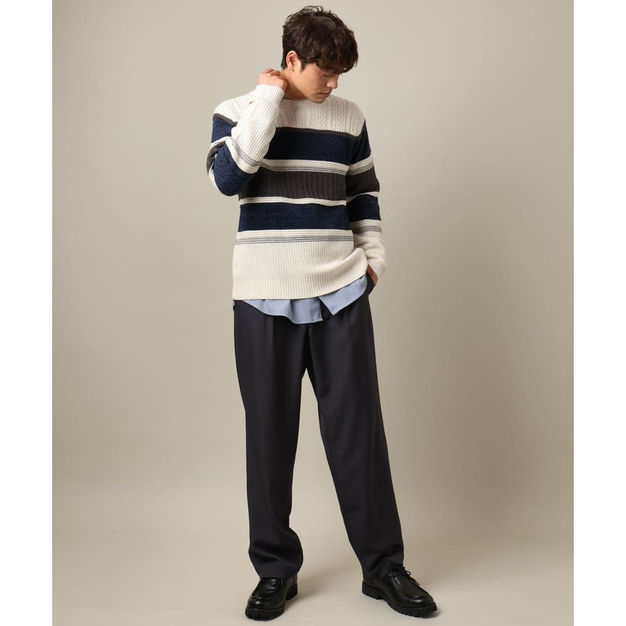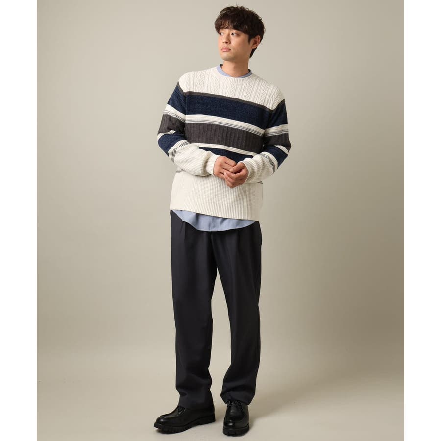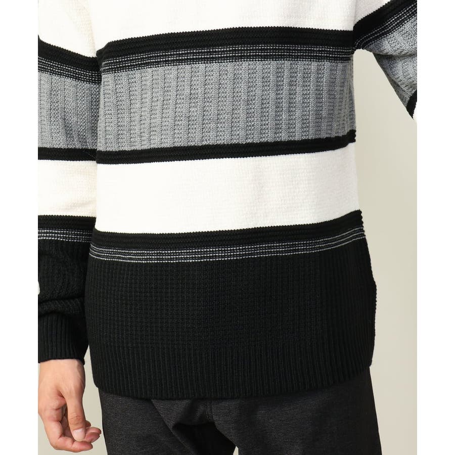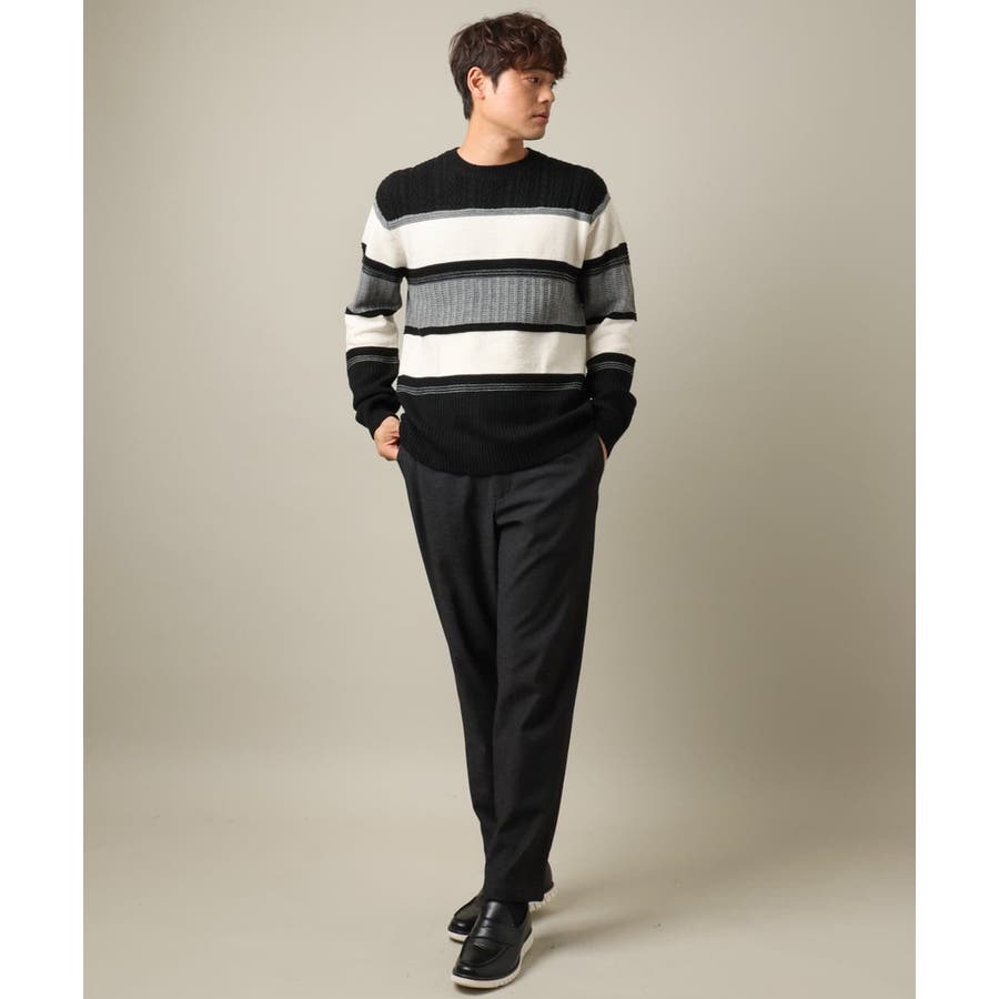 編地の違うニットをボーダーに組み合わせたこだわりの柄感がポイントで、1枚でサマになる着映えニットです。