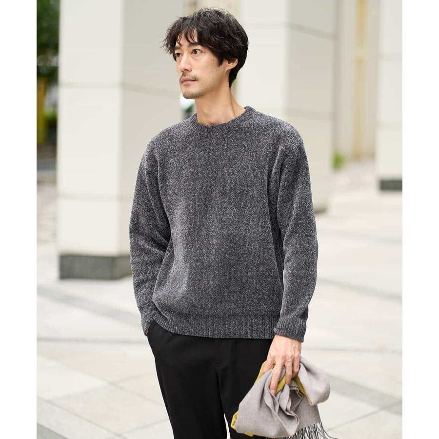 ◆この冬一枚は持っておきたいモール糸を使用したジャカード編みクルーネックニット◆