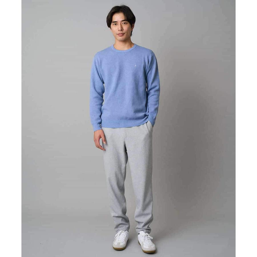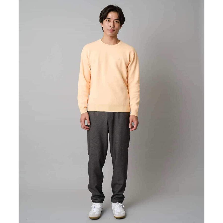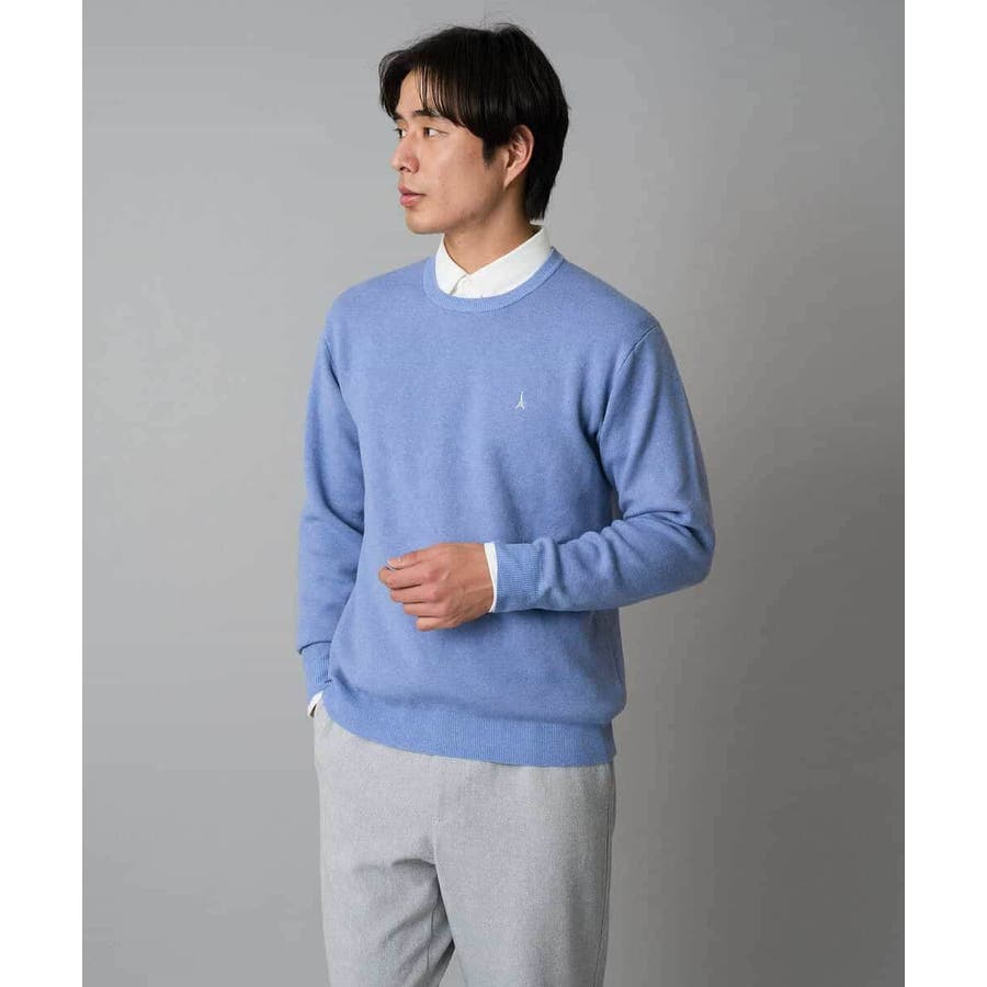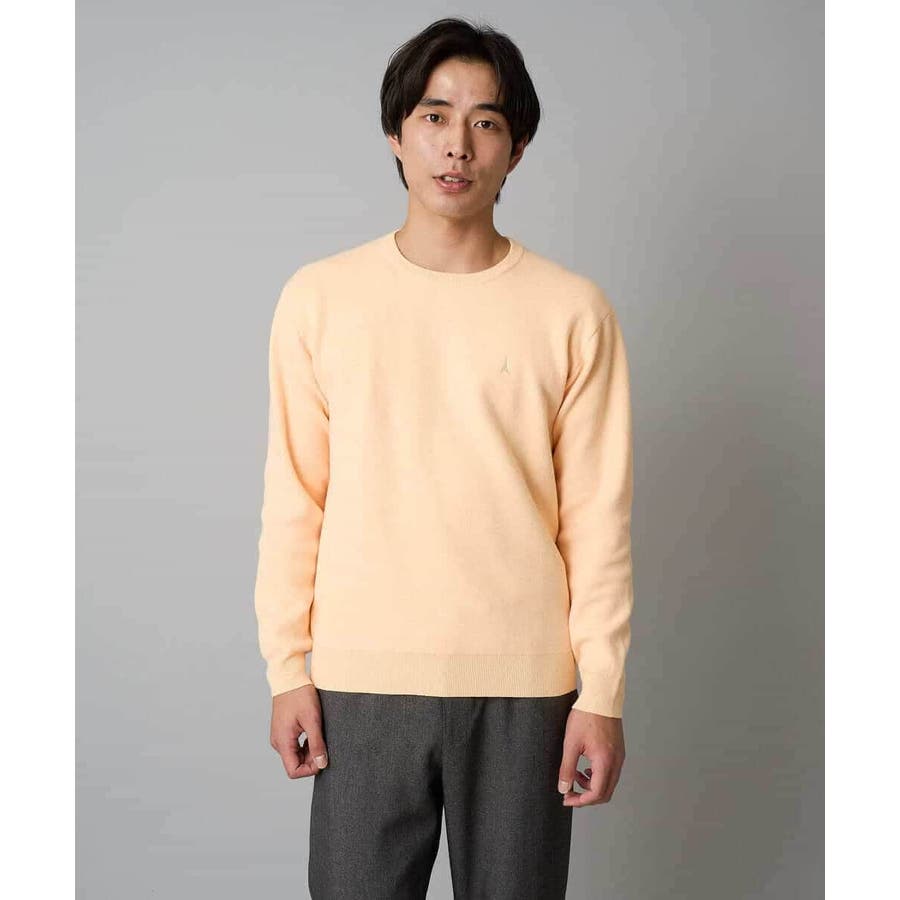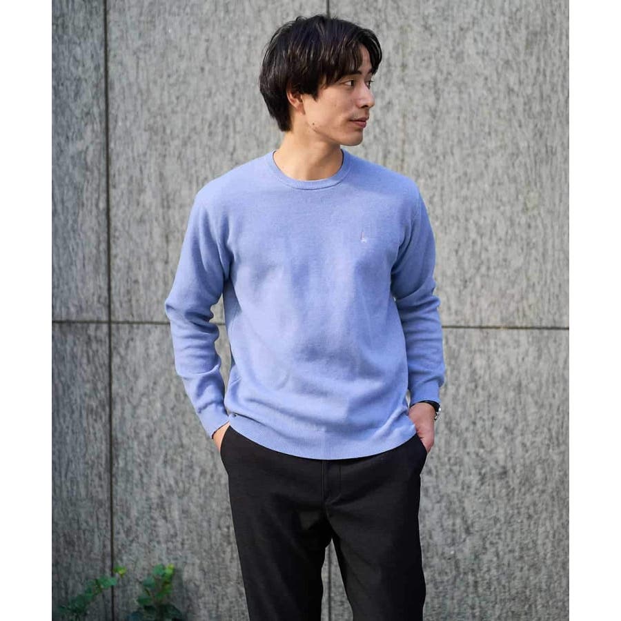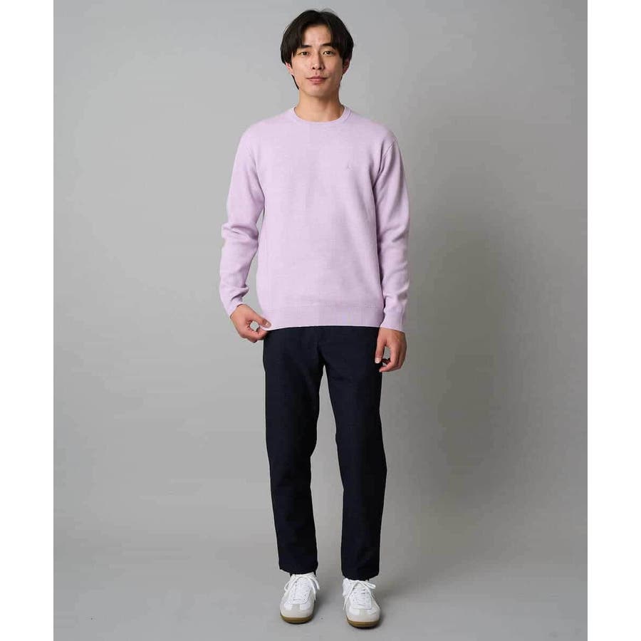 ジャカード編みで柔らかなカラーを表現したクルーネックニット。