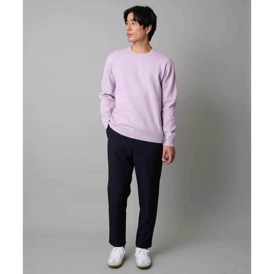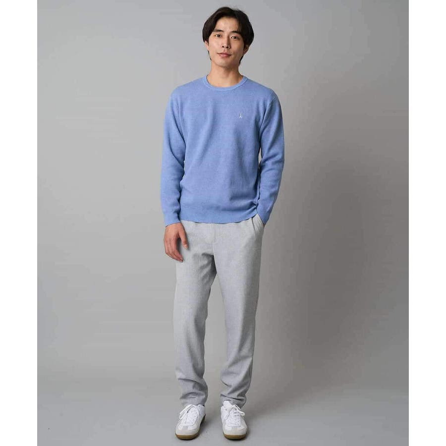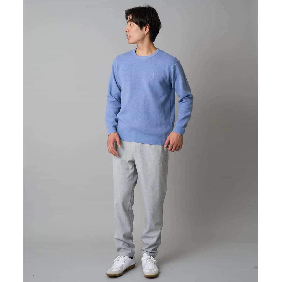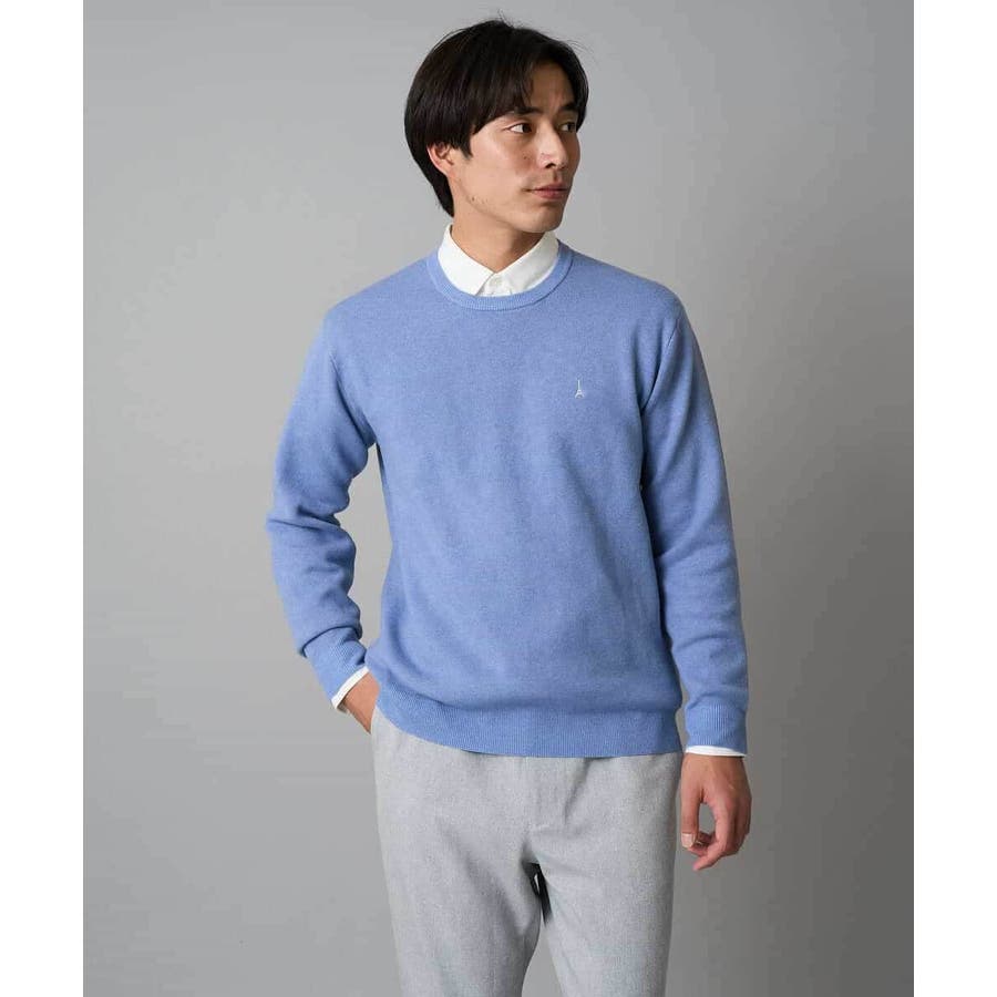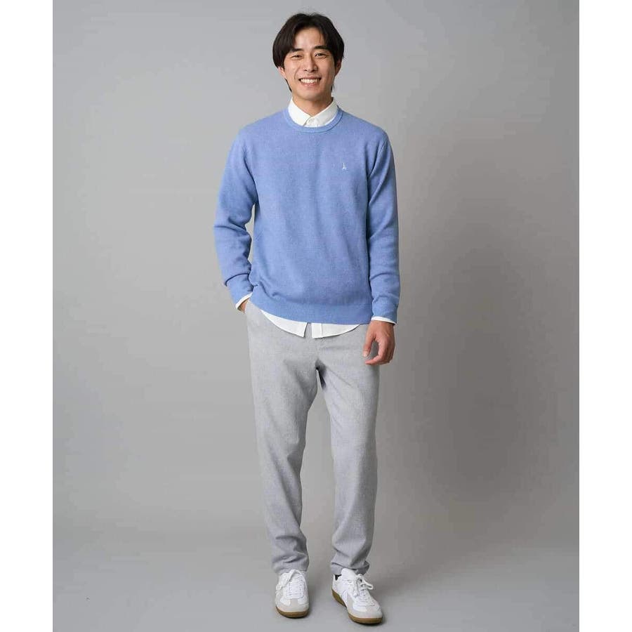 ジャカード編みで柔らかなカラーを表現したクルーネックニット。