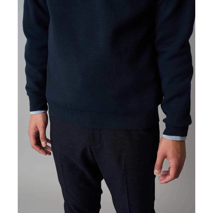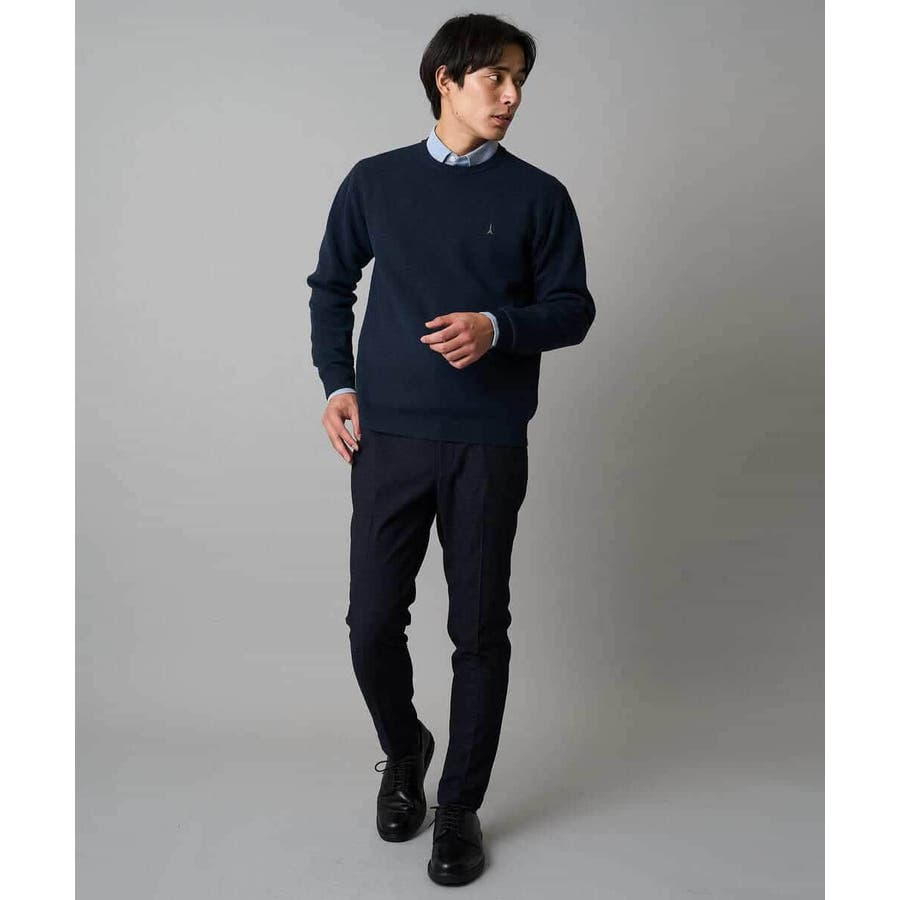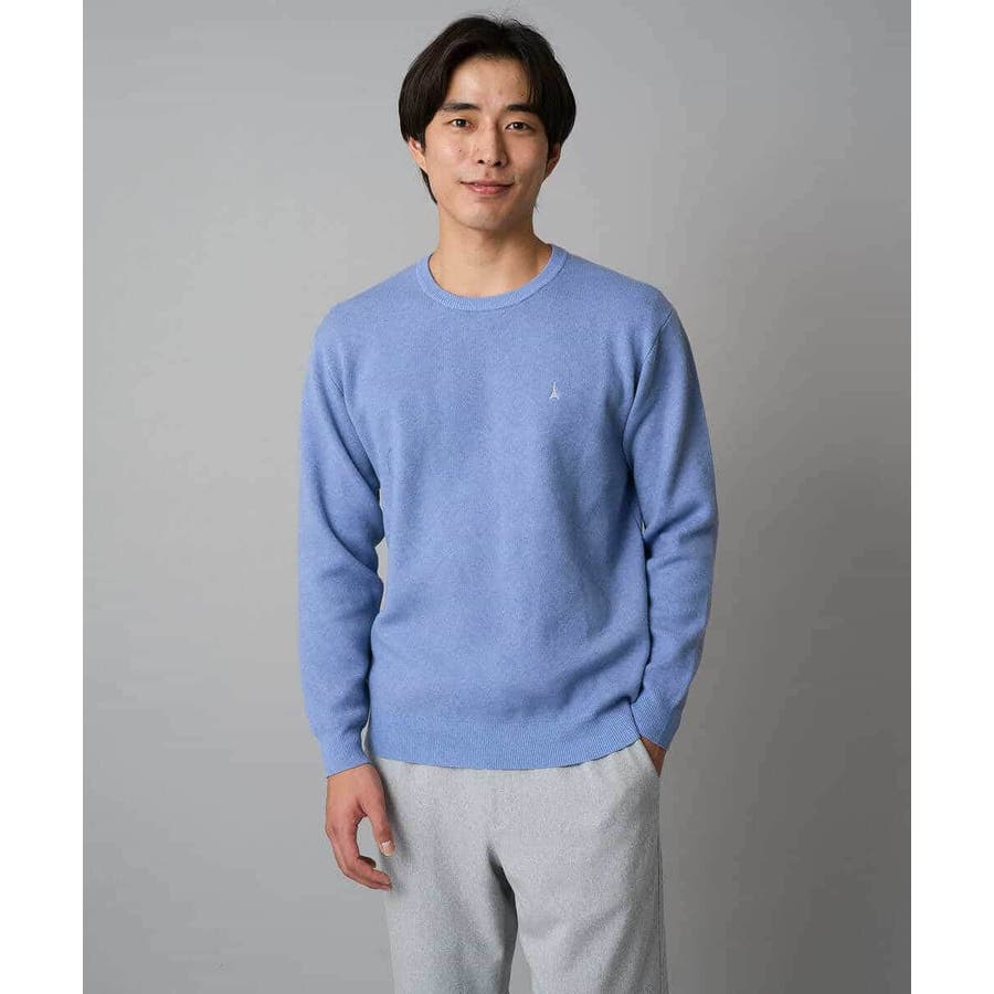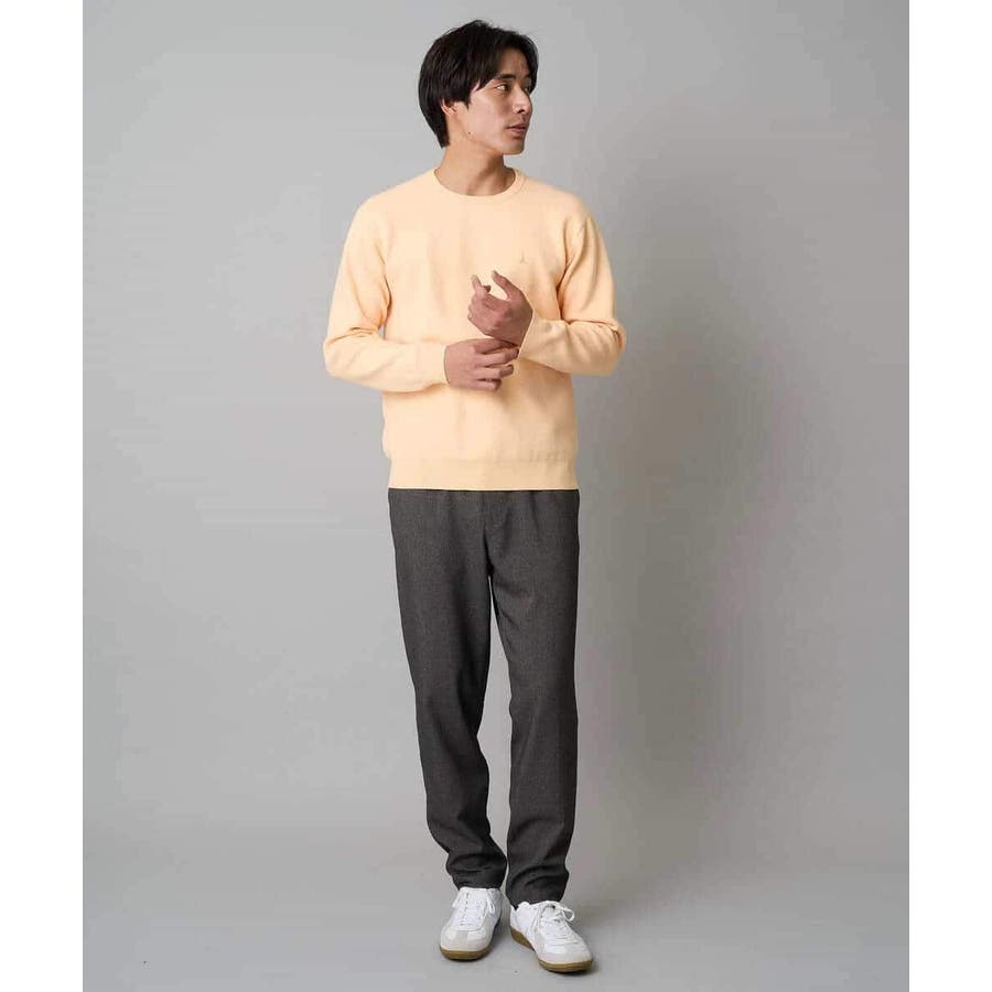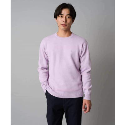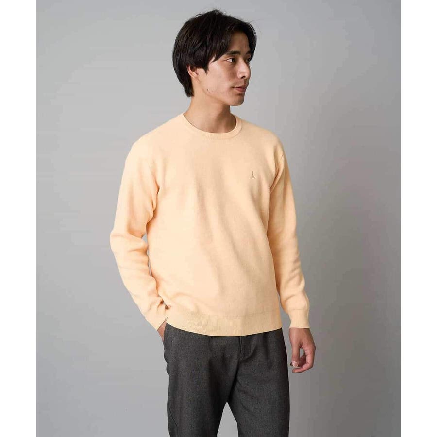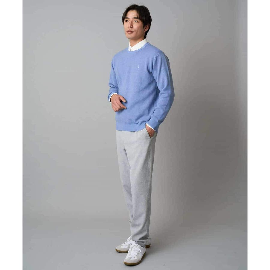 ジャカード編みで柔らかなカラーを表現したクルーネックニット。