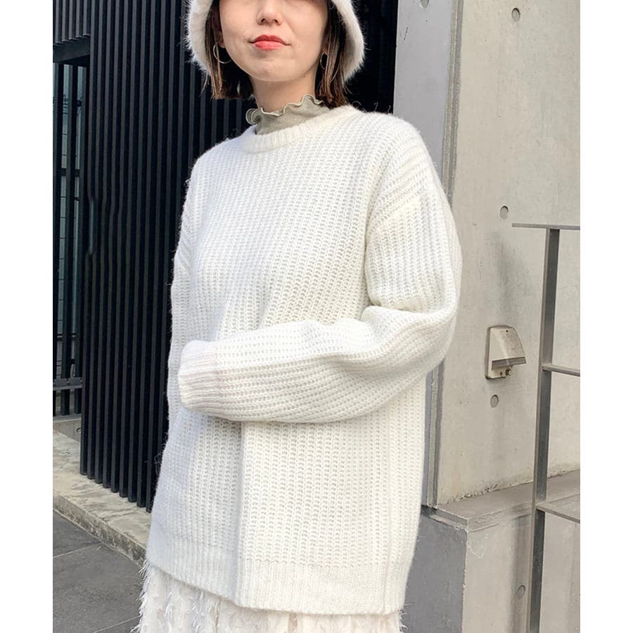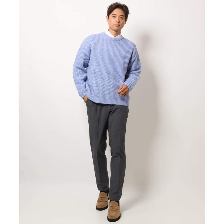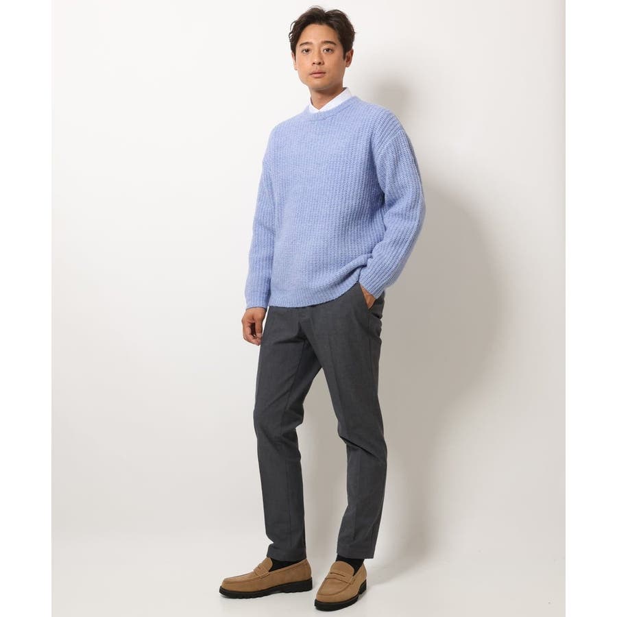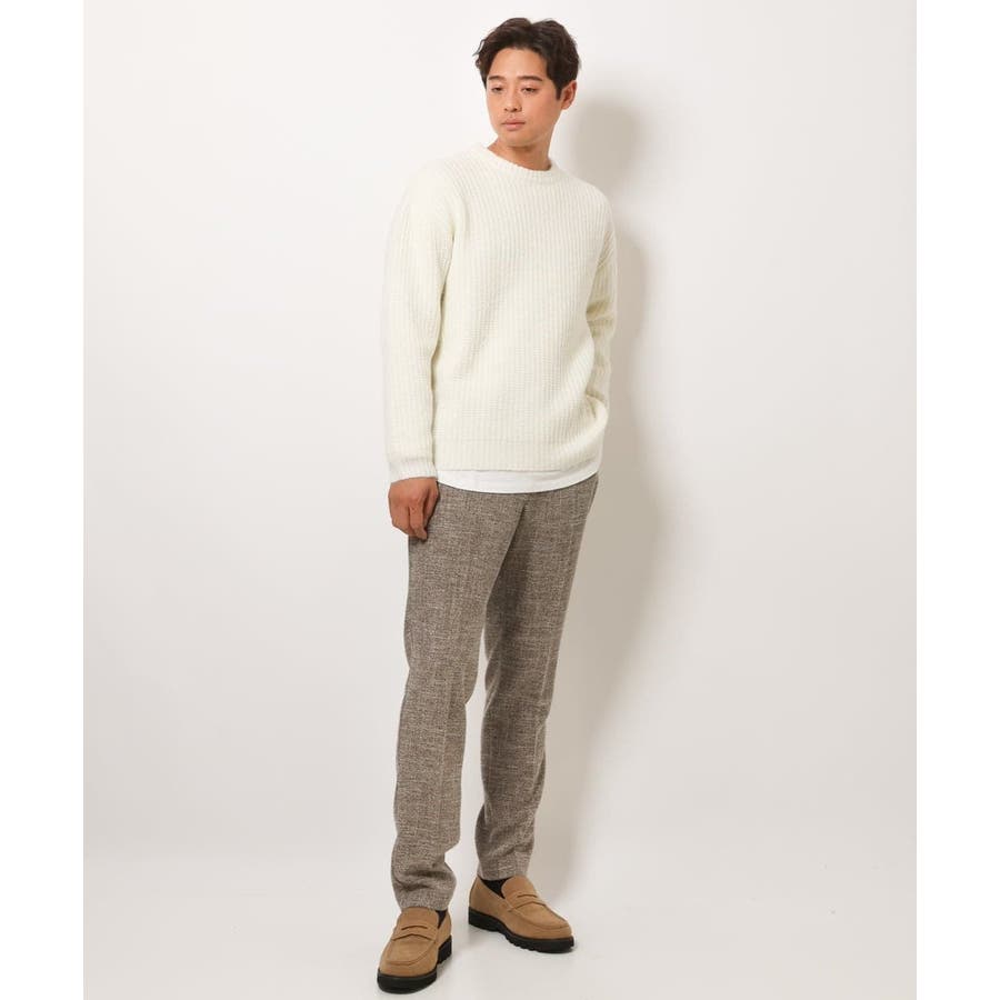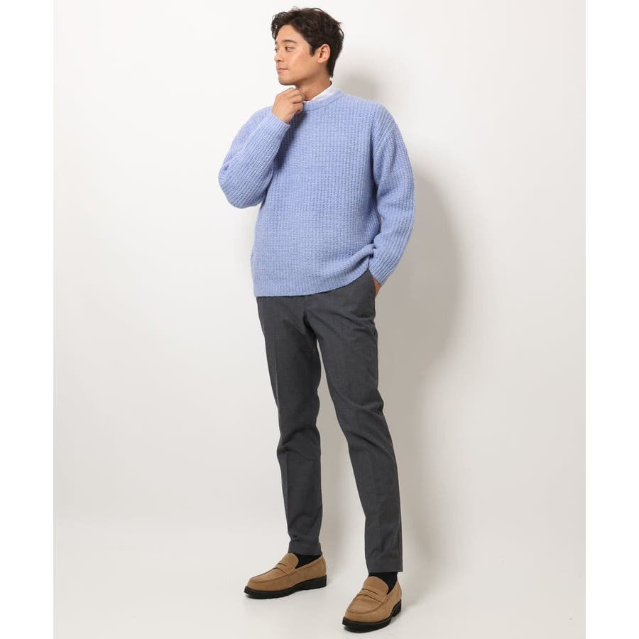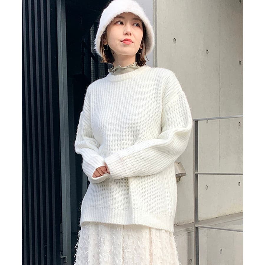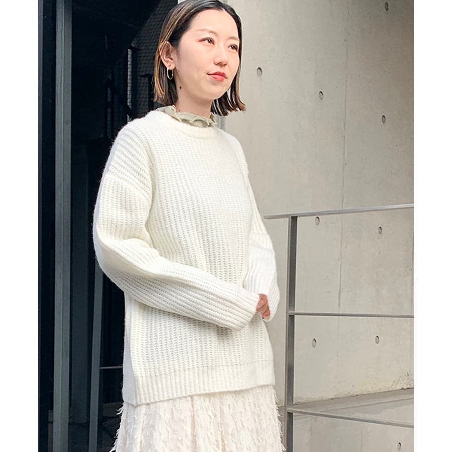 アウターはダウンブルゾンでもウールコートでも合わせられる汎用性の高いニットです。