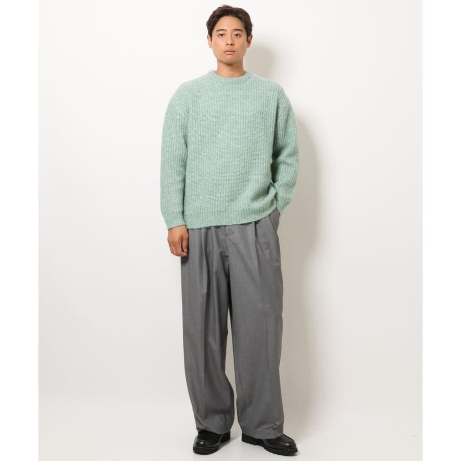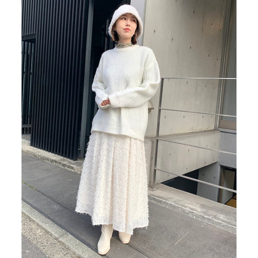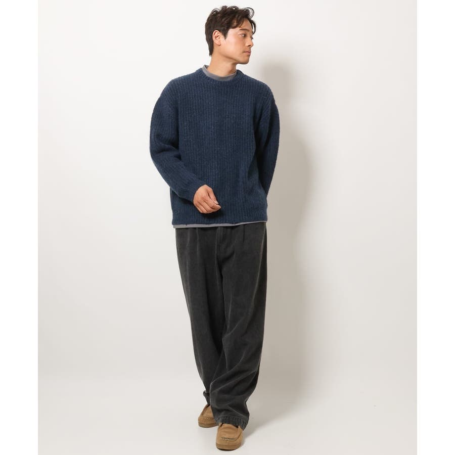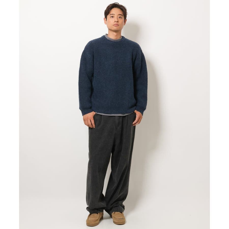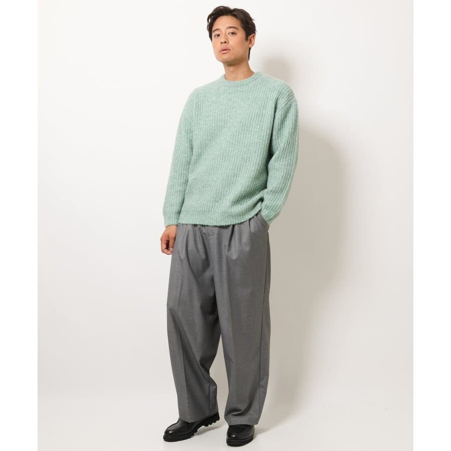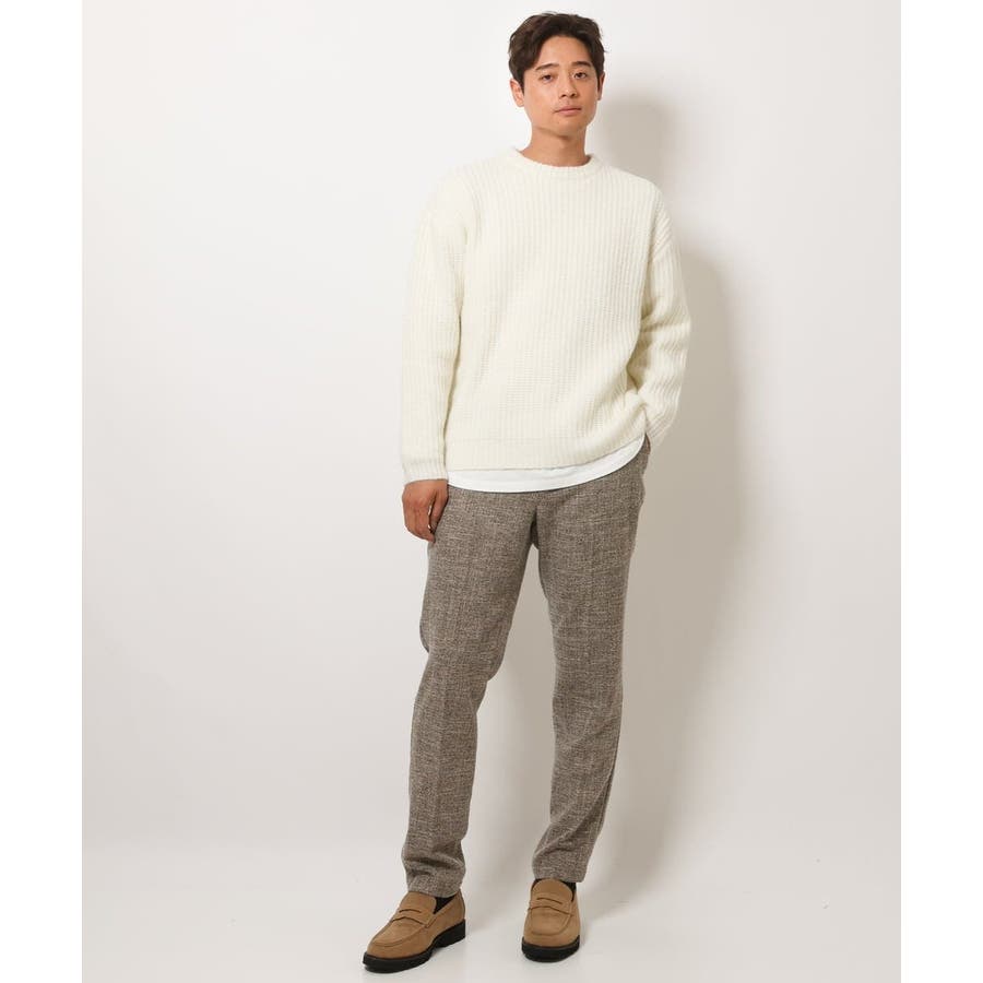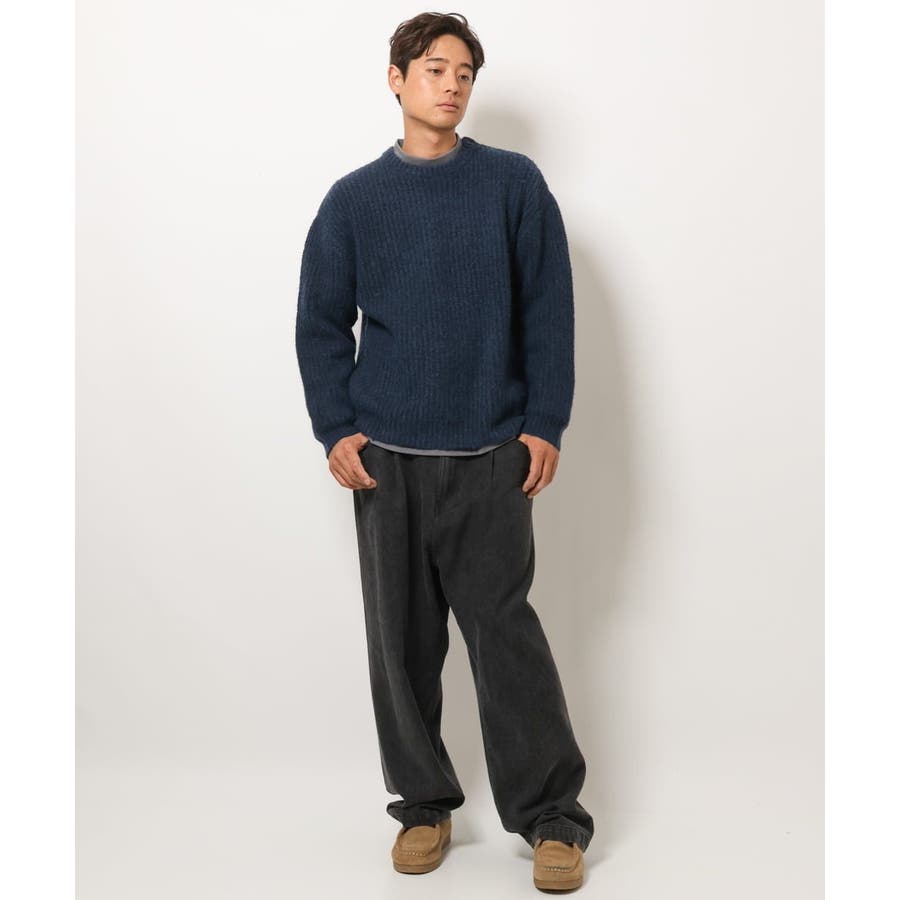 アウターはダウンブルゾンでもウールコートでも合わせられる汎用性の高いニットです。