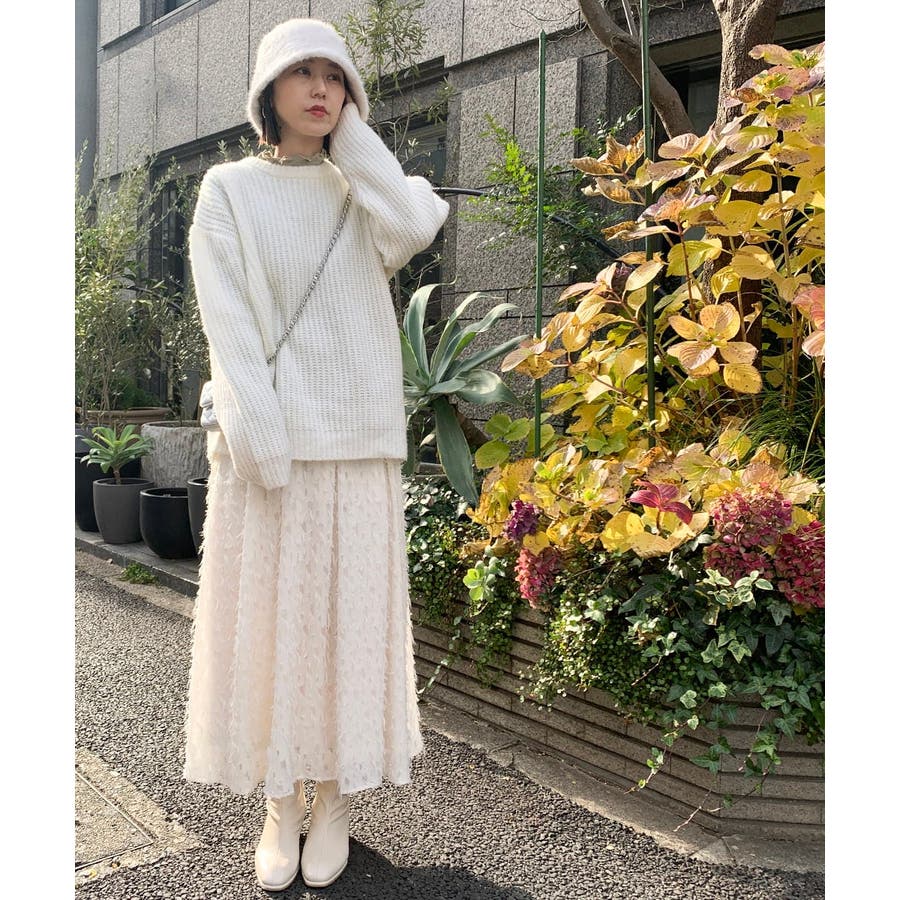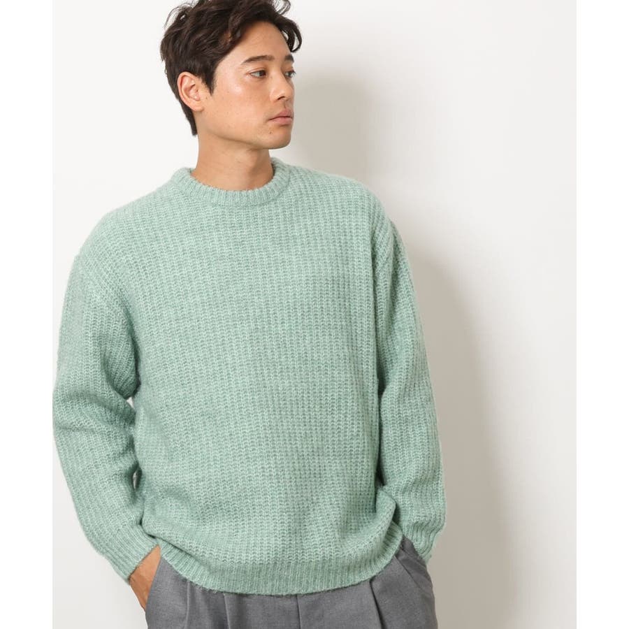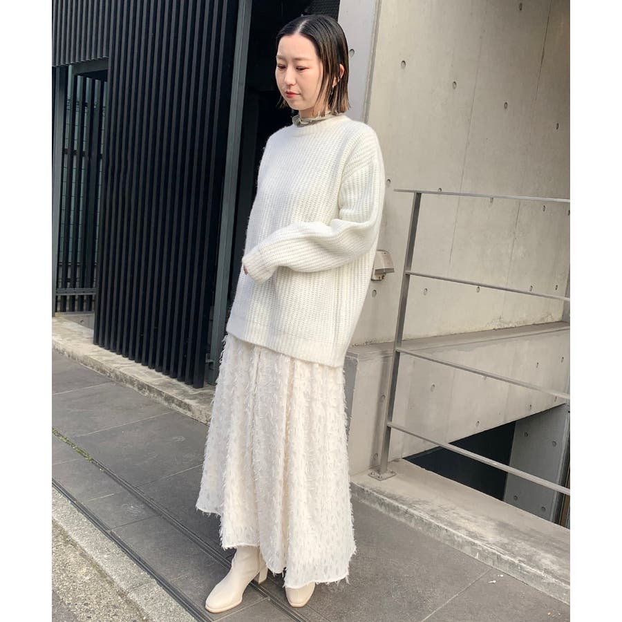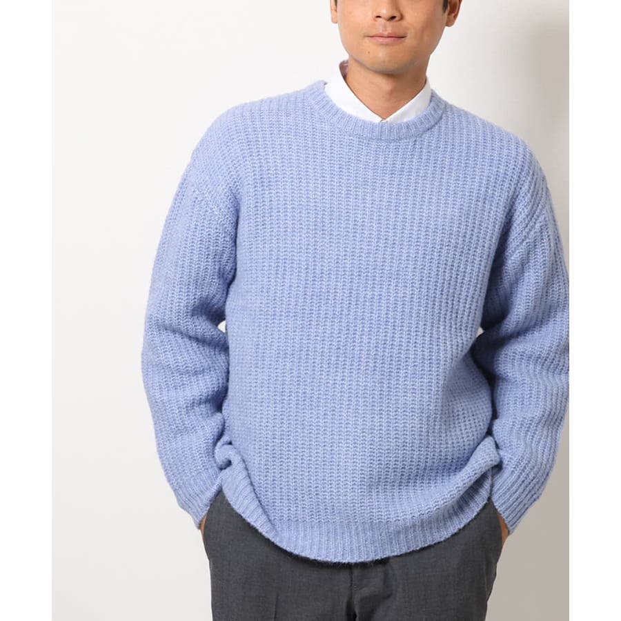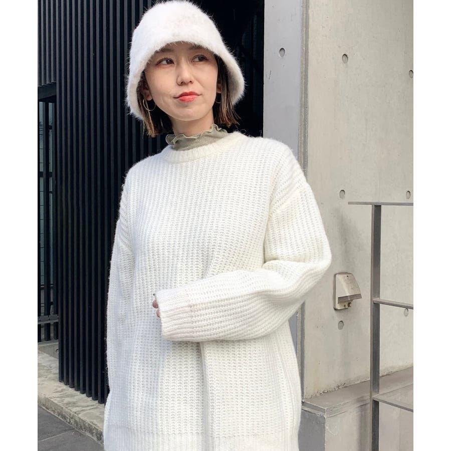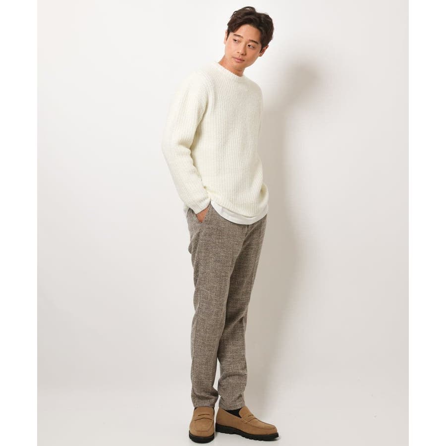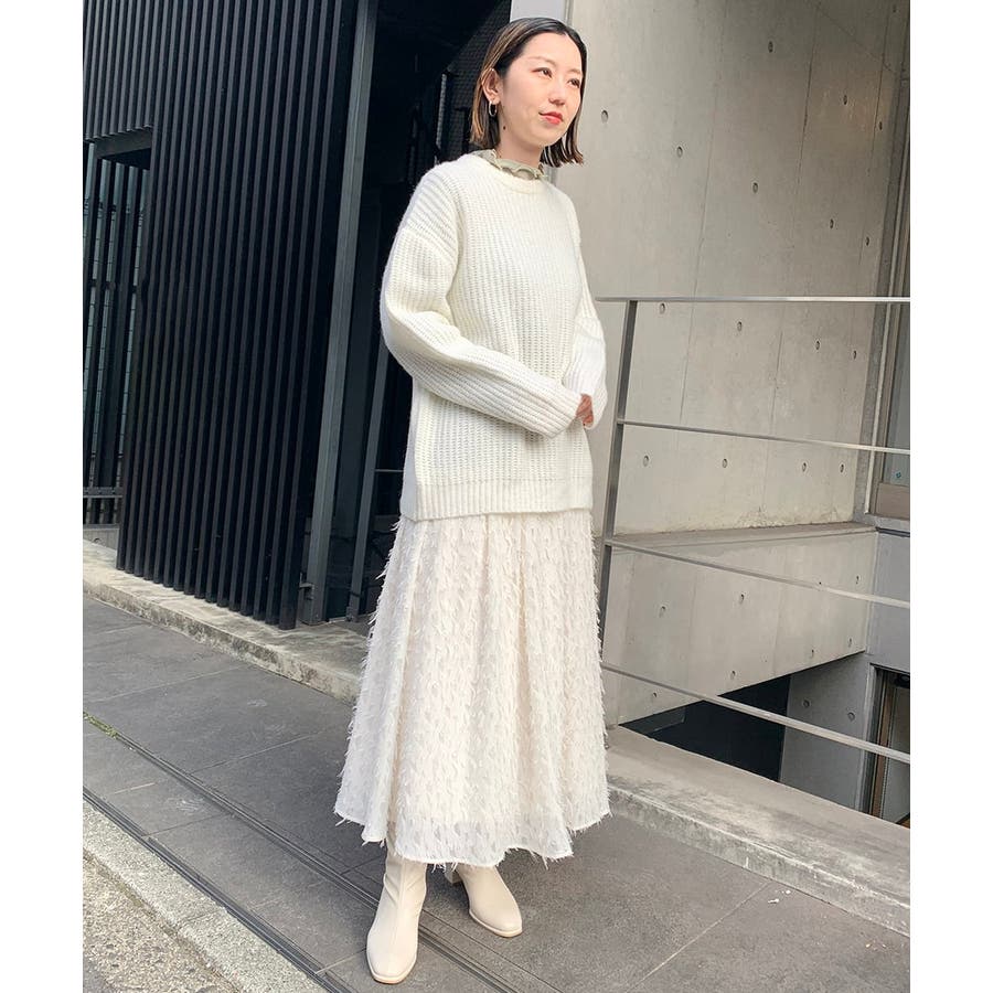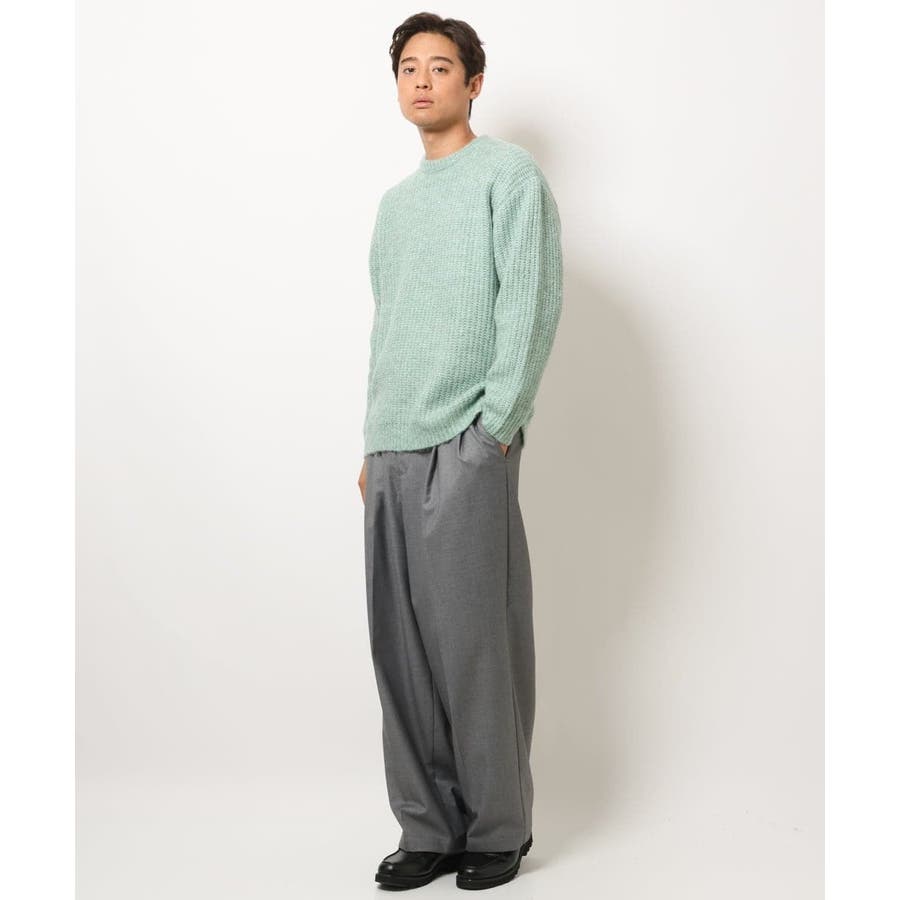 アウターはダウンブルゾンでもウールコートでも合わせられる汎用性の高いニットです。