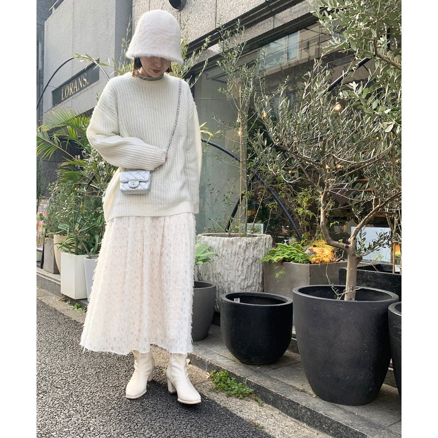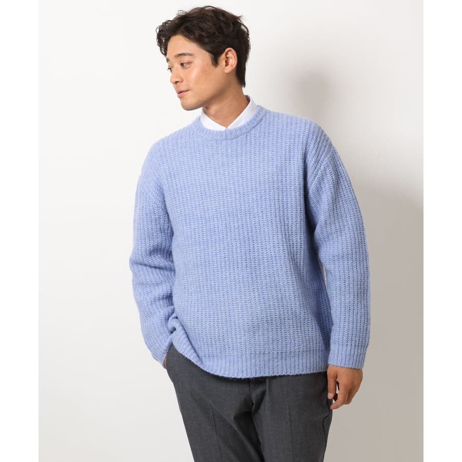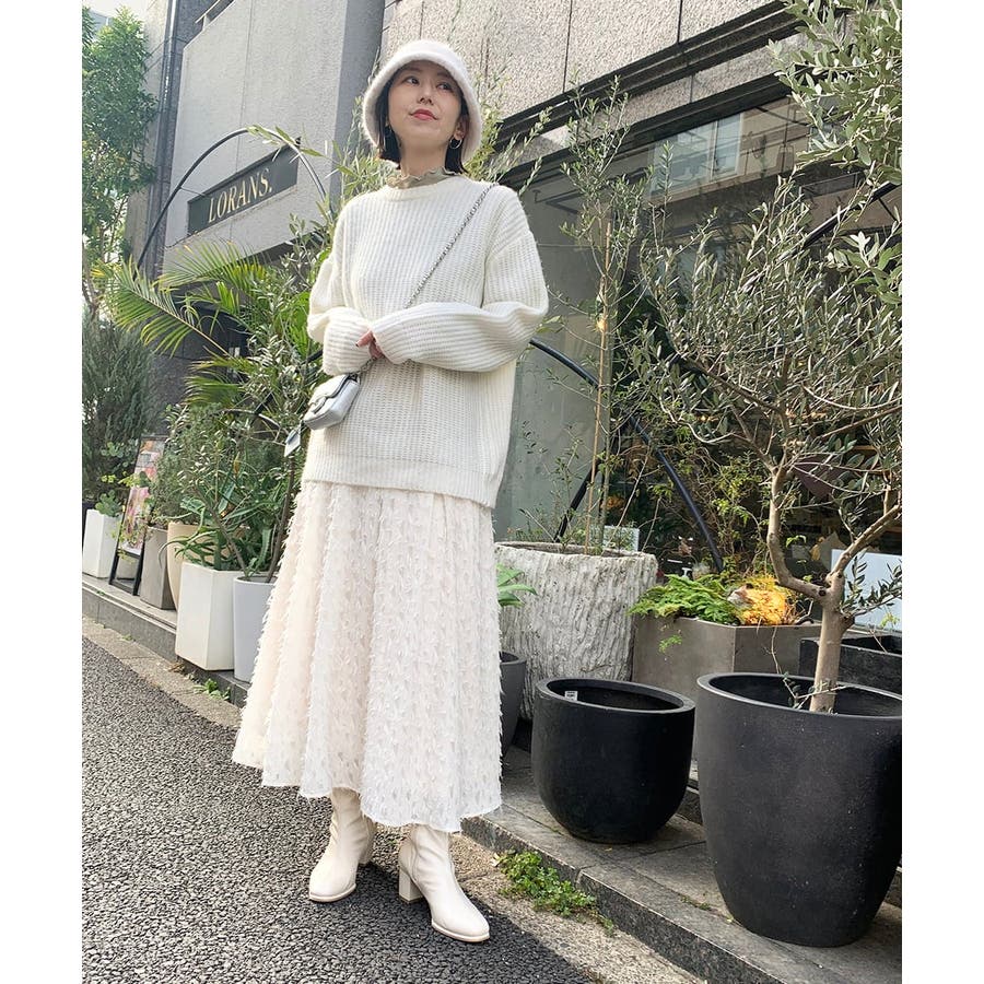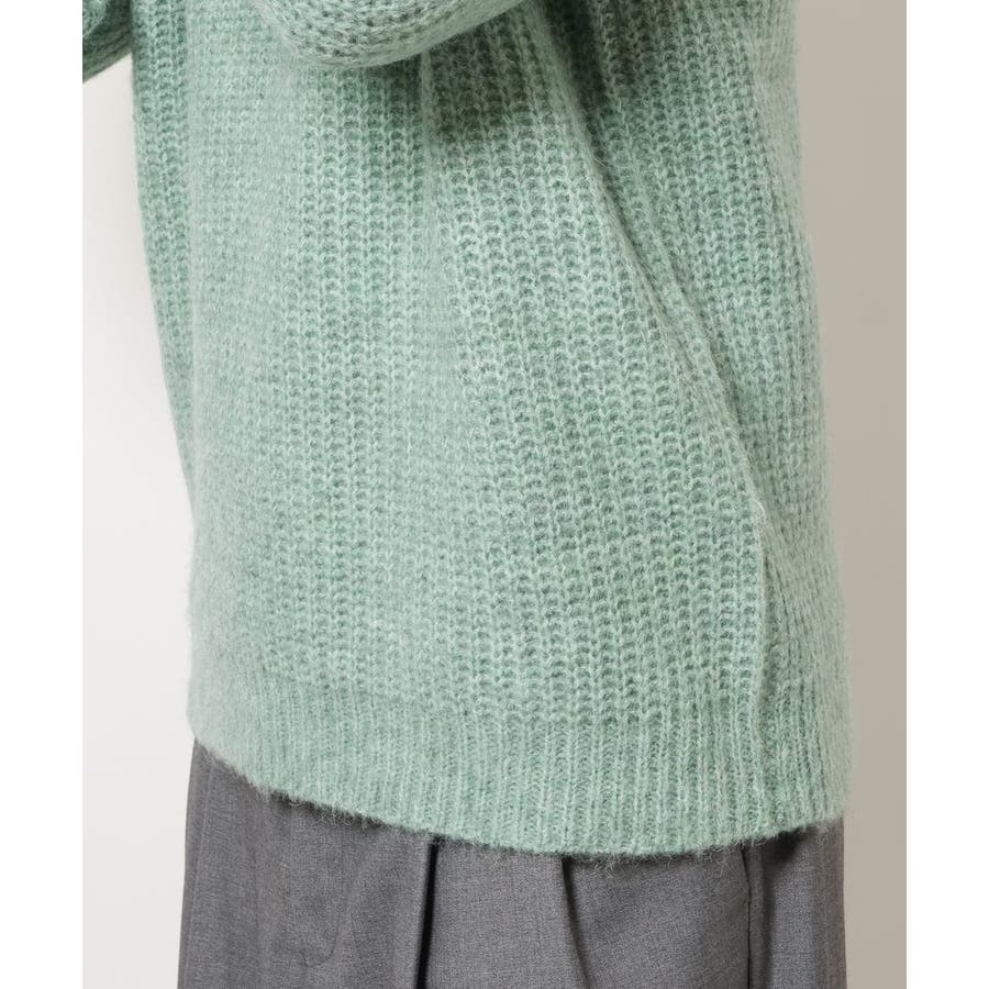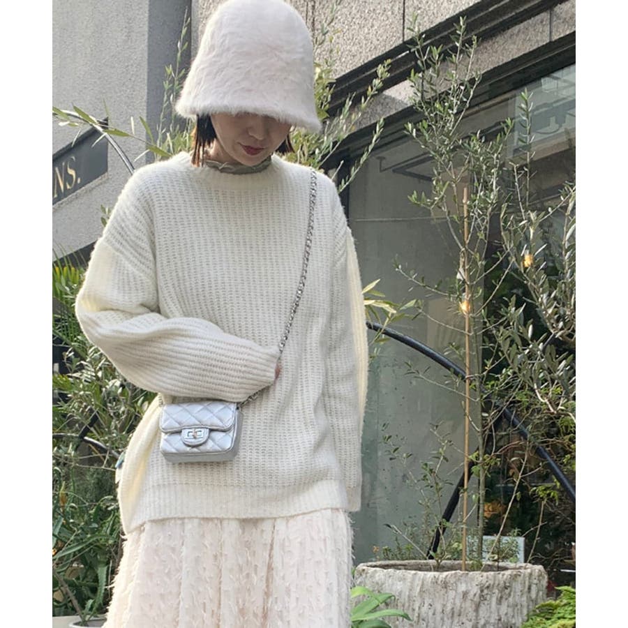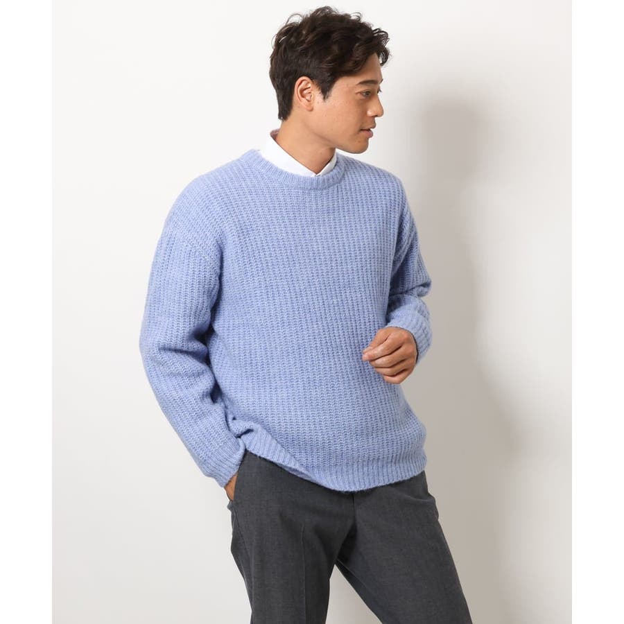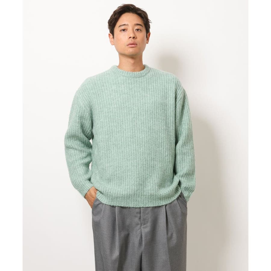 アウターはダウンブルゾンでもウールコートでも合わせられる汎用性の高いニットです。