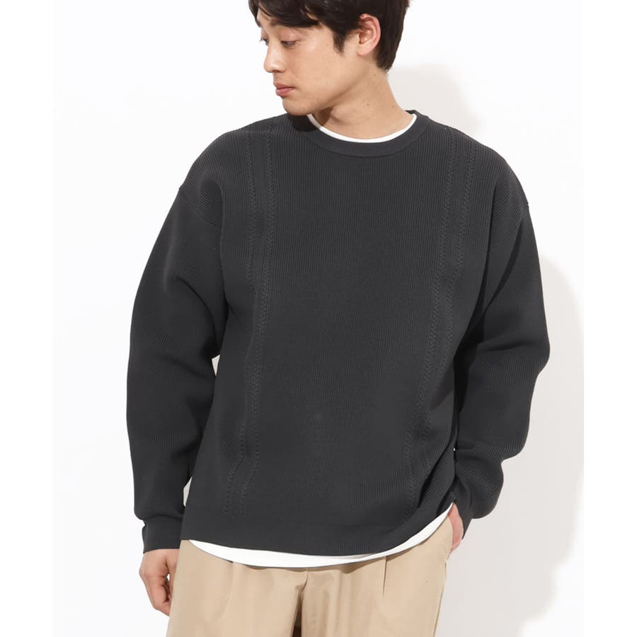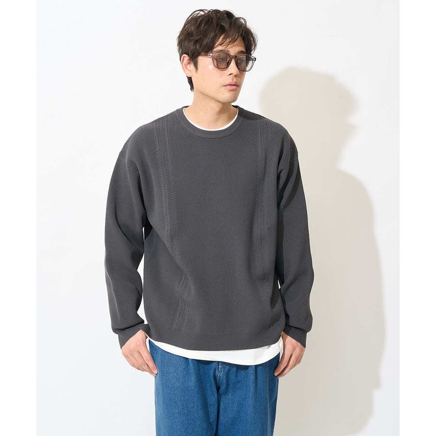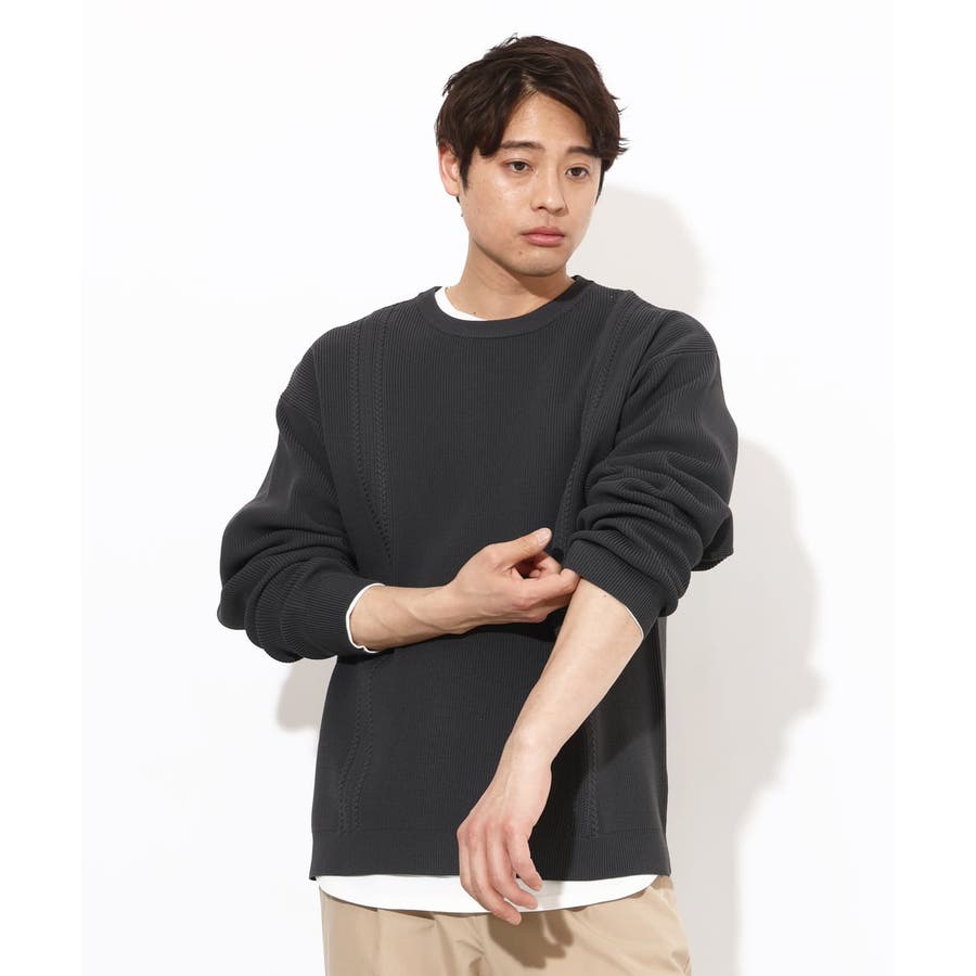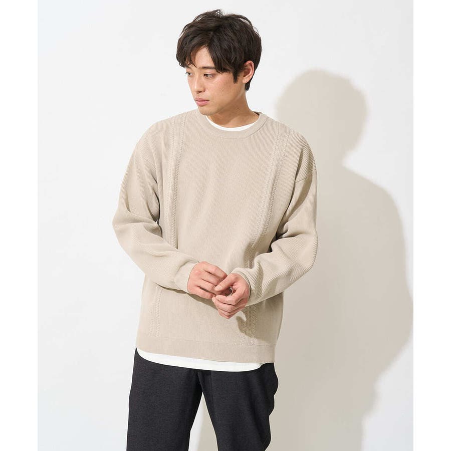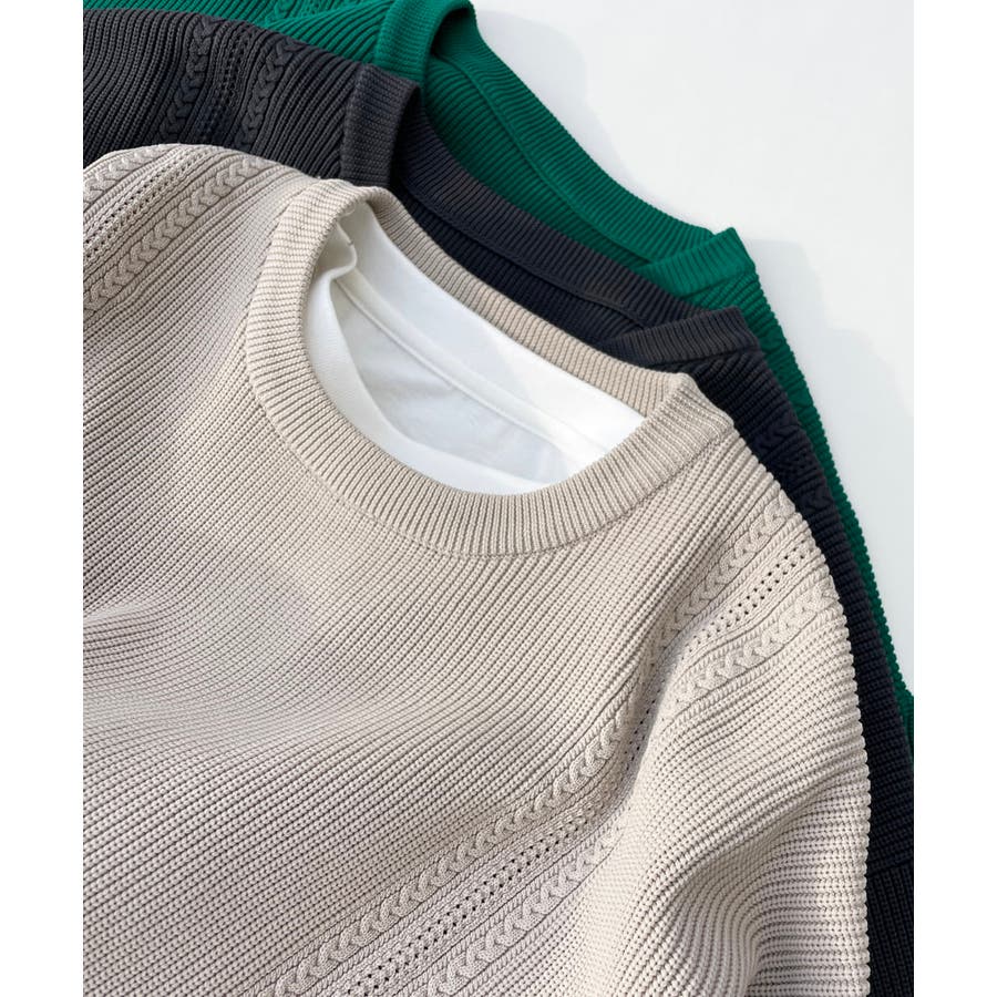 【ニット+カットソー2点セット】アゼ編クルーネックニット