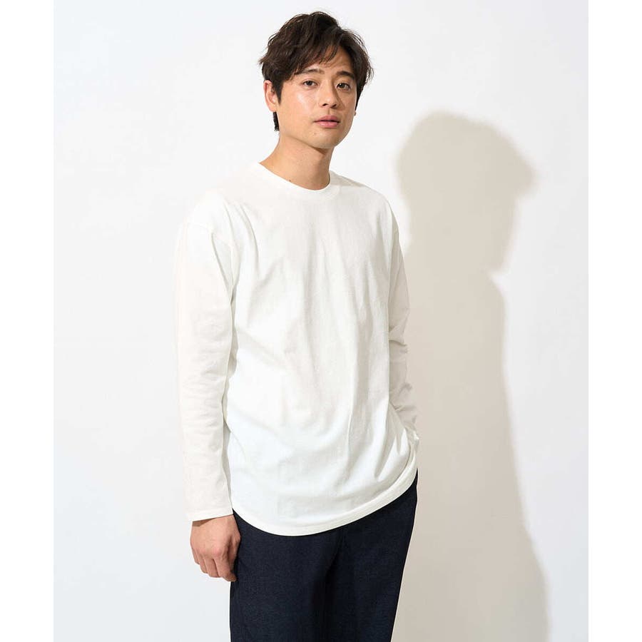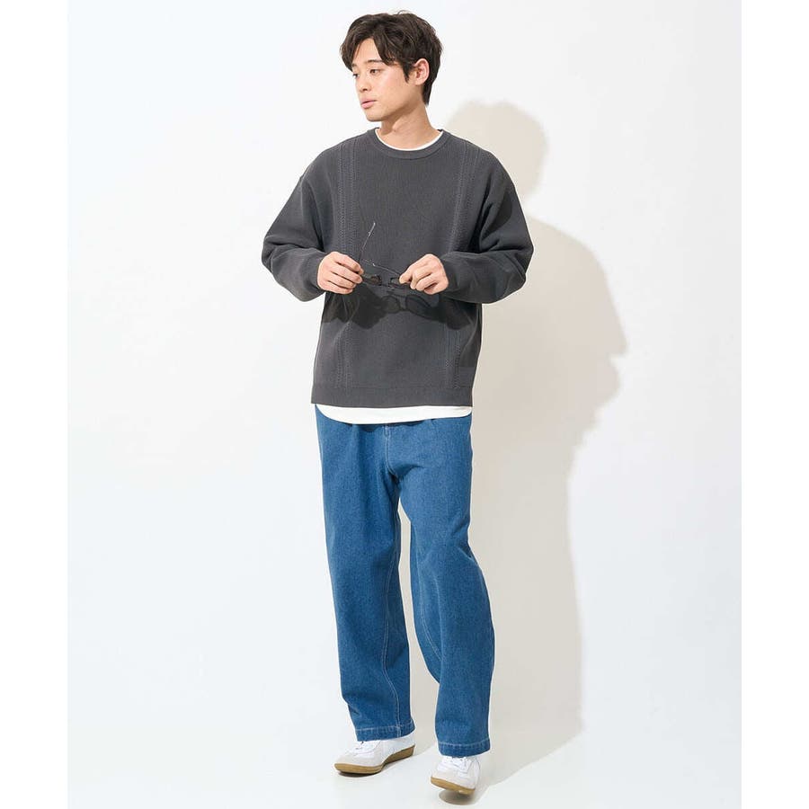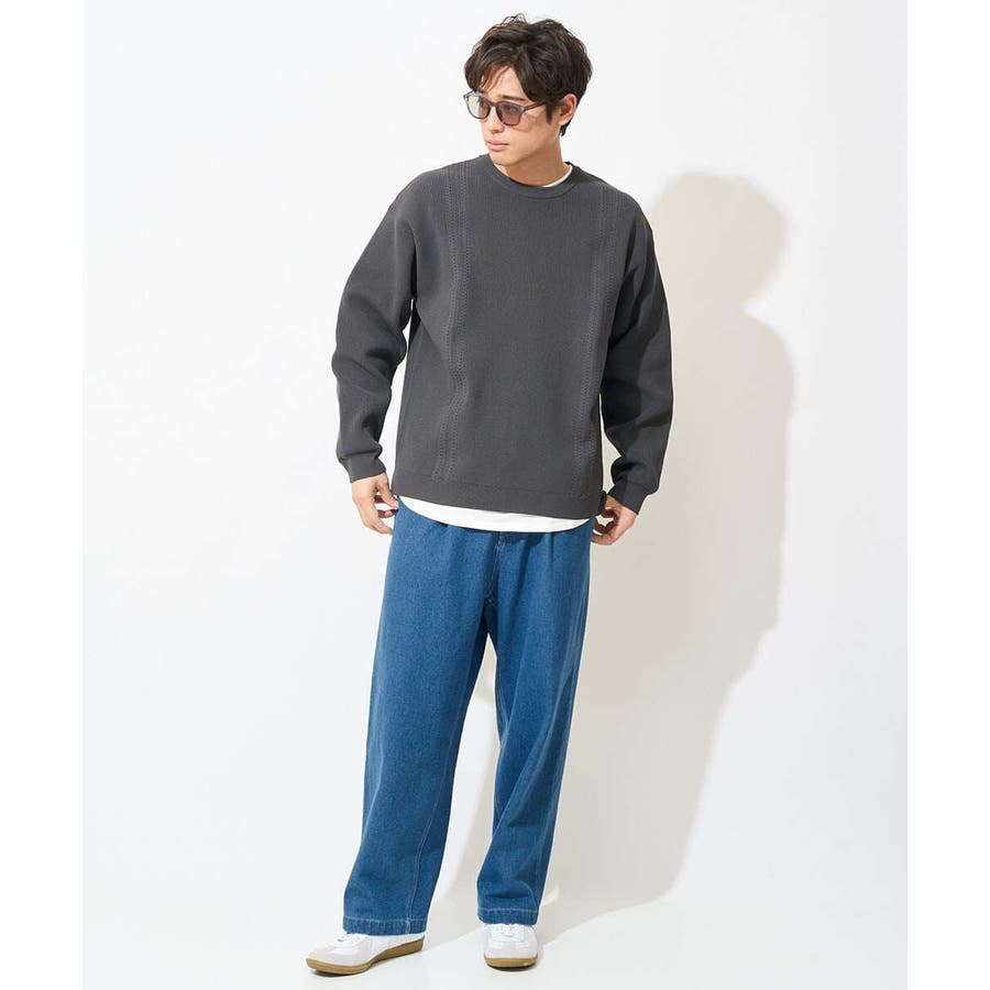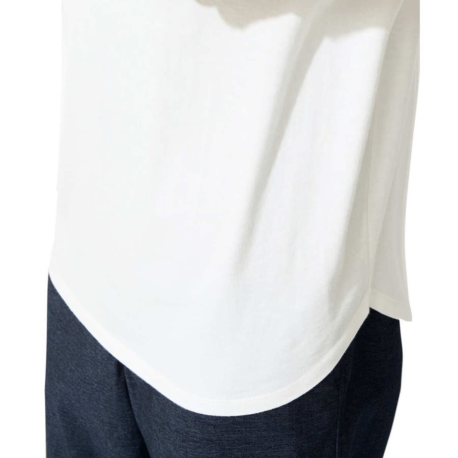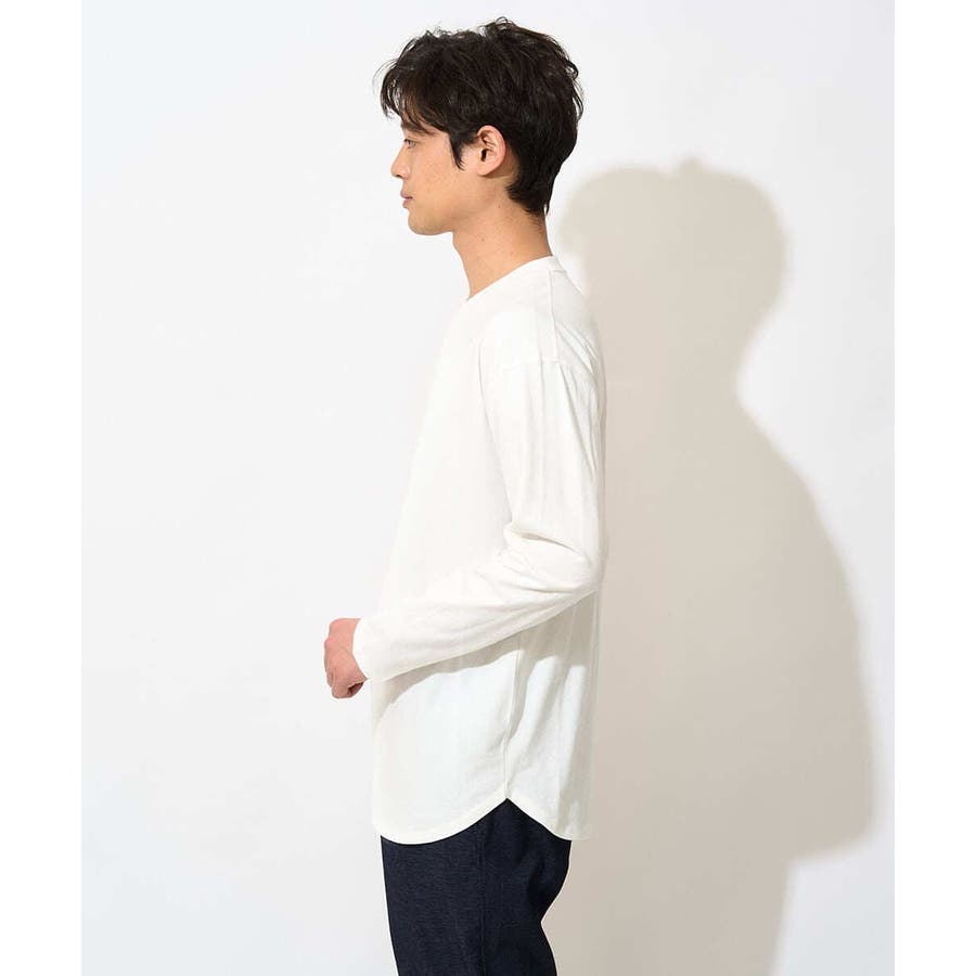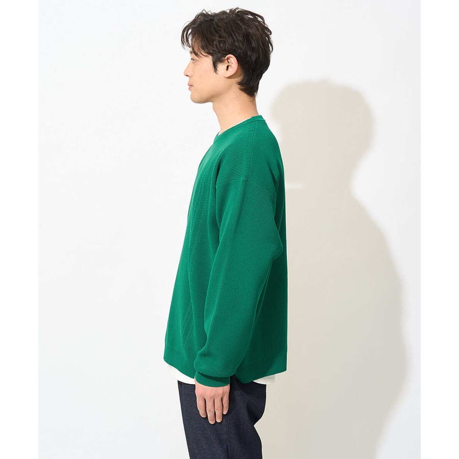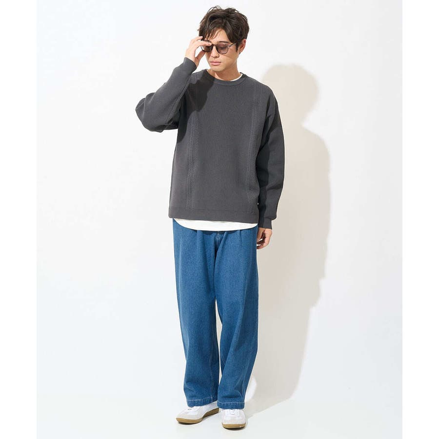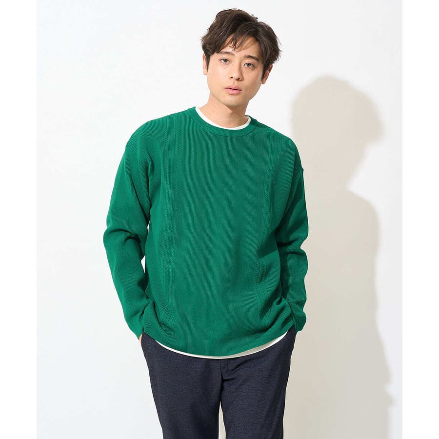 着回しやすいクルーネックデザインのため様々なアウターに合わせられ、インナーをモックネックカットソーやシャツに変えたレイヤードスタイルもオススメです。