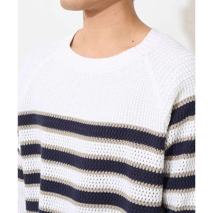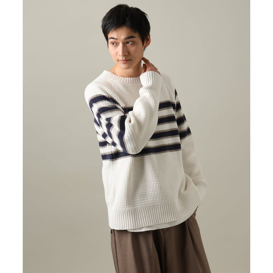 ◆【洗濯機で洗える】表面感のあるタック編みで表現したパネルボーダーニット◆
