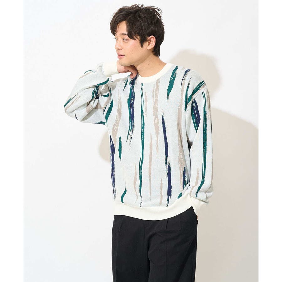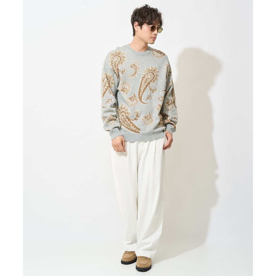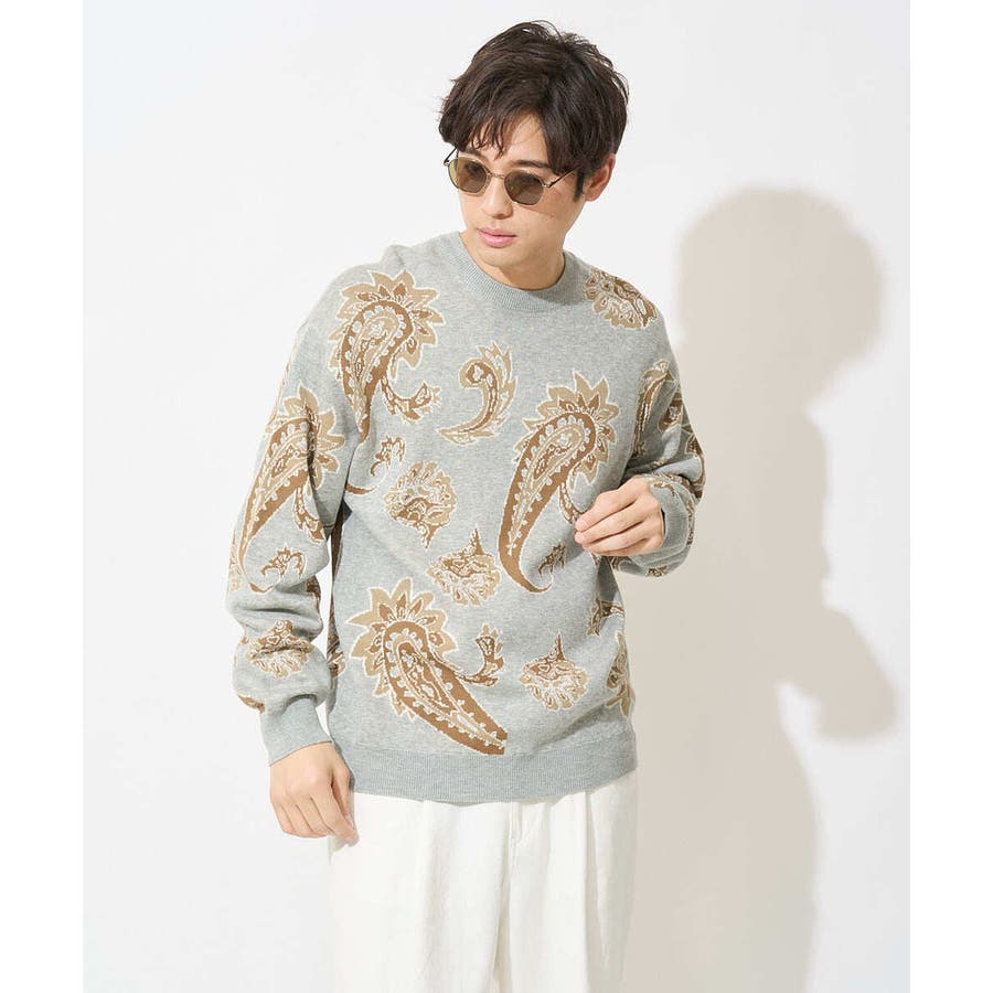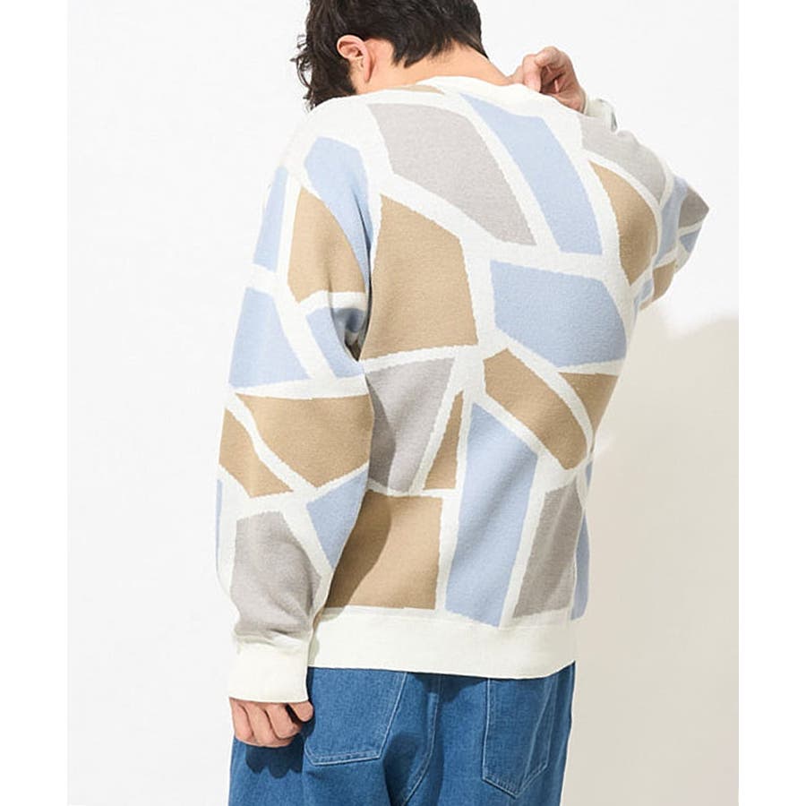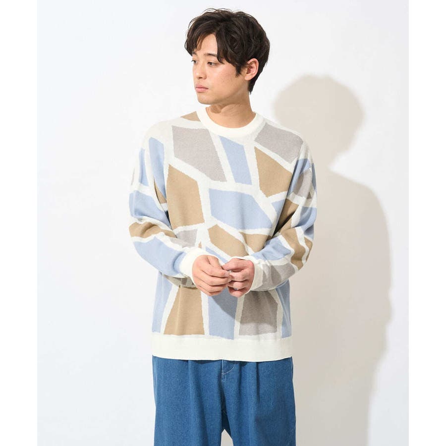 インパクトのある総柄を大胆にニットで表現したジャカードクルーニット。シルエットはゆとりのあるワイドシルエットでこなれ感を演出できます。