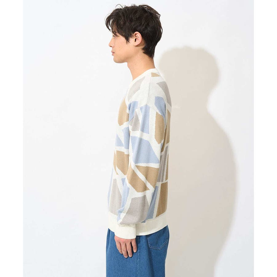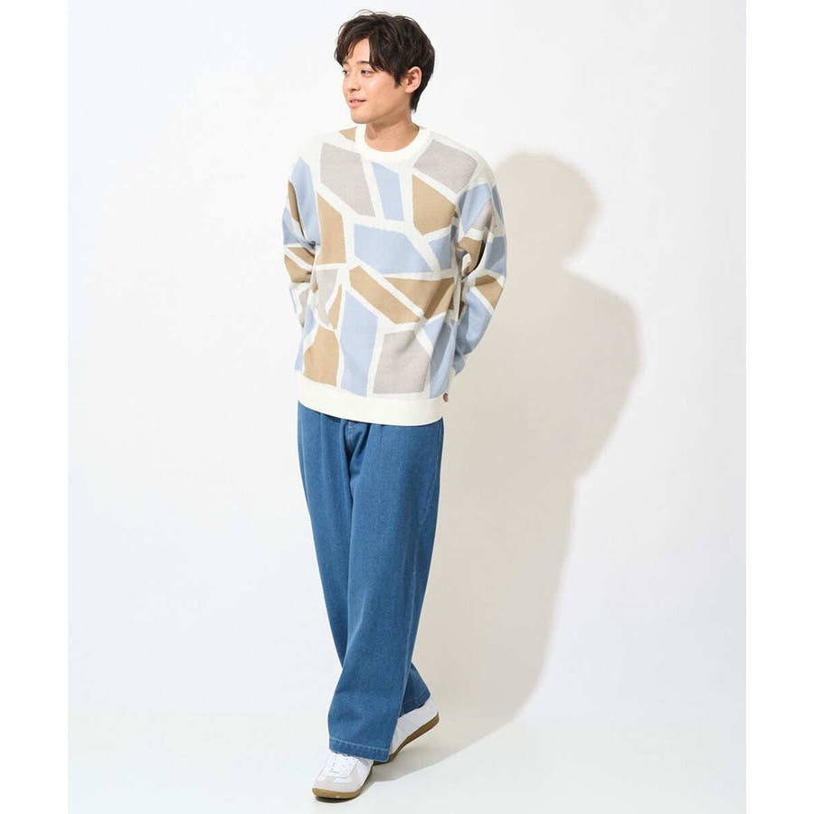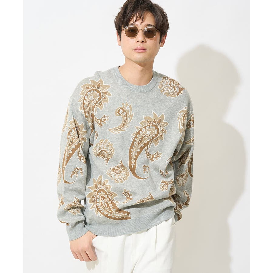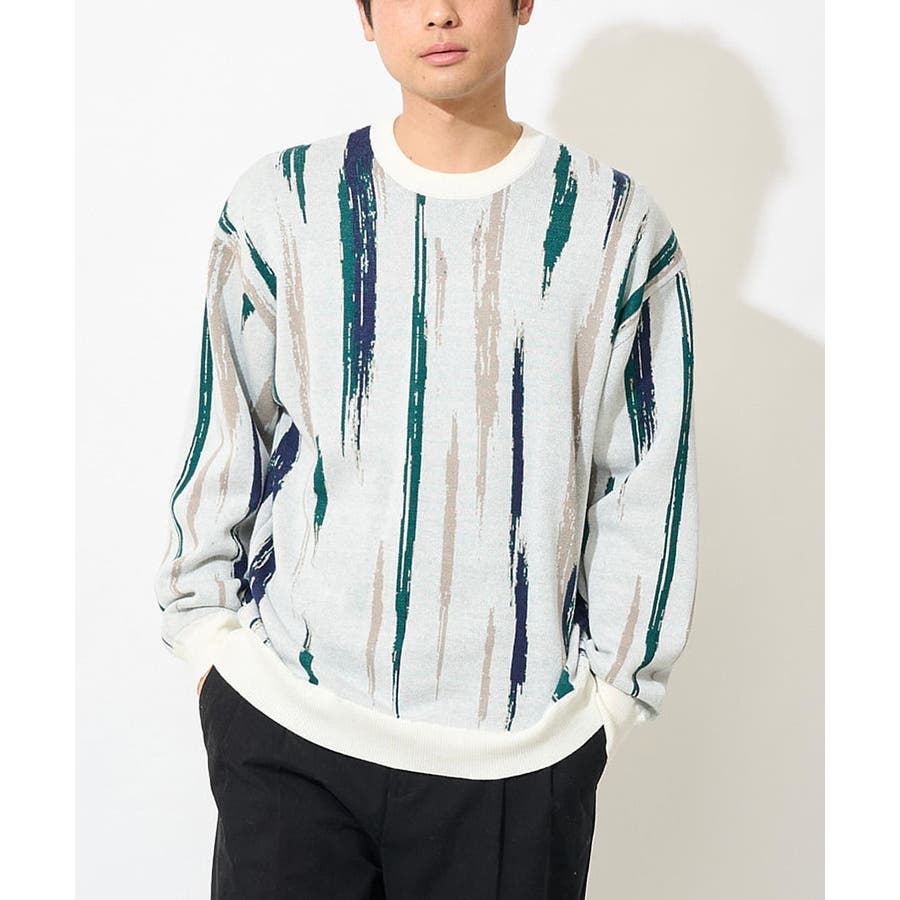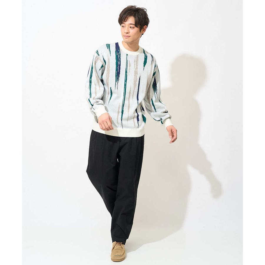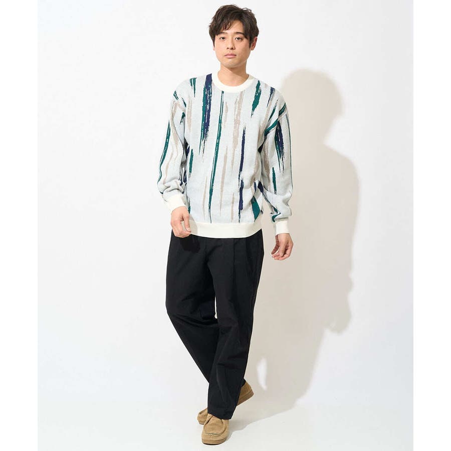 インパクトのある総柄を大胆にニットで表現したジャカードクルーニット。シルエットはゆとりのあるワイドシルエットでこなれ感を演出できます。
