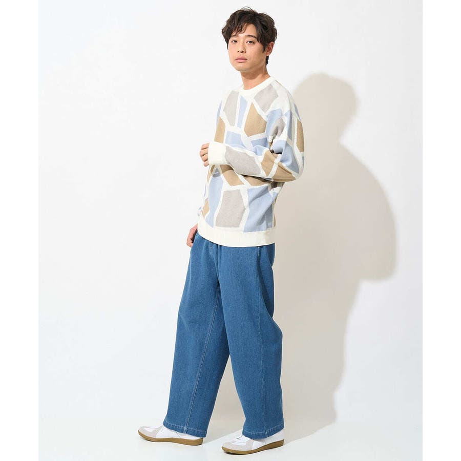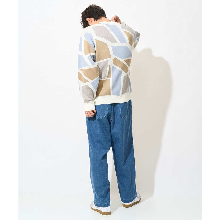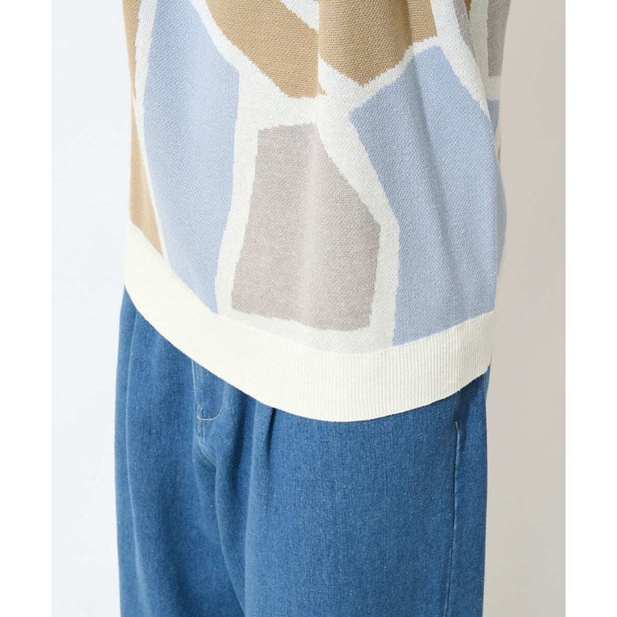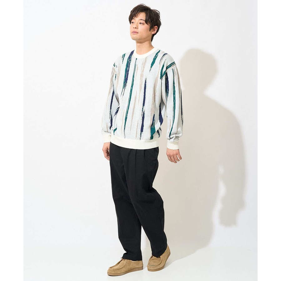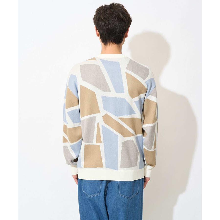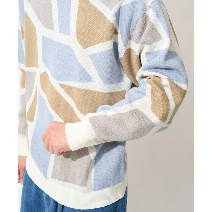 インパクトのある総柄を大胆にニットで表現したジャカードクルーニット。シルエットはゆとりのあるワイドシルエットでこなれ感を演出できます。