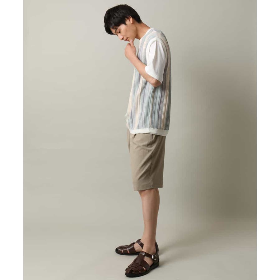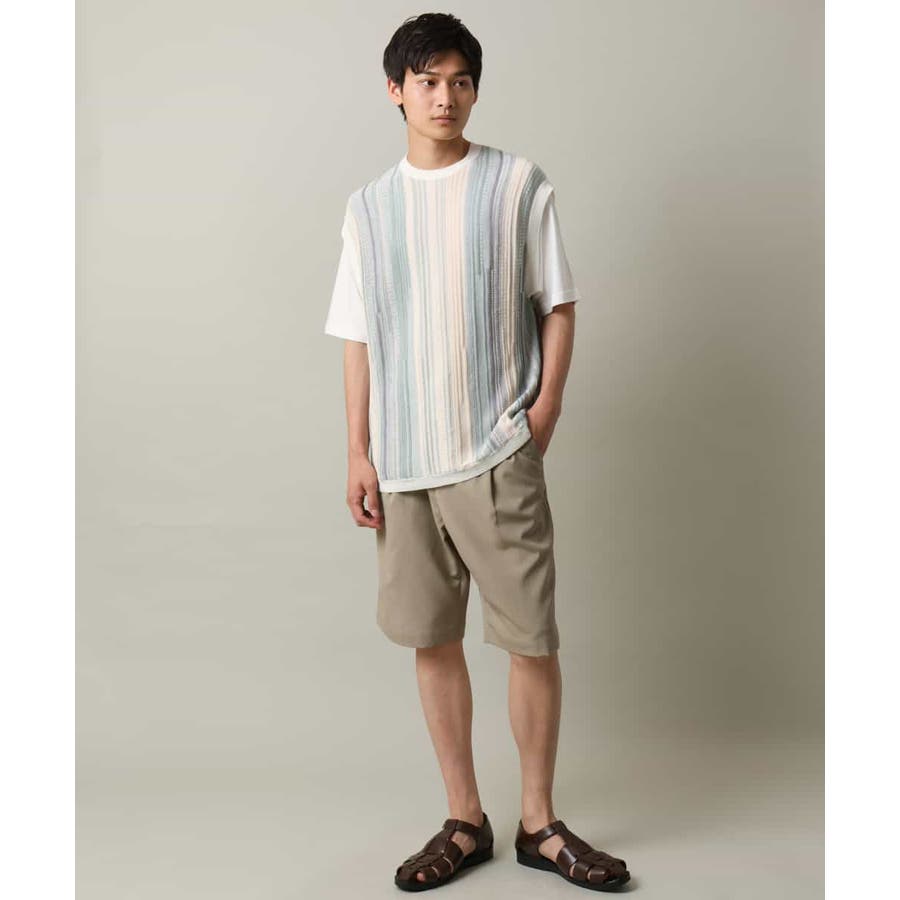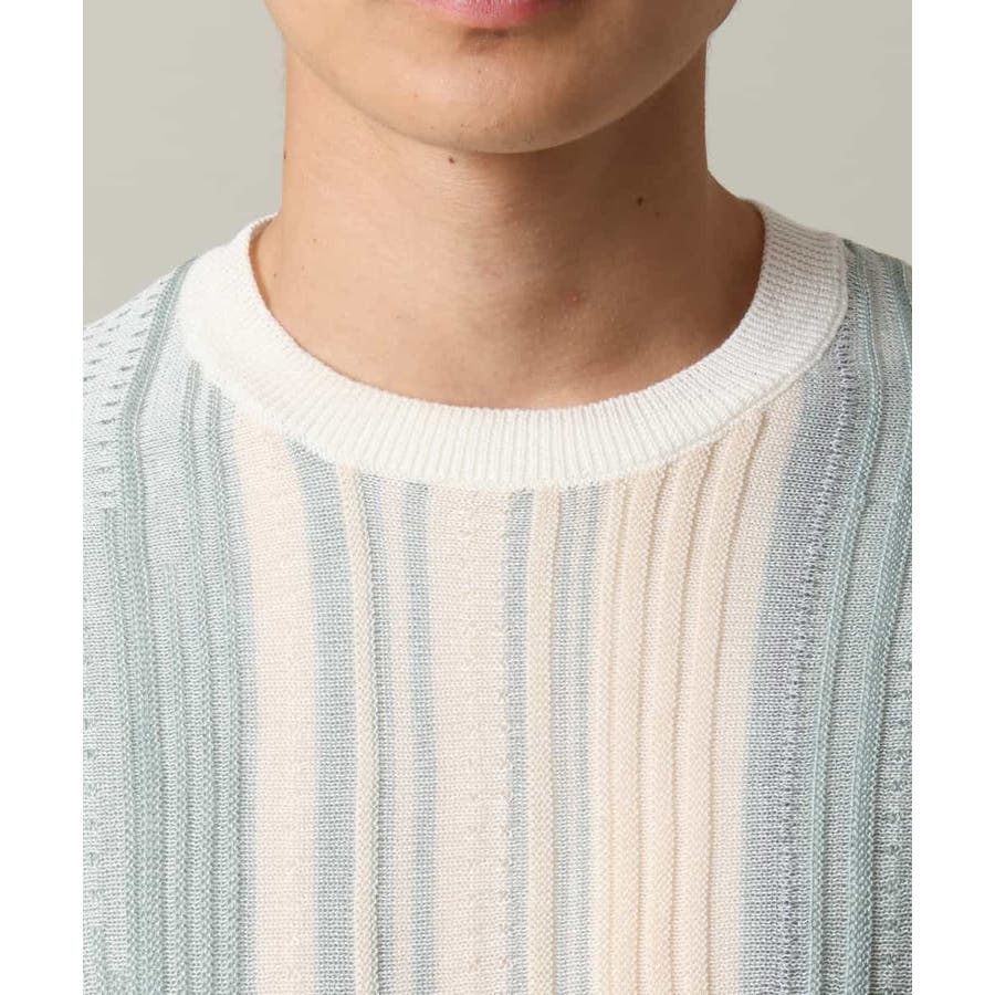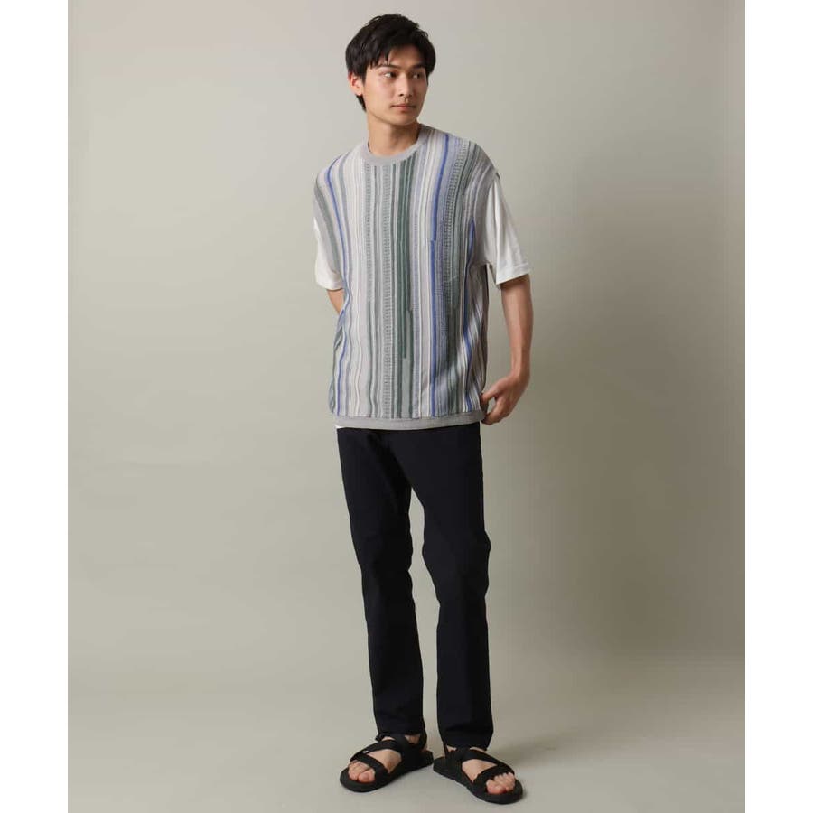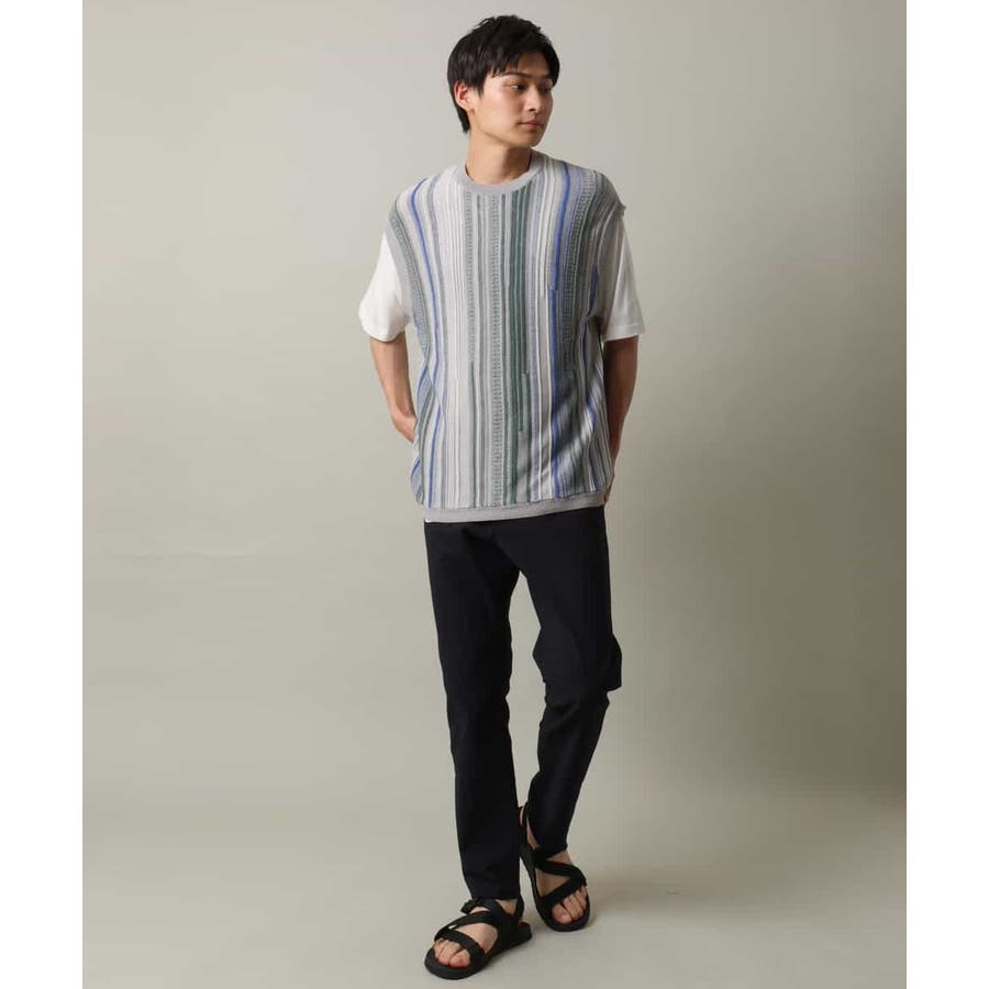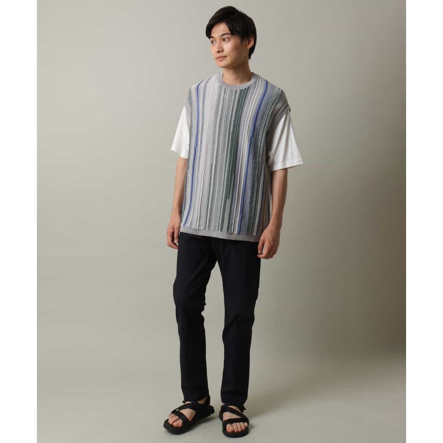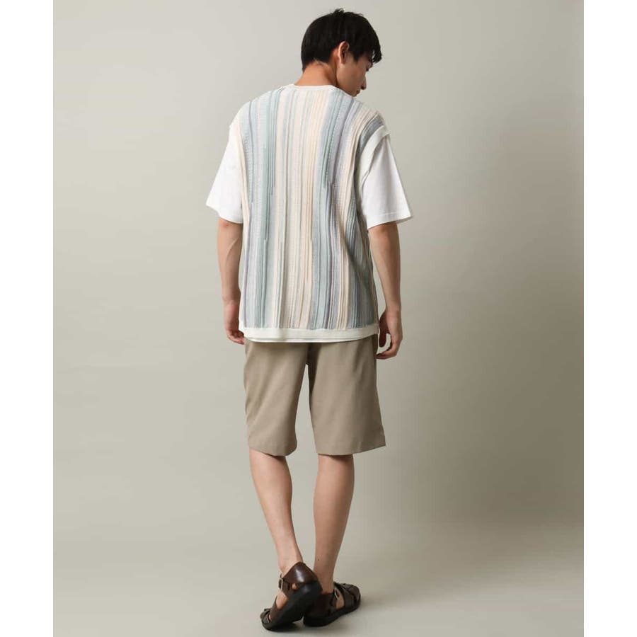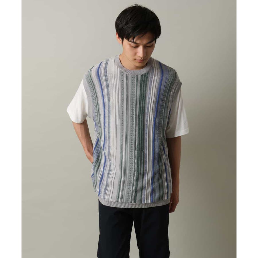 表面感のあるニット編地を前後の見頃部分に使用してニットベスト見えするデザインに仕上げたトレンド感のあるアイテム。
