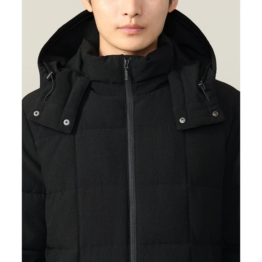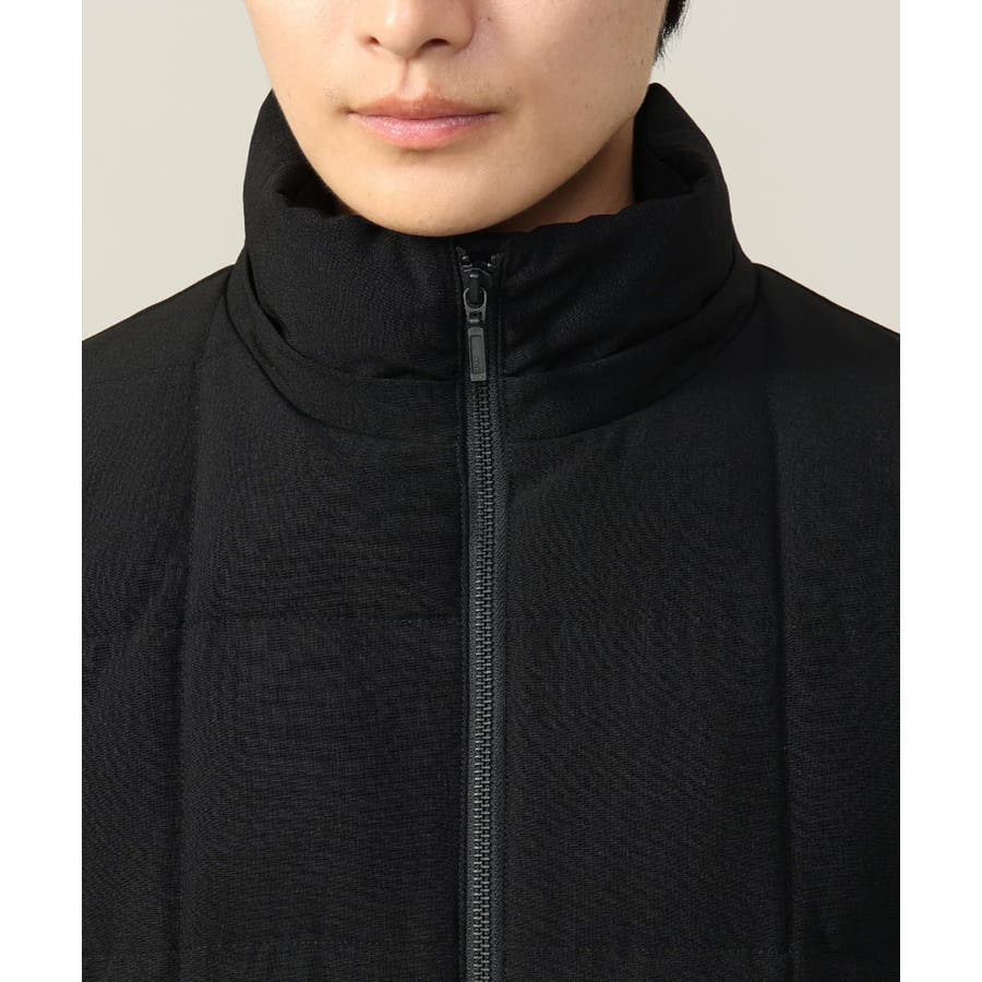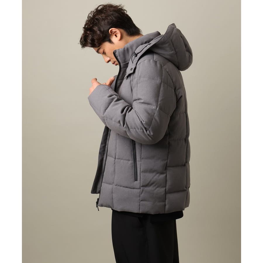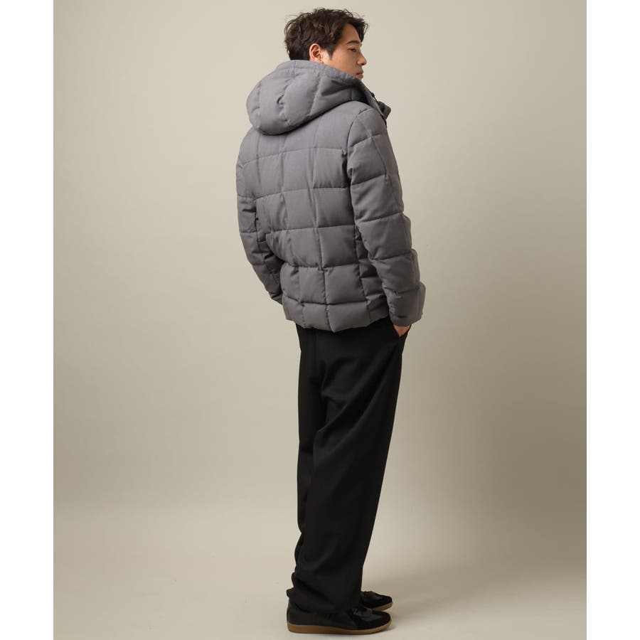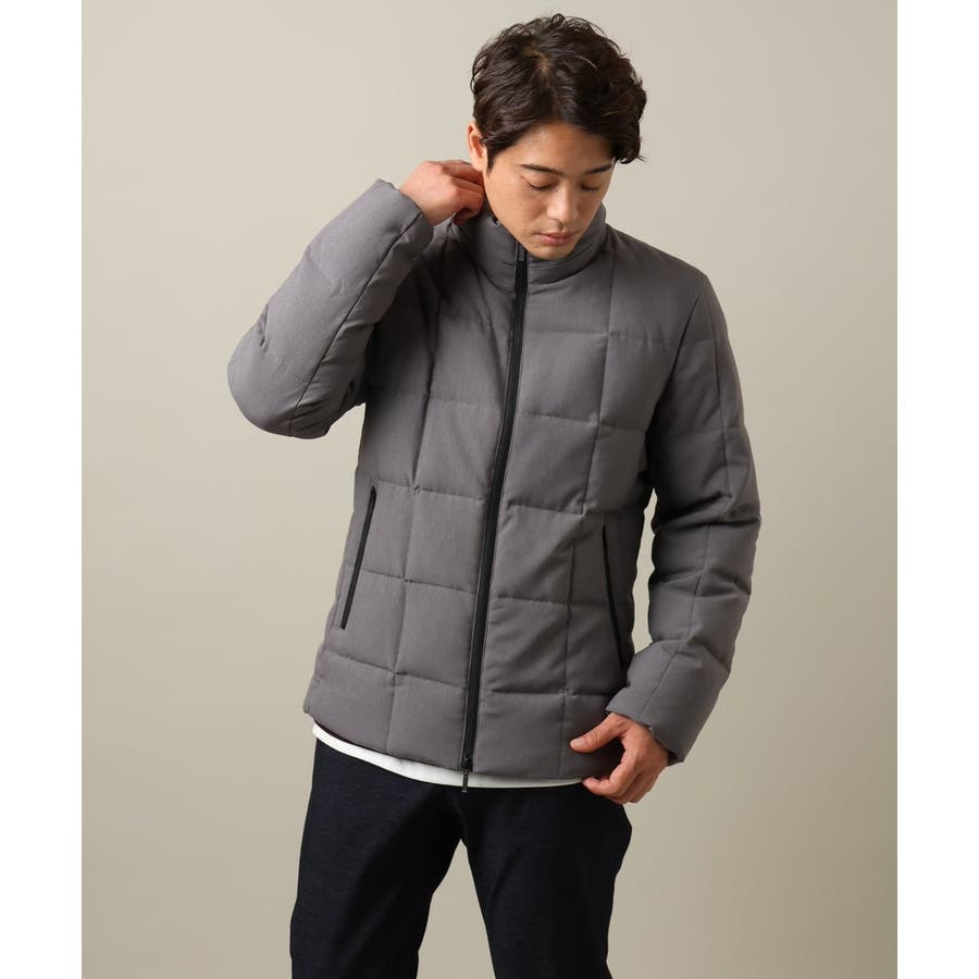 ダウンの印象をきめるステッチの入れ方をボックスステッチにすることでスッキリスマートに見えるデザインにしています。