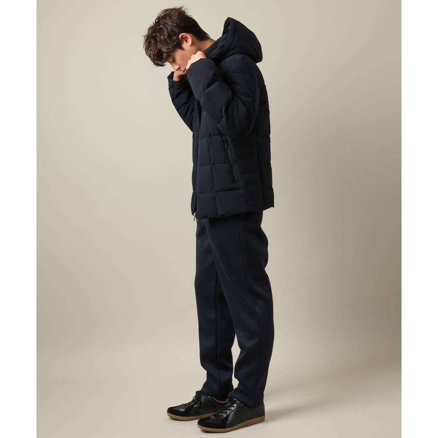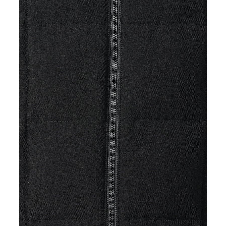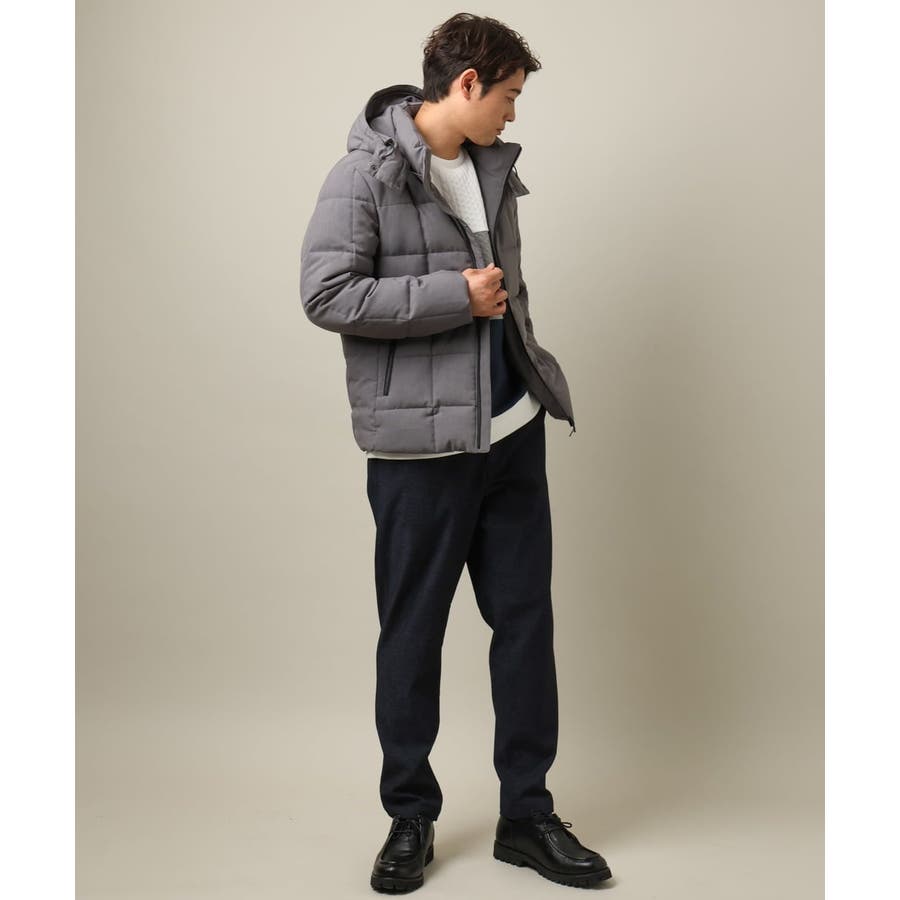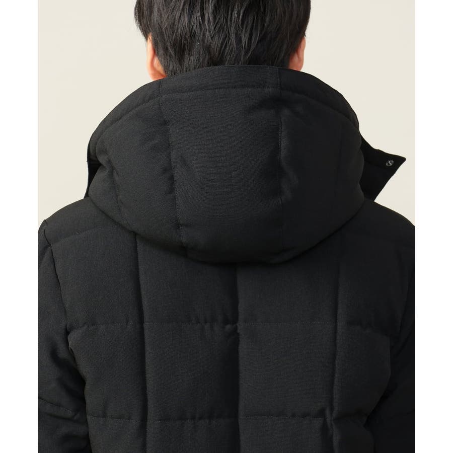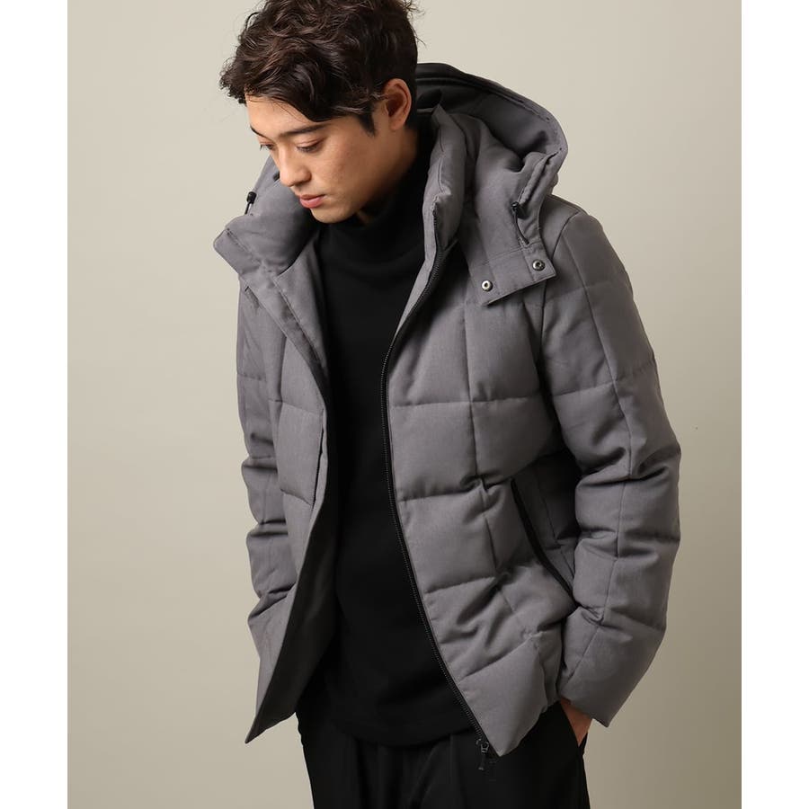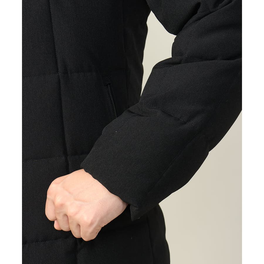 ダウンの印象をきめるステッチの入れ方をボックスステッチにすることでスッキリスマートに見えるデザインにしています。