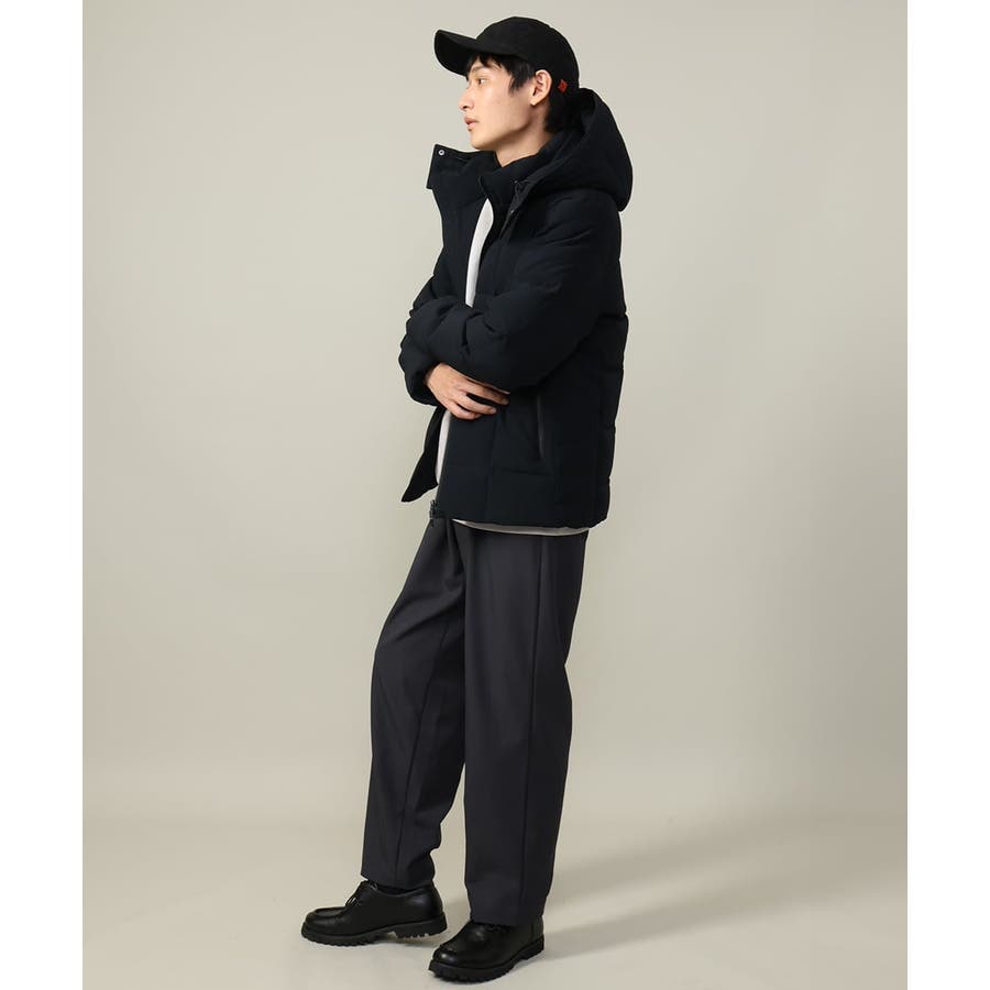 撥水加工を施した光沢感を抑えたシックなストレッチ素材を表生地に使用。裏地・ダウンパックもストレッチ素材を使用しているため、ノンストレスで動きやすいのが最大のポイント。ダウン混率はなんと90%と、冬の寒さに対応できる暖かさのあるダウンブルゾンです。よりふんわりな着心地にグレードアップしています。身頃のポケット内側には起毛素材を使用しているためグローブが無くても暖かく着用できます。