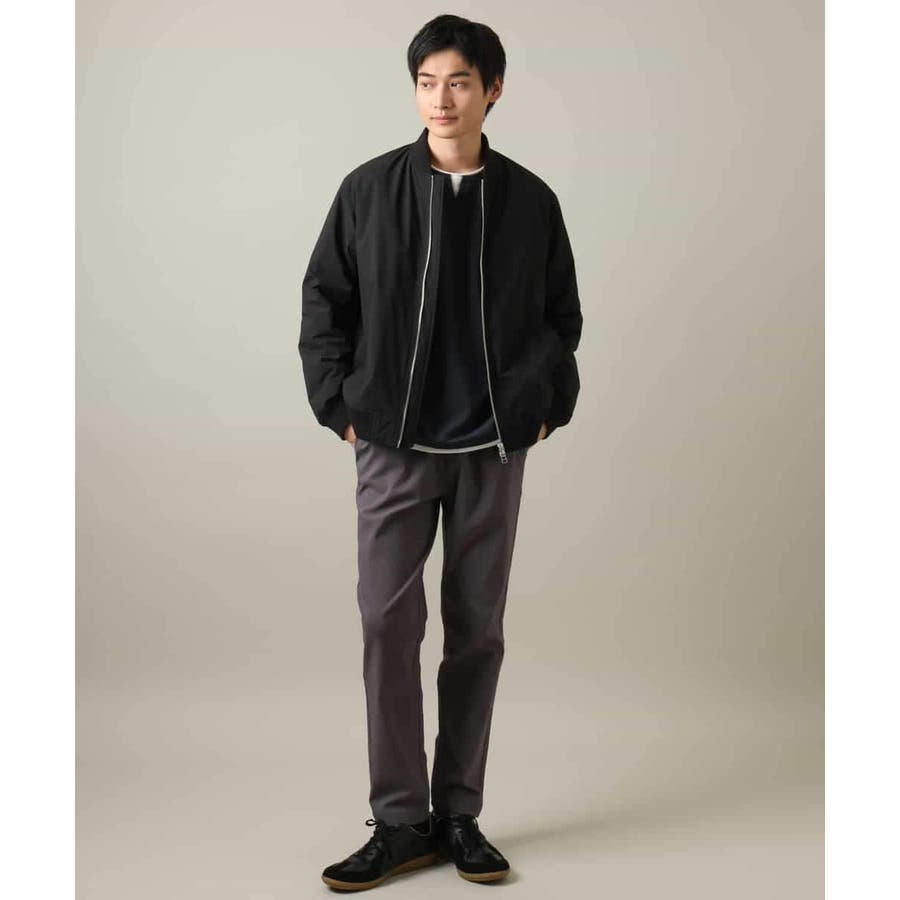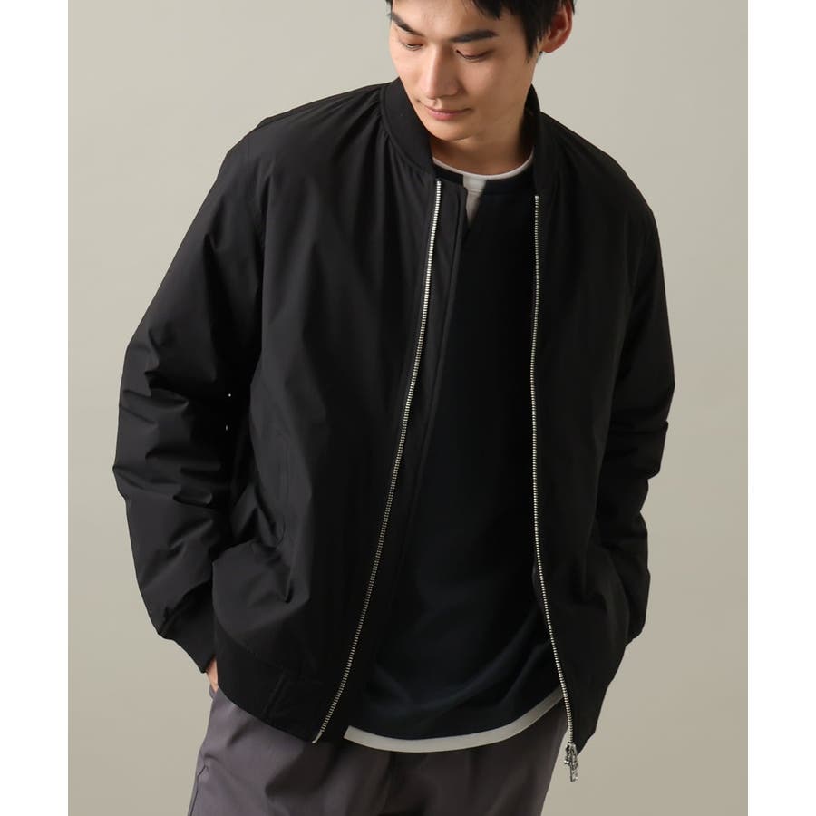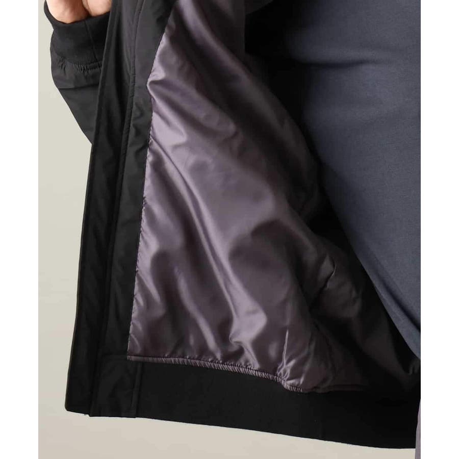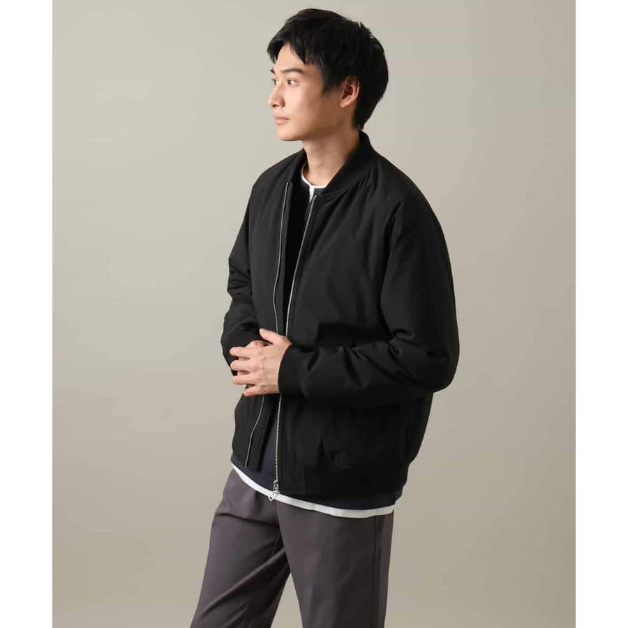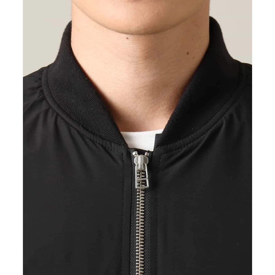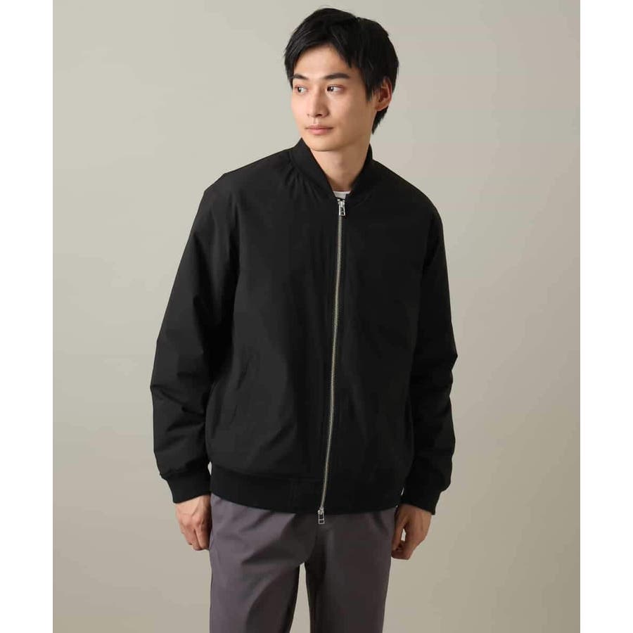シルバーメッキのフロントジップや裏地を配色にしており、シンプルながらもこだわりの詰まったブルゾンです中綿入りで保温性もありながら、ショート丈のため移動時にも便利です。