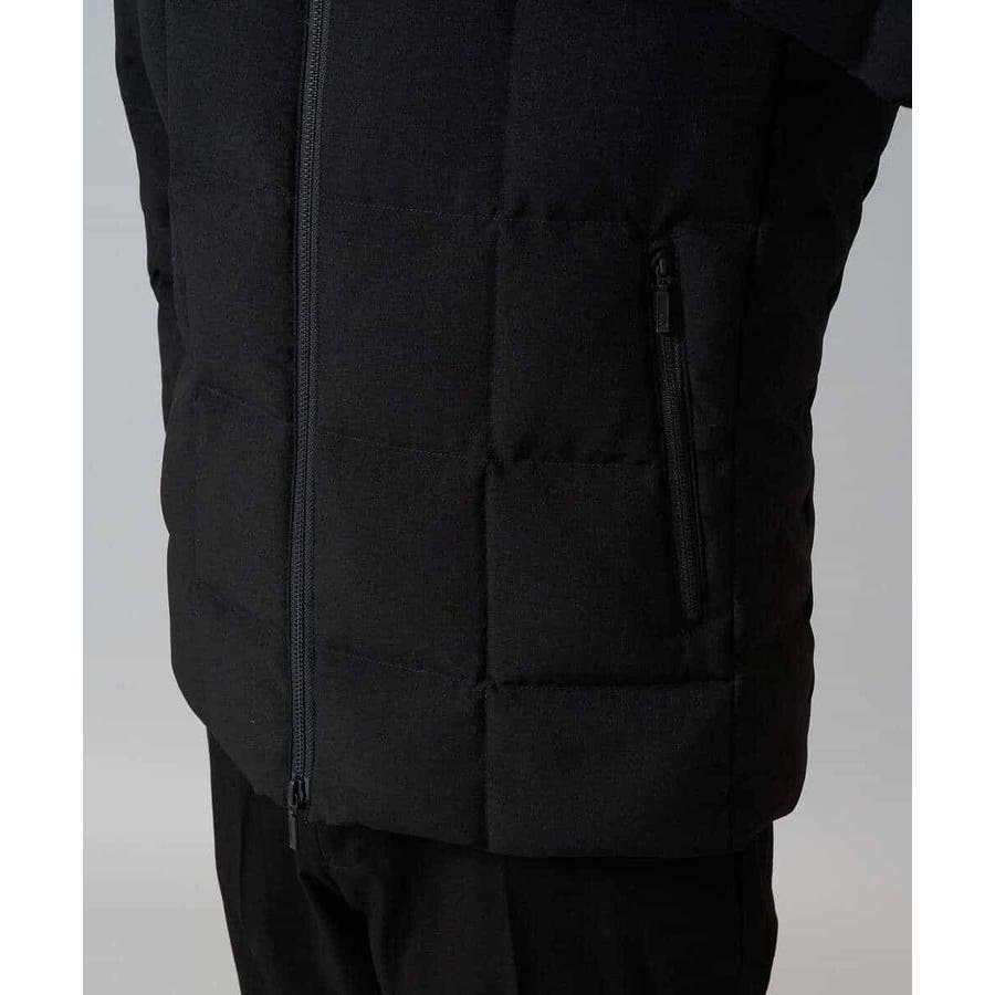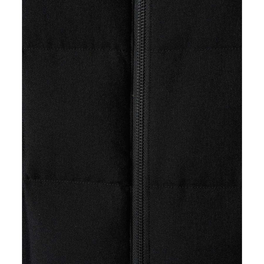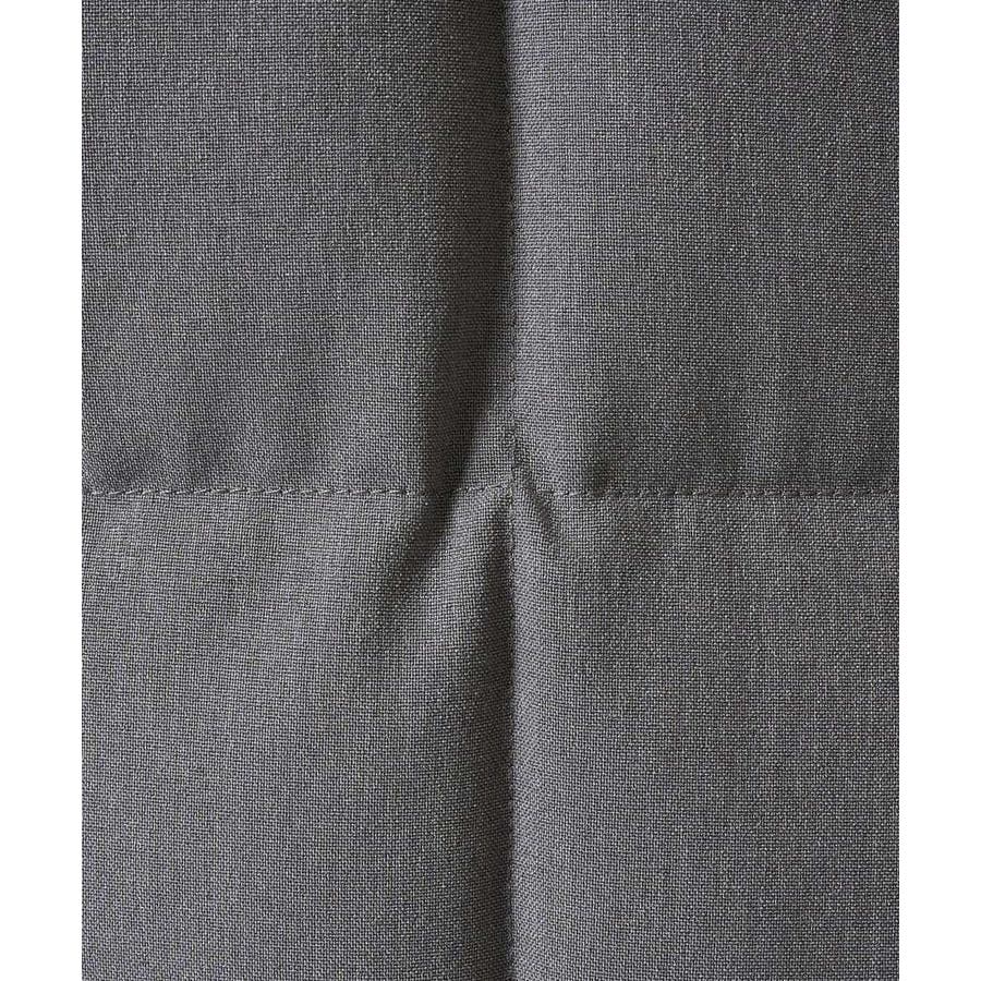 ダウンの印象をきめるステッチの入れ方をボックスステッチにすることですっきりスマートに見えるデザインにしています。