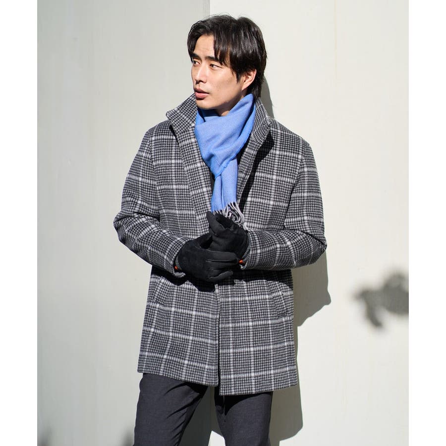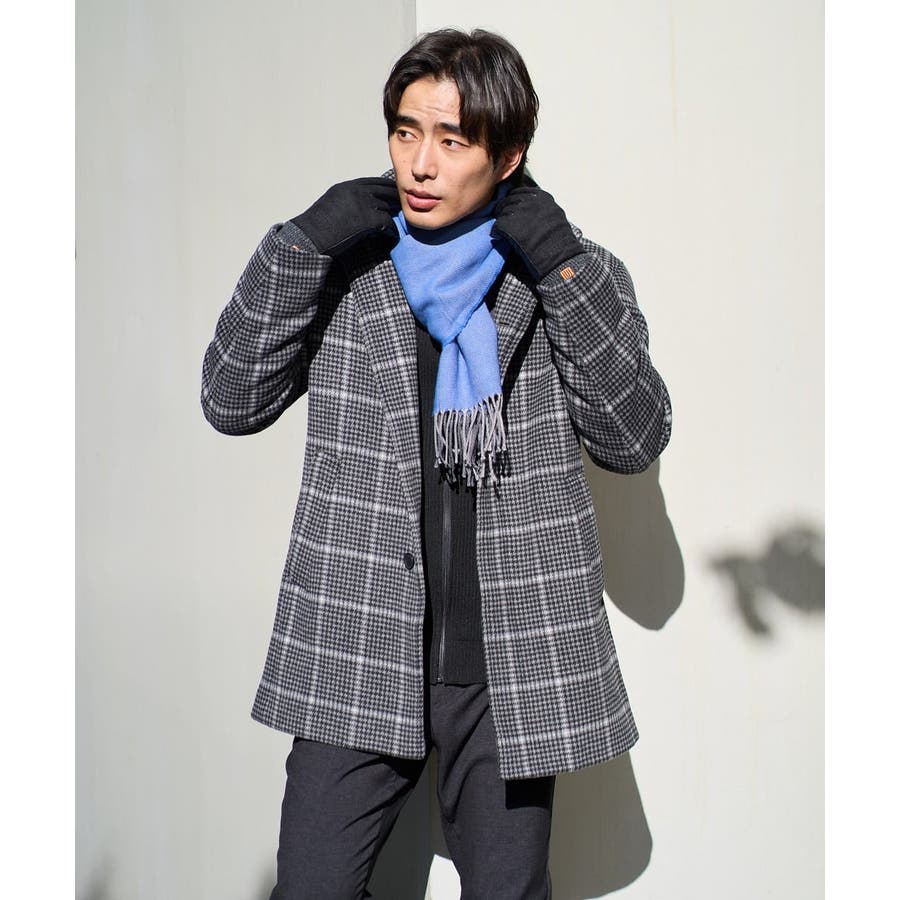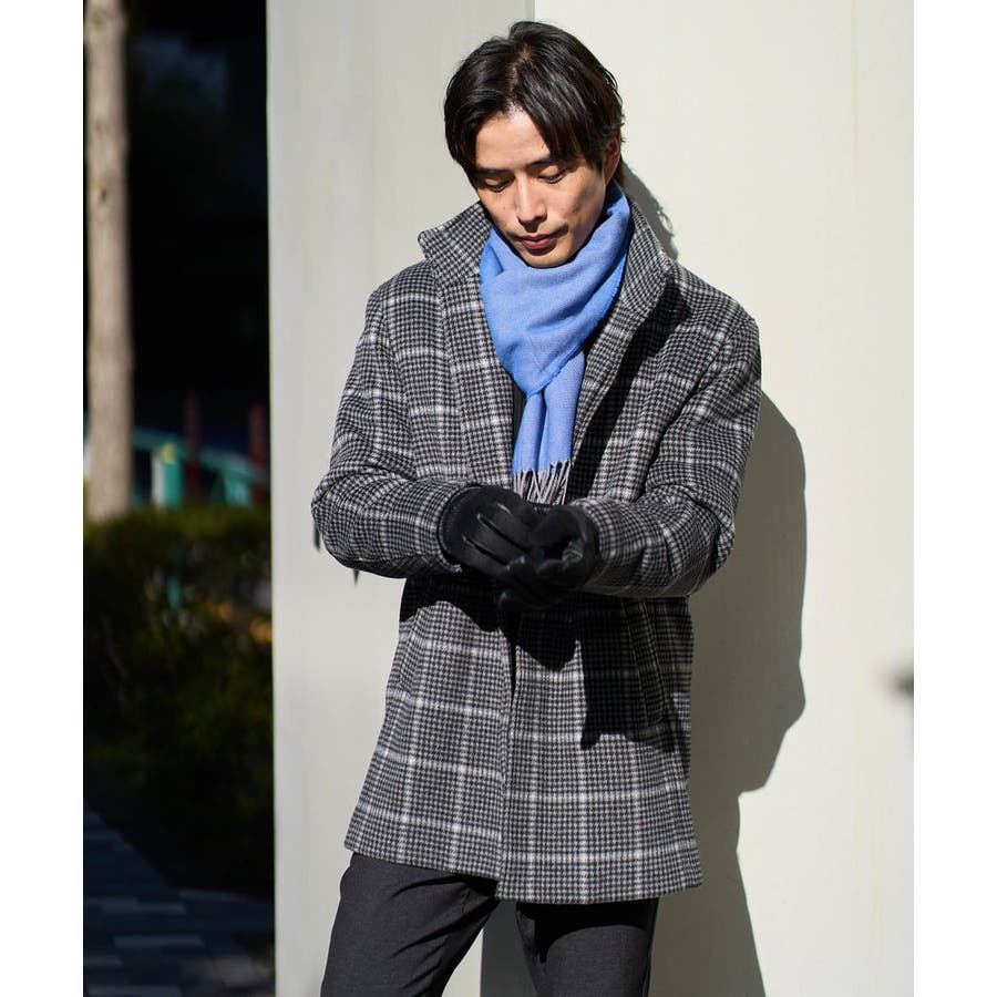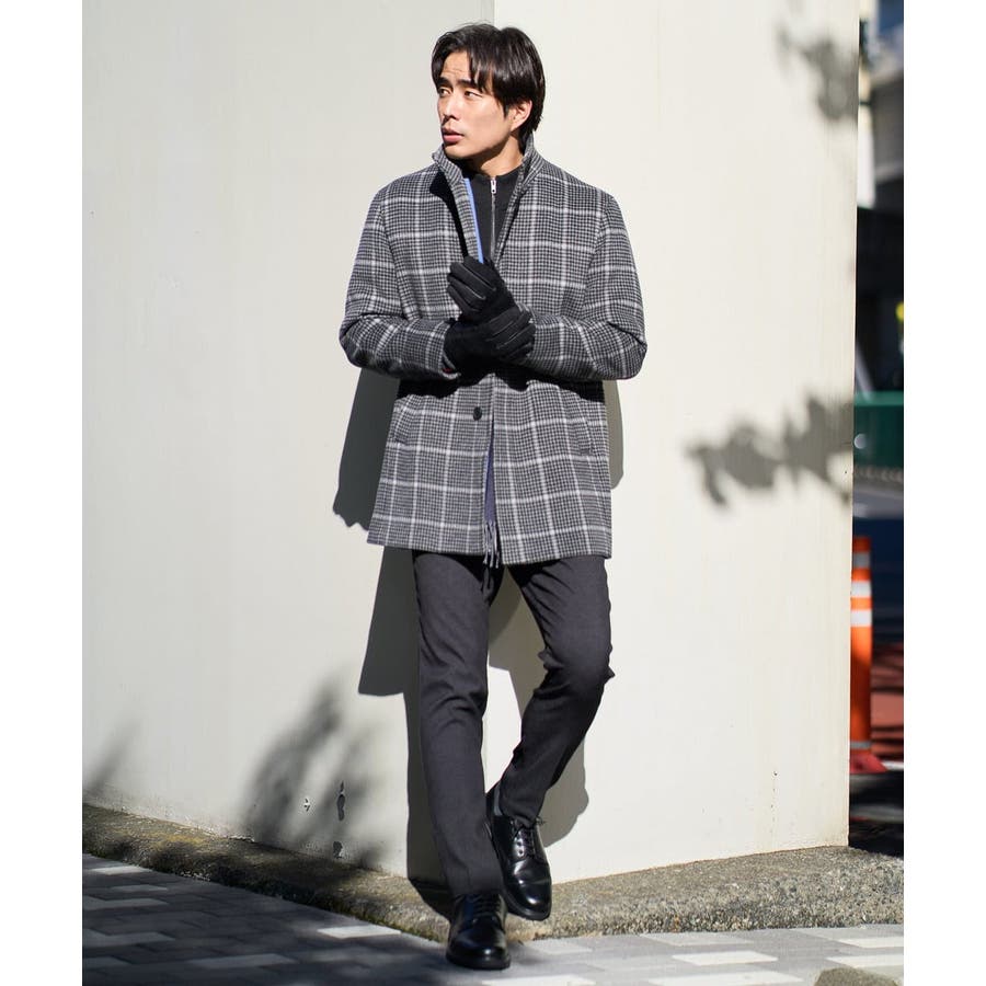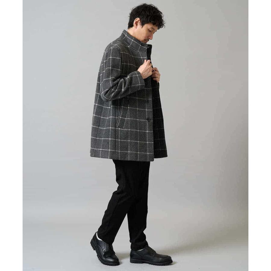 ウールライトビーバーチェックスタンドカラージャケット